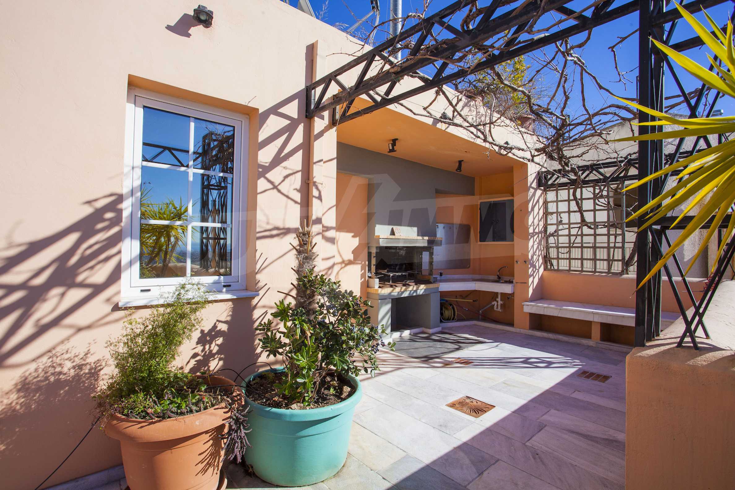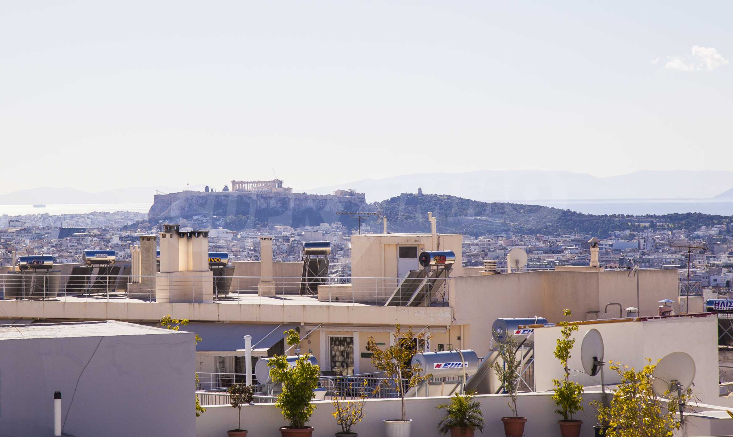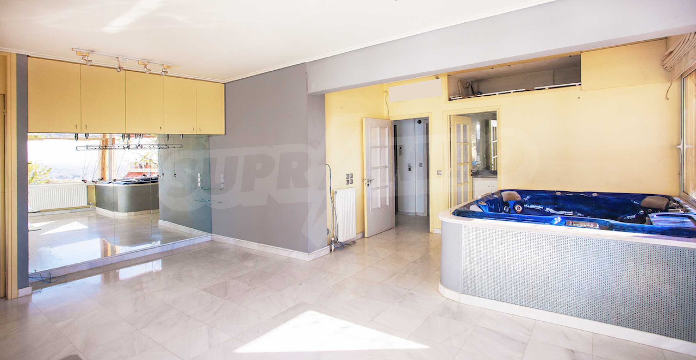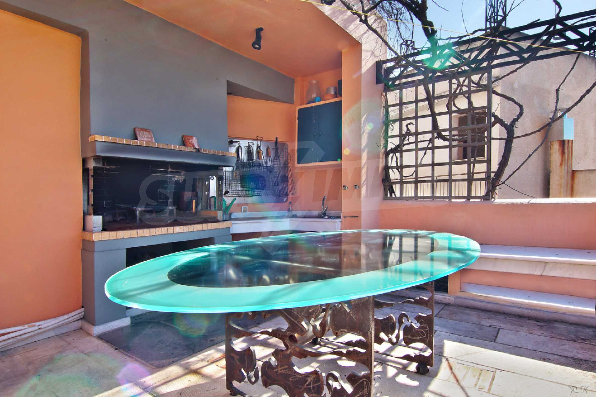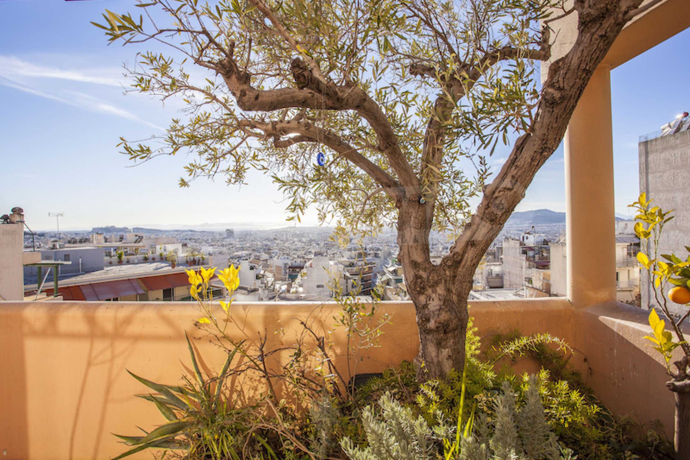 The fourth floor has an area of 22 sq.m and consists of an open-plan living room with large windows and a fireplace. The main house has a veranda with a built-in barbecue and a rock garden with trees and herbs. It overlooks the Acropolis, the sea and Piraeus. The building also has: