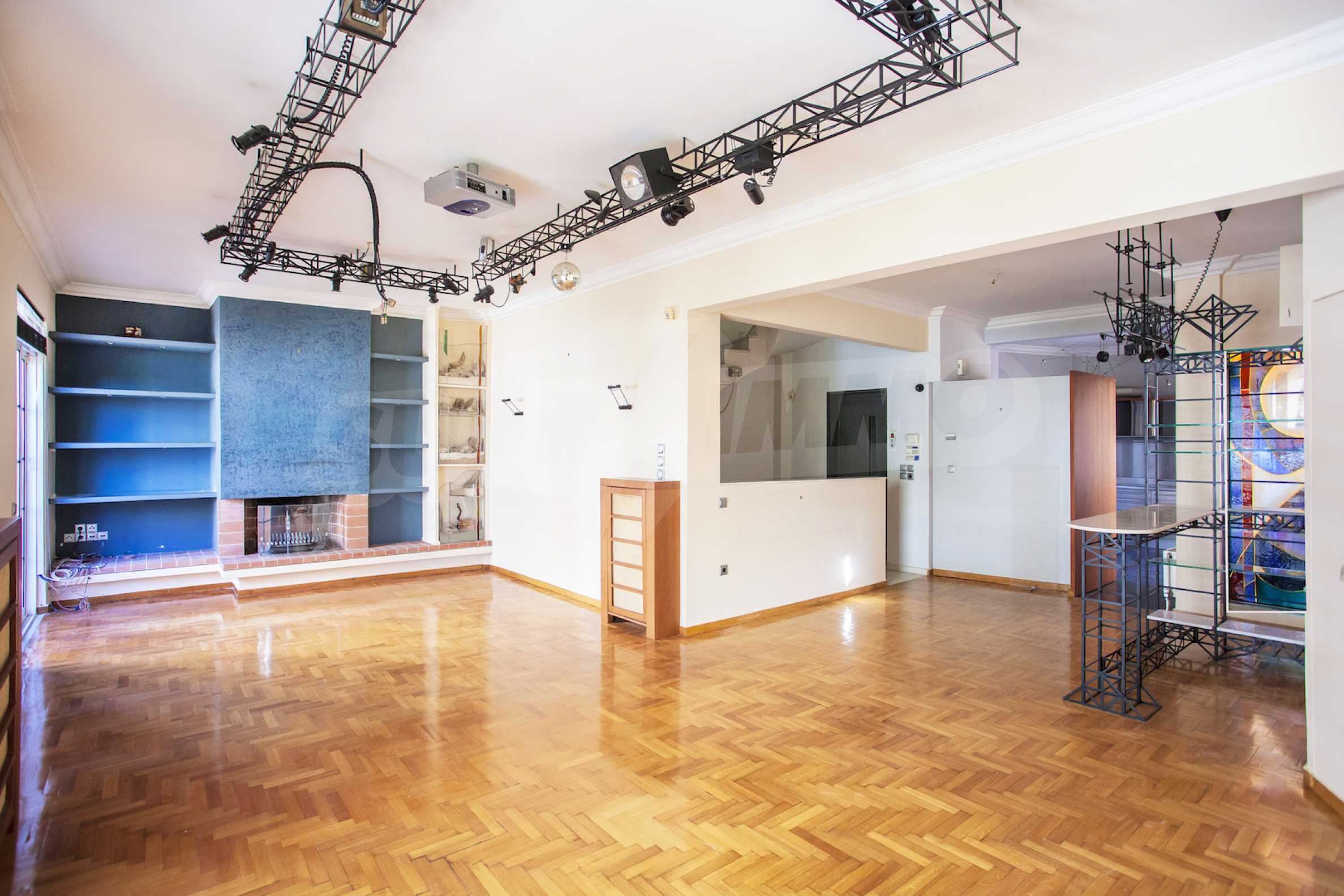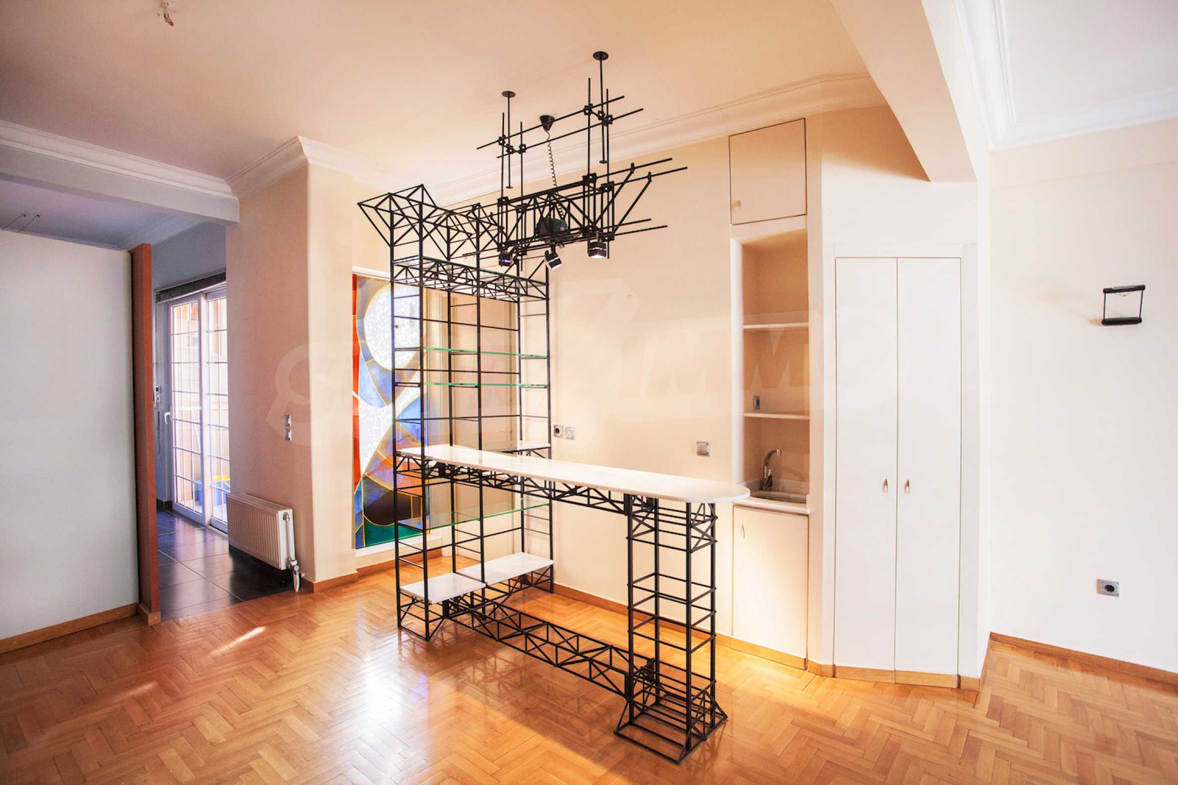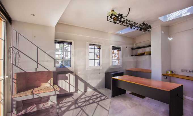 The first floor has an area of 85 sq.m. It is connected to the ground floor with a metallic circular staircase and a lift. It consists of a large room with a large balcony, two smaller rooms with a common balcony, a kitchenette and a toilet. The ground and 1st floors are provided for professional services and office premises. They can easily separate from the rest of the building and form a separate apartment