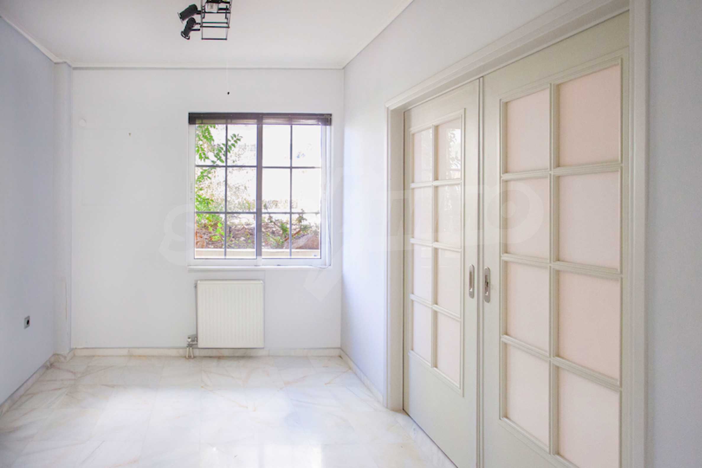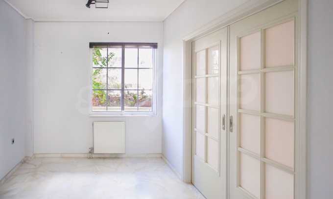 The ground floor has an area of 85 sq.m, has marble floors and includes a large reception and three rooms, one with its own bathroom and the other with access to a small garden located at the back of the building.