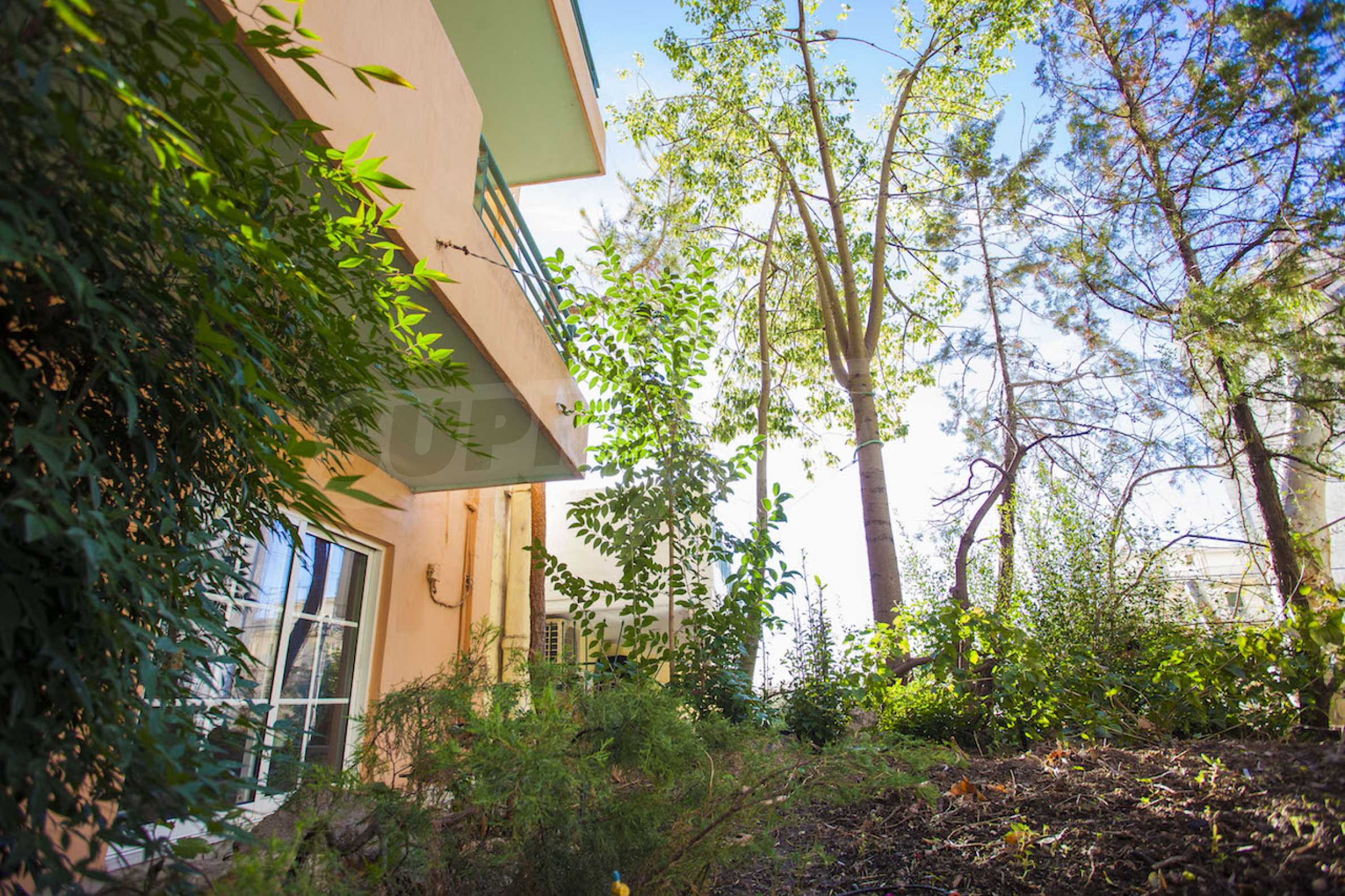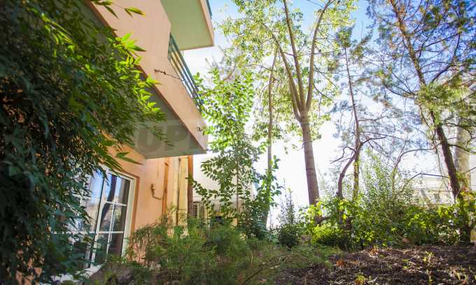 The apartment has a ground floor consisting of a garage (with granite tiles) with 2 parking spaces and a motorcycle parking lot, a workshop, a boiler room and a bathroom. On the roof of the garage there is a small garden planted with 10 meters tall trees.