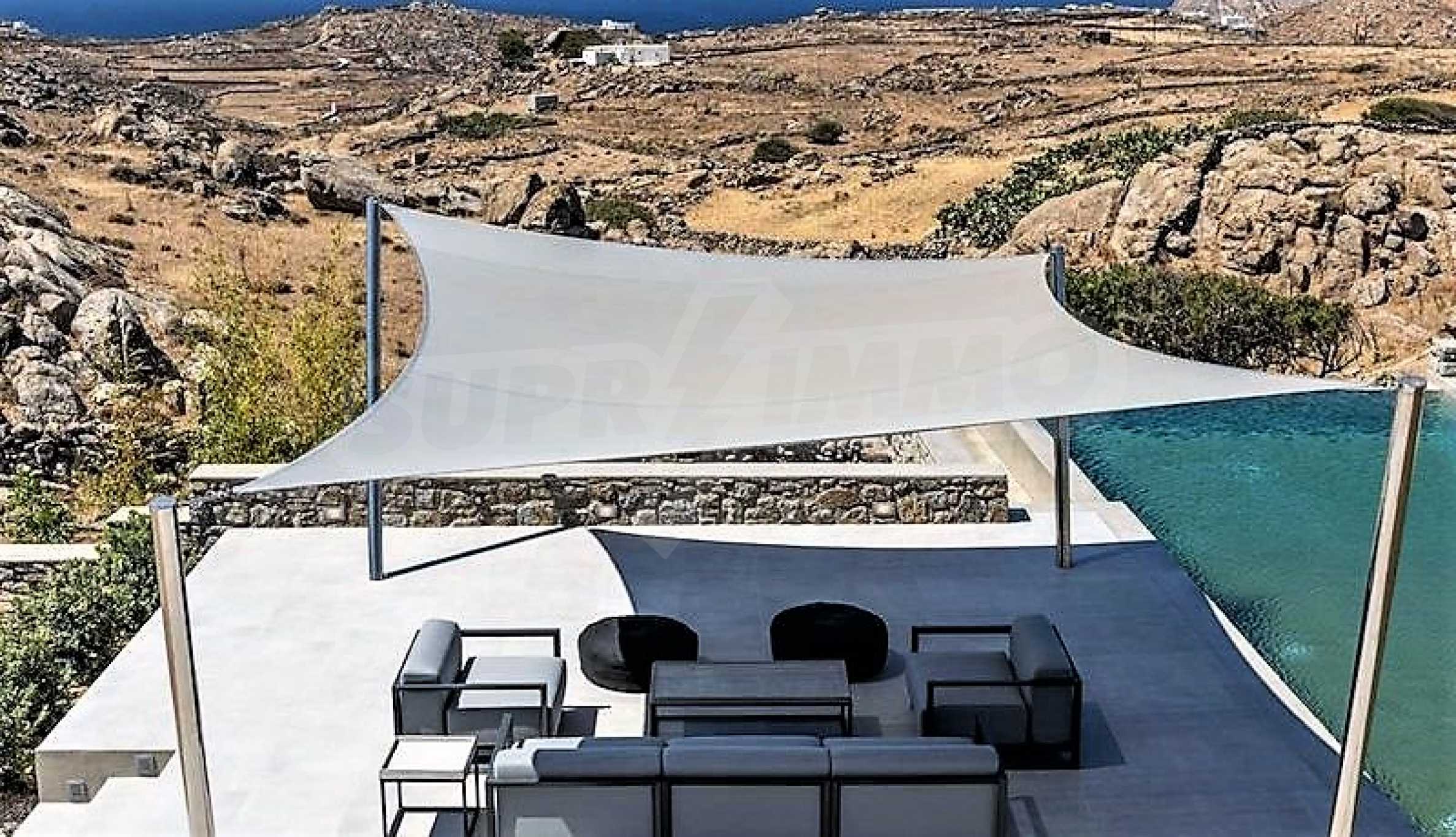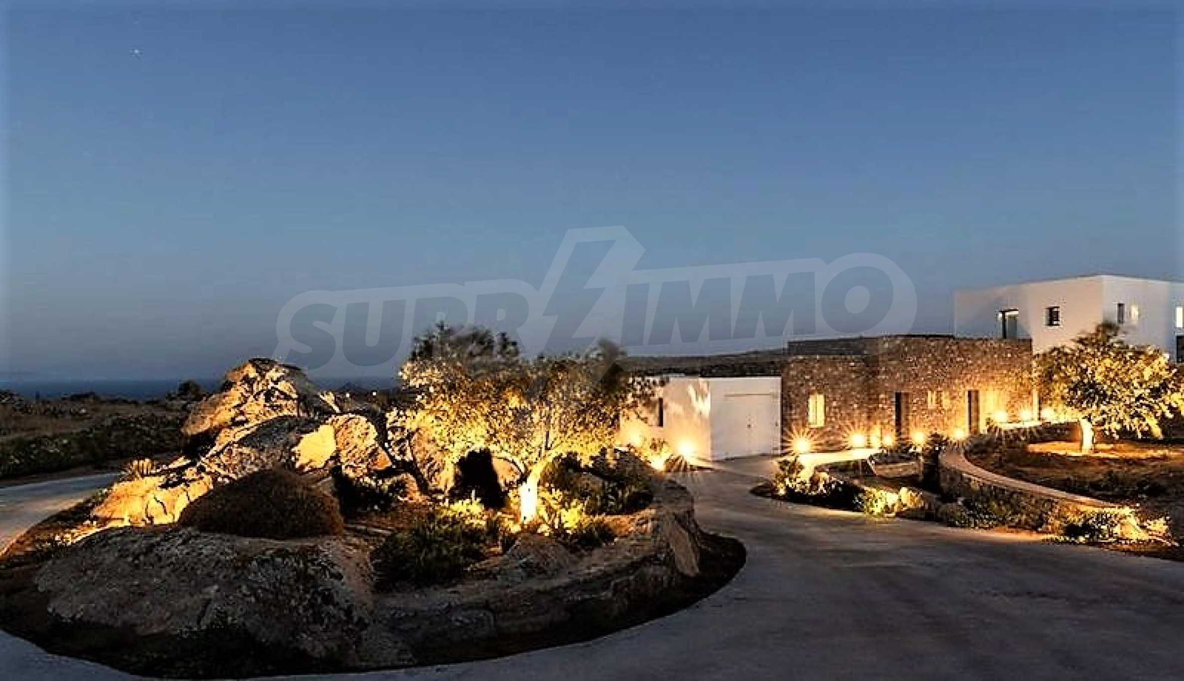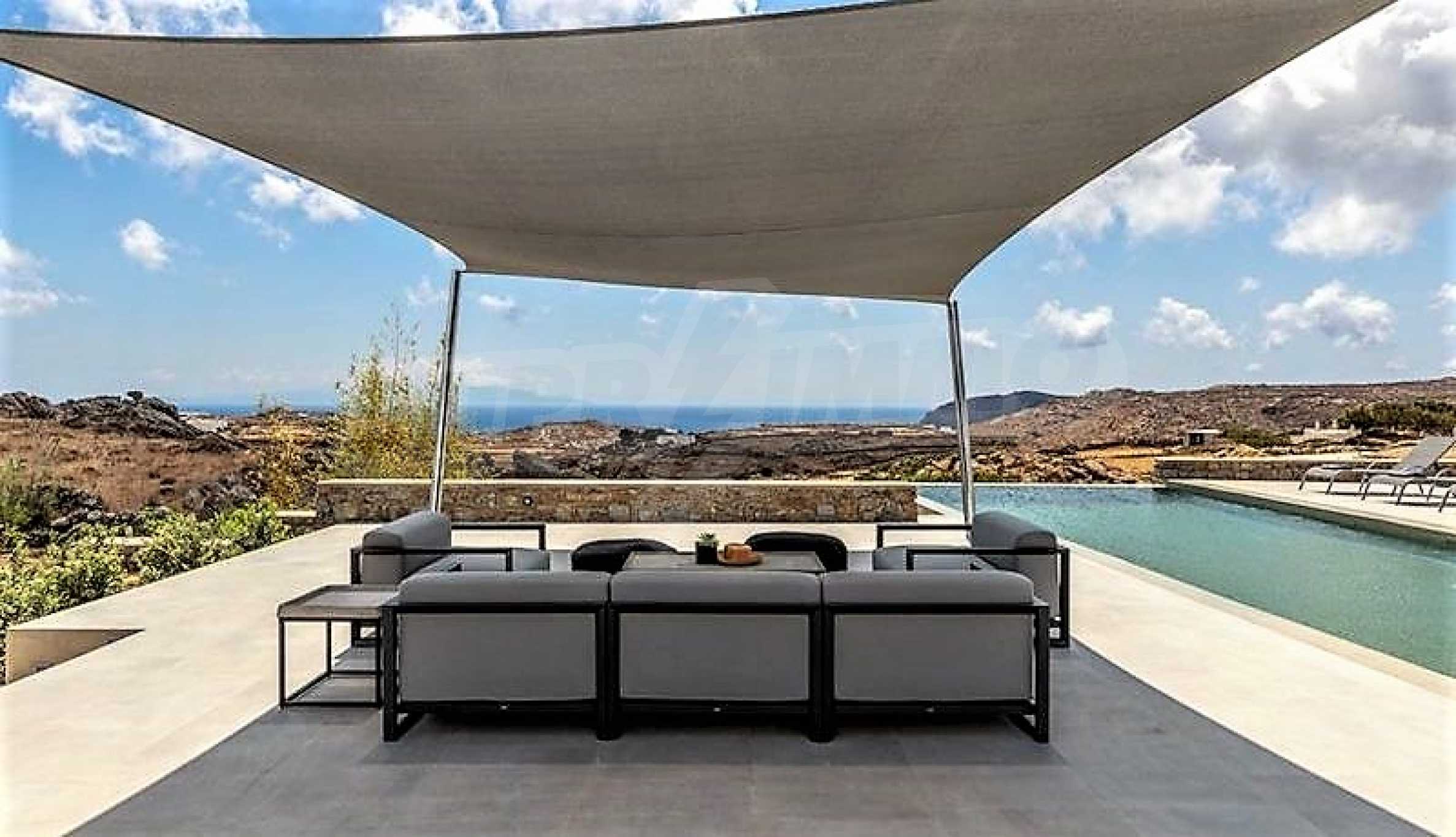 We offer to your attention one of the most magnificent and exclusive villas in Mykonos. Designed by a renowned Greek architect, the villa offers the comforts of a luxury hotel in a wonderful and very attractive setting. This impressive residence was built in 2018 on a plot of 5400 sq. M. situated on a hillside, which provides a 180 degree panoramic view of the world-famous southern beaches of Mykonos, Elia Beach, Agrari and Super Paradise.