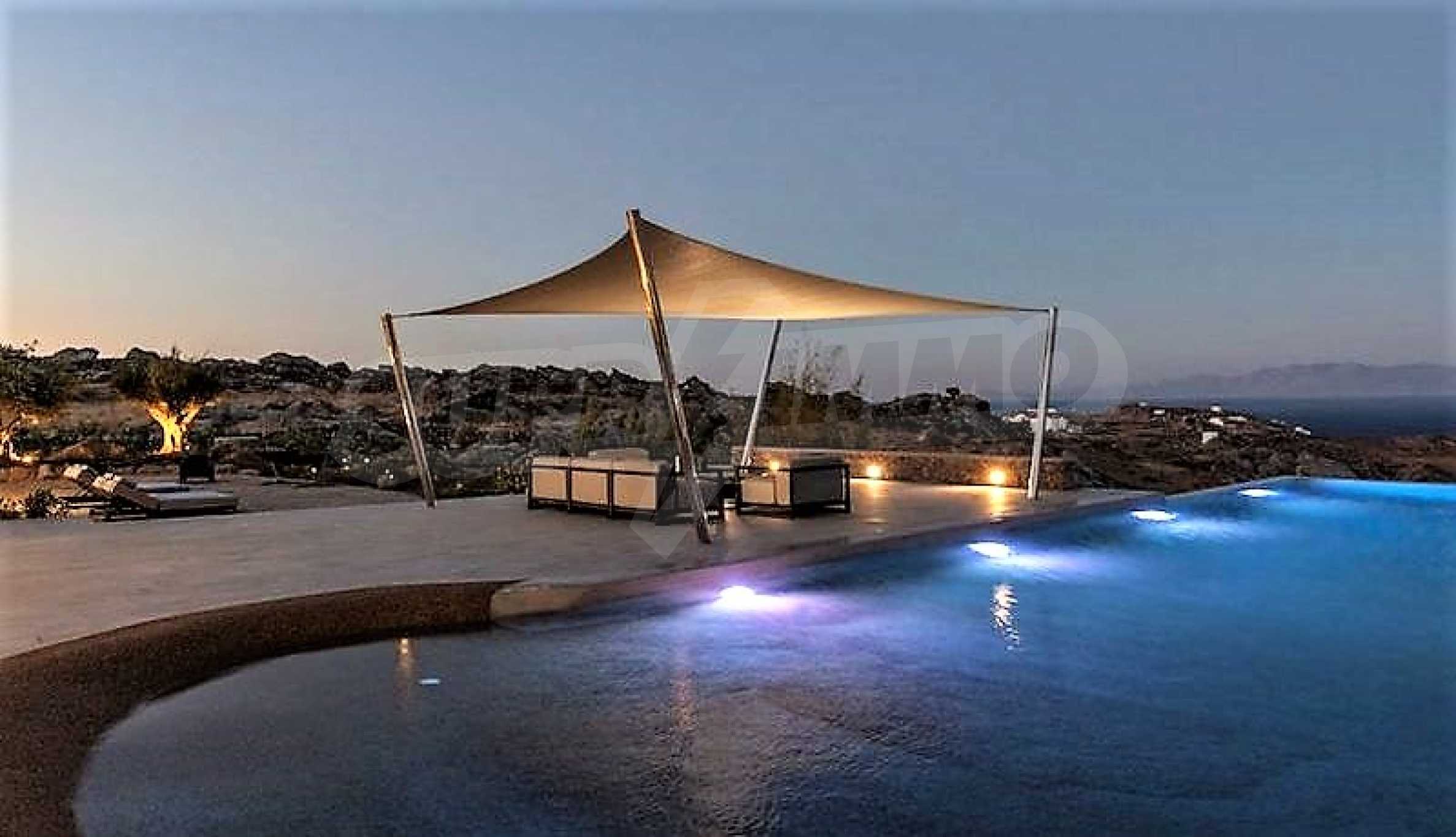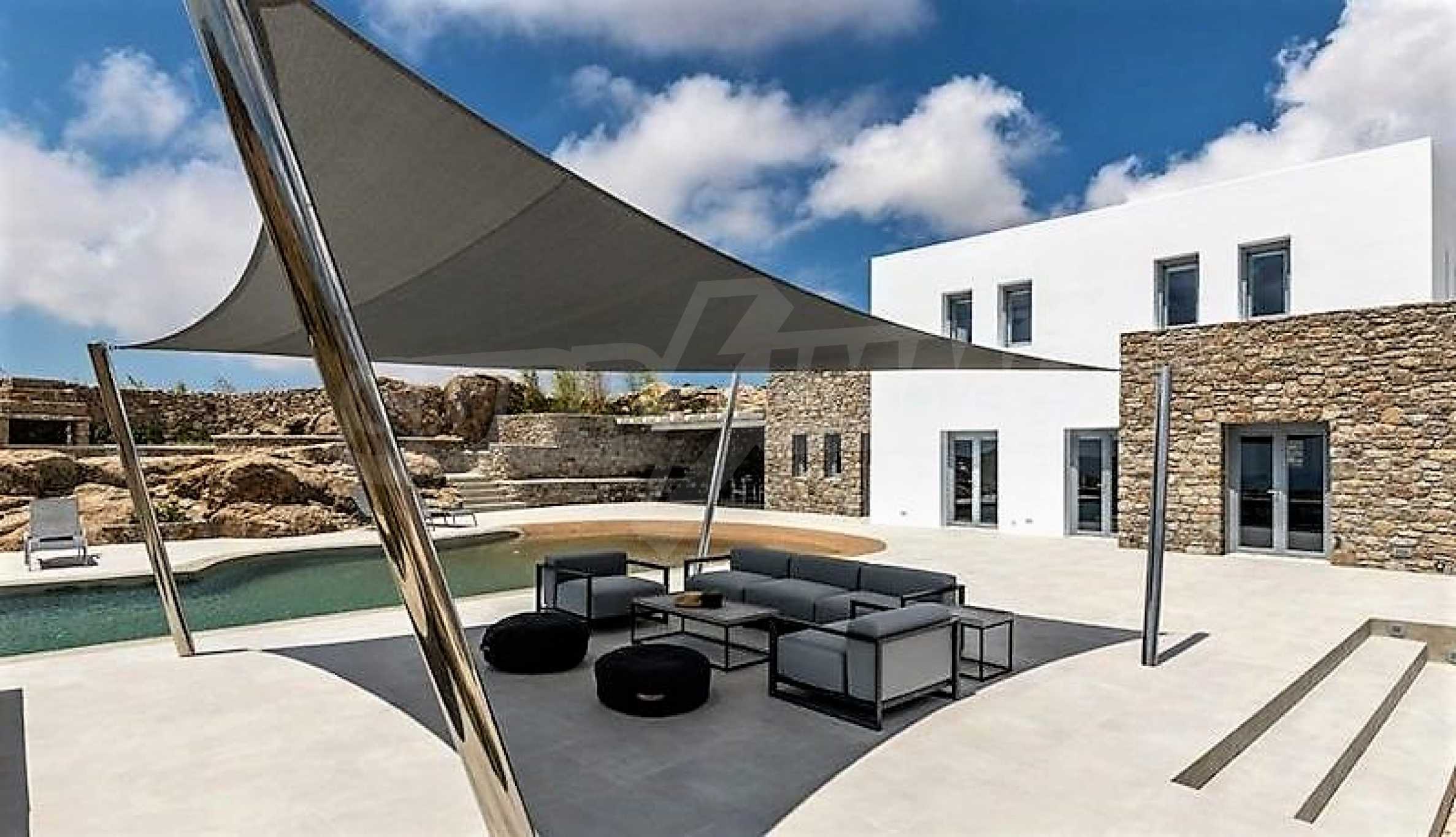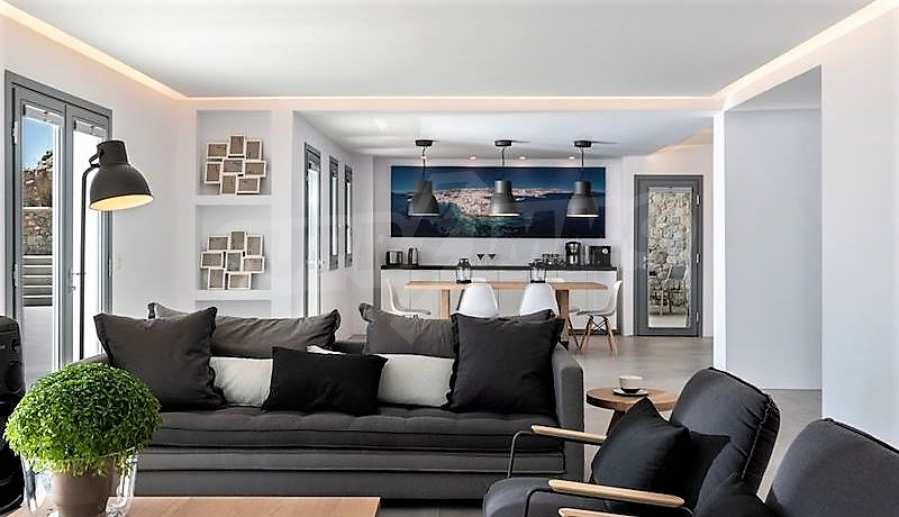 We offer to your attention one of the most magnificent and exclusive villas in Mykonos. Designed by a renowned Greek architect, the villa offers the comforts of a luxury hotel in a wonderful and very attractive setting. This impressive residence was built in 2018 on a plot of 5400 sq. M. situated on a hillside, which provides a 180 degree panoramic view of the world-famous southern beaches of Mykonos, Elia Beach, Agrari and Super Paradise.