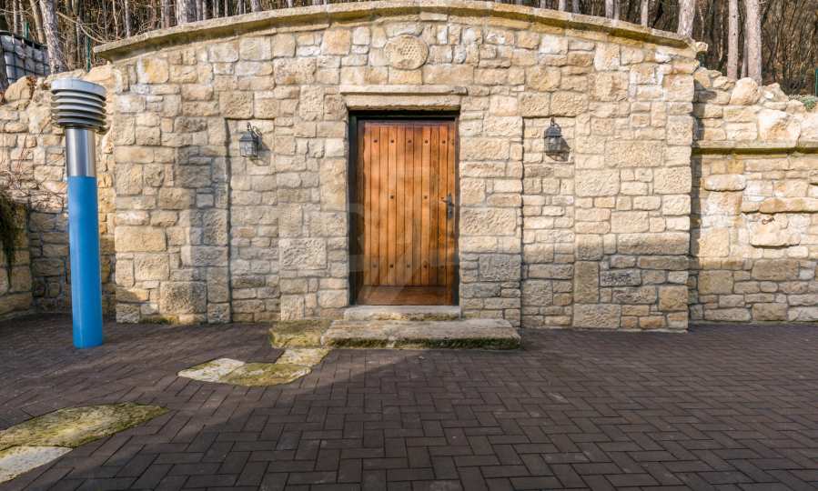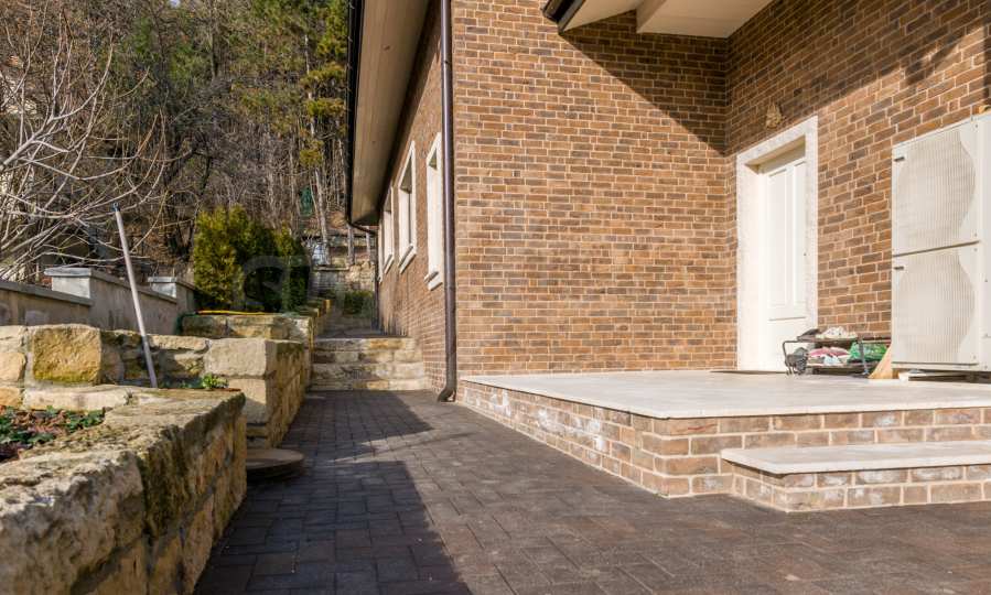 The yard - 1514 m2 is very well arranged and arranged. In front there is a garage, and behind the house is a stone winery. The backyard enters a pine forest, which has a separate summer area for relaxation and yoga, as well as a barbecue area.