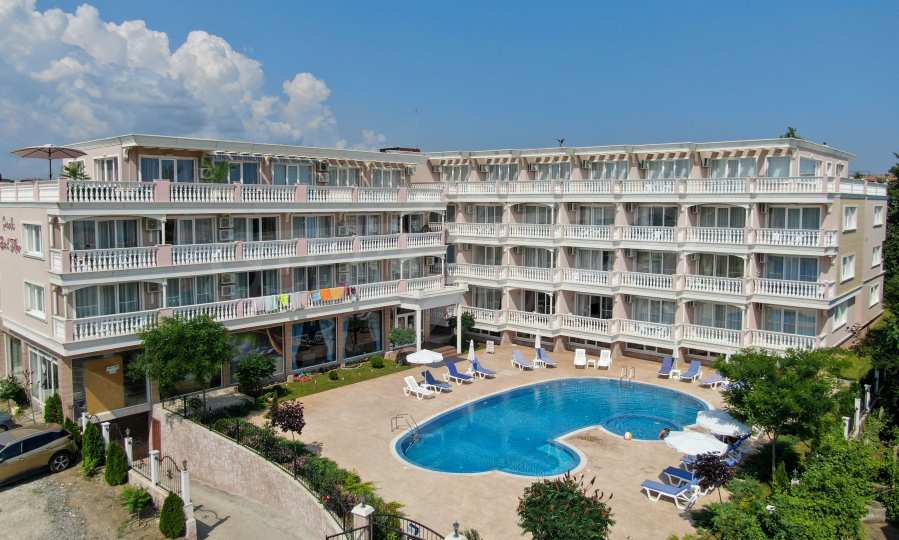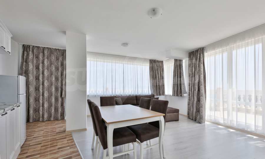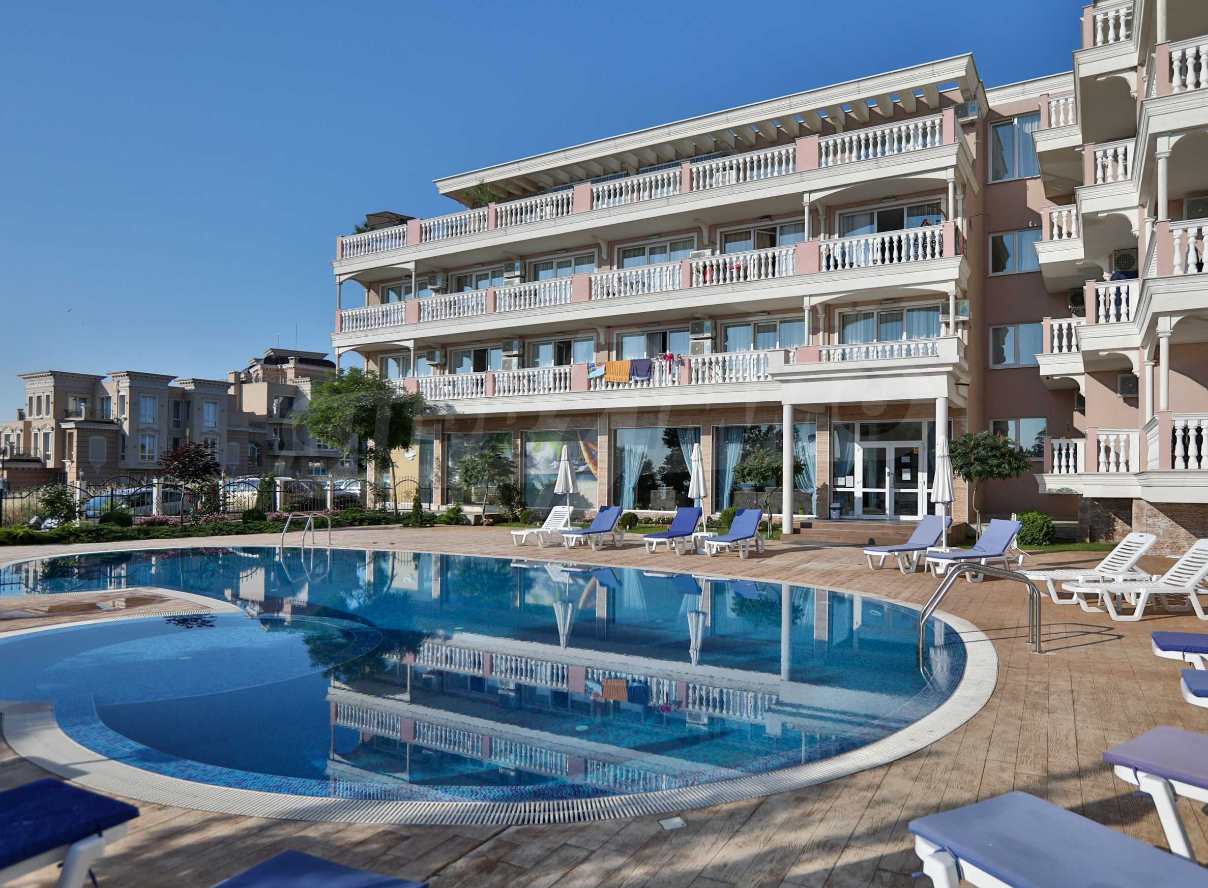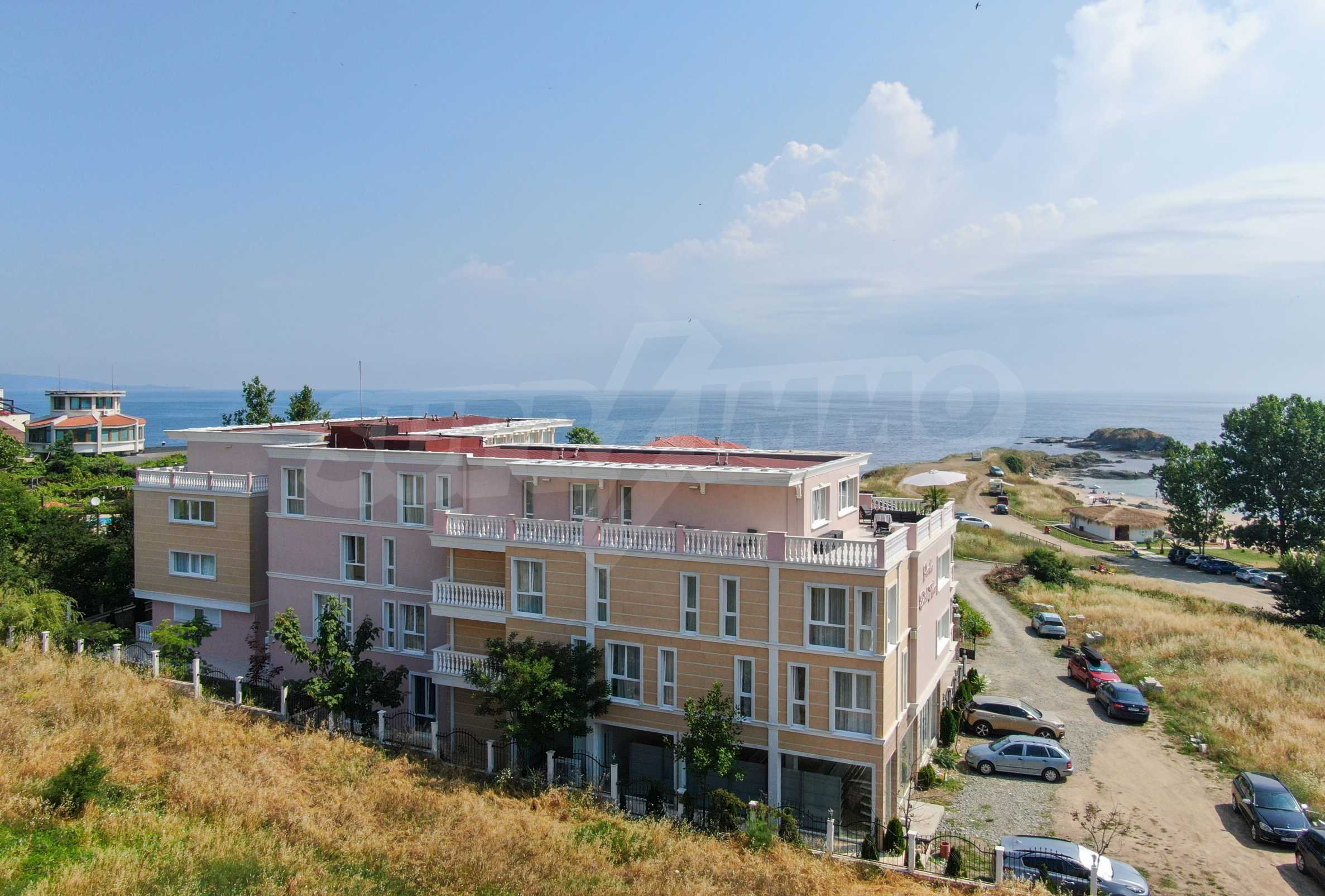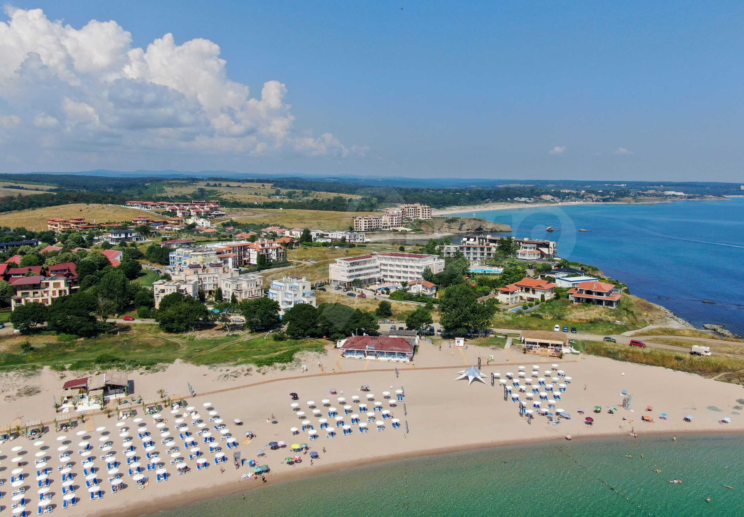 The building stands out with refined and elegant architecture, with spacious terraces with balusters. It is oriented towards the beach and offers amazing views of the sea and the sandy beach. It has all the necessary amenities for a pleasant holiday on-site, including a swimming pool, underground parking lot and a restaurant, security, video surveillance and reception. The properties are suitable for both summer vacation and year-round living. Given the attractive location near the beach, the apartments are a good choice for investment.