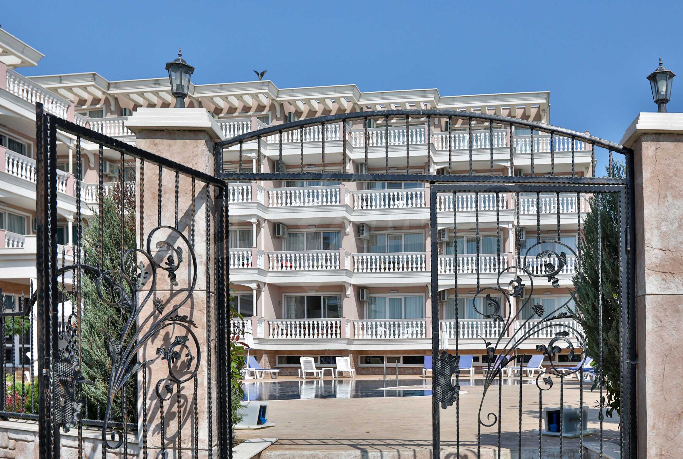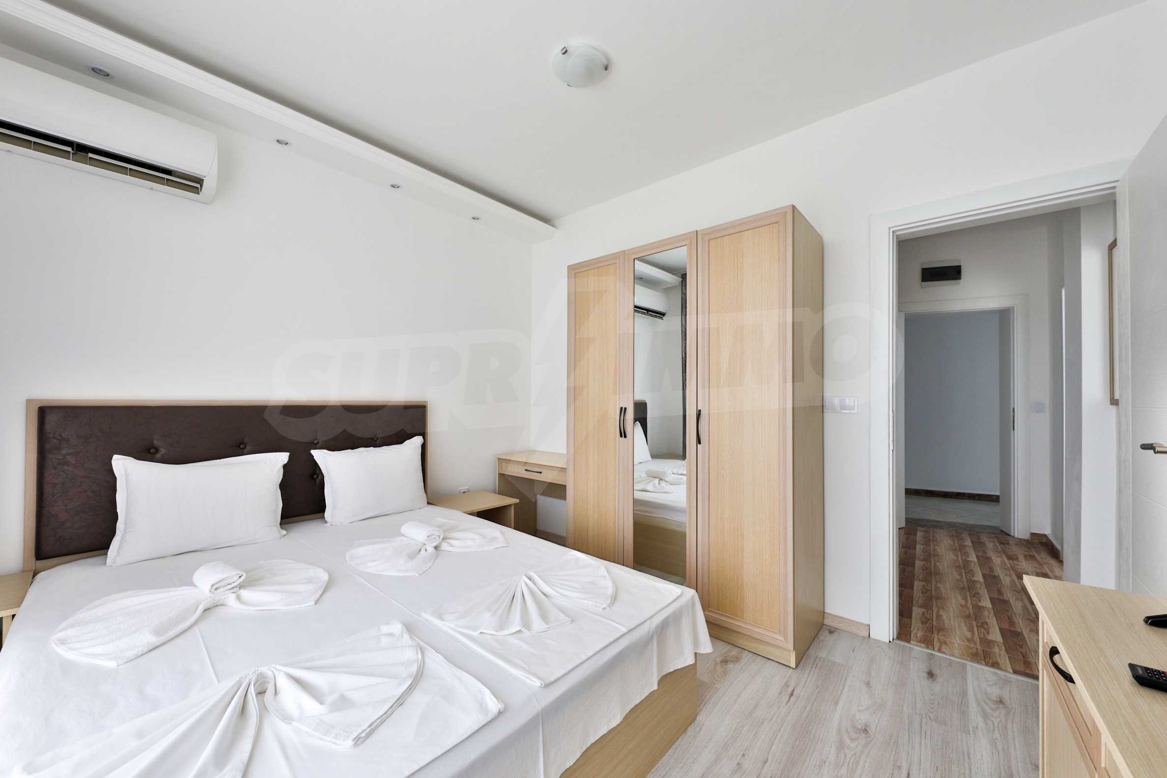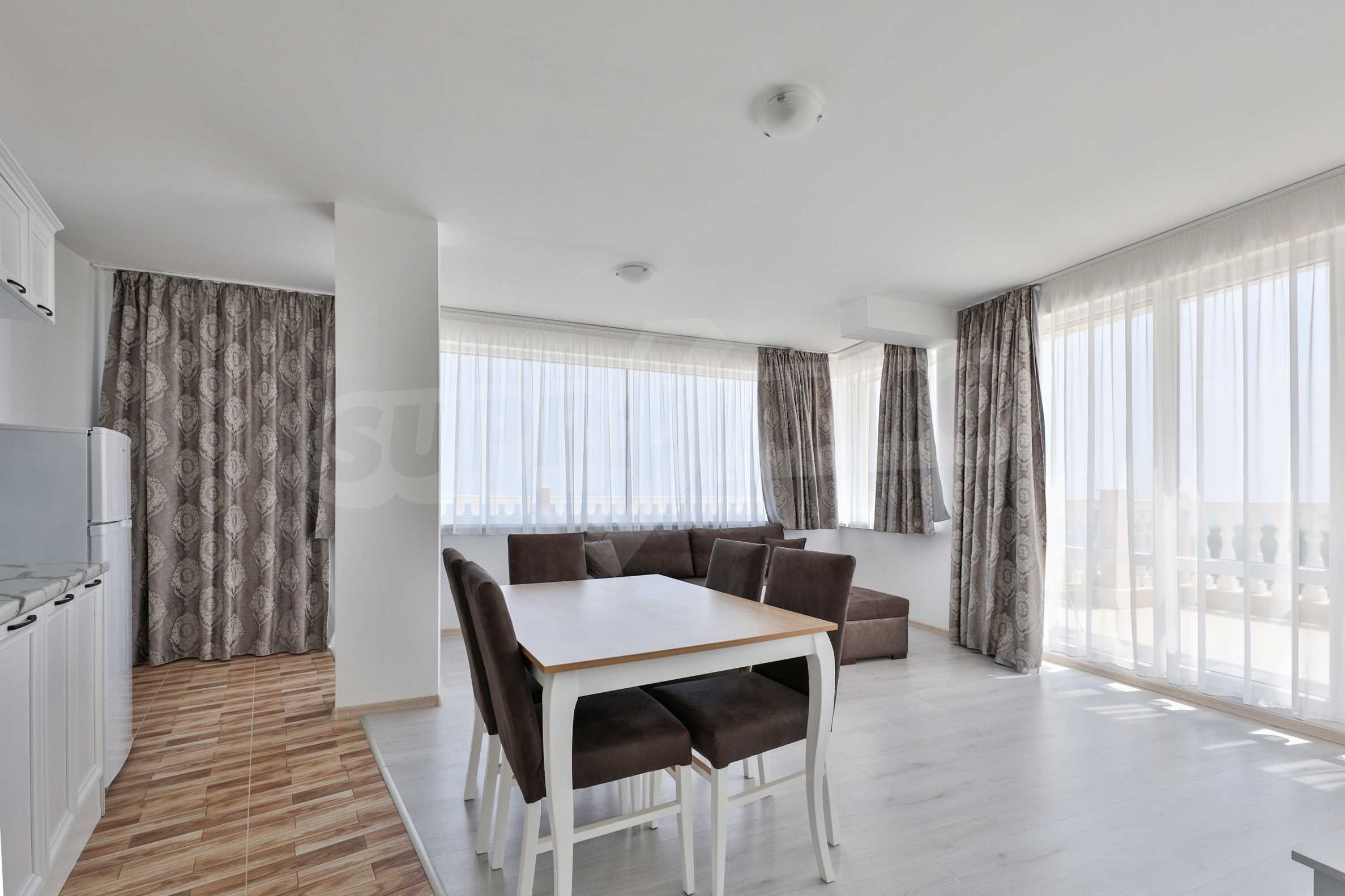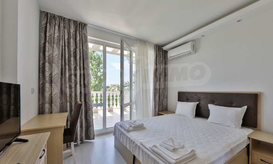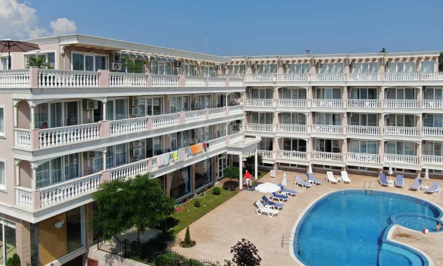 The building stands out with refined and elegant architecture, with spacious terraces with balusters. It is oriented towards the beach and offers amazing views of the sea and the sandy beach. It has all the necessary amenities for a pleasant holiday on-site, including a swimming pool, underground parking lot and a restaurant, security, video surveillance and reception. The properties are suitable for both summer vacation and year-round living. Given the attractive location near the beach, the apartments are a good choice for investment.