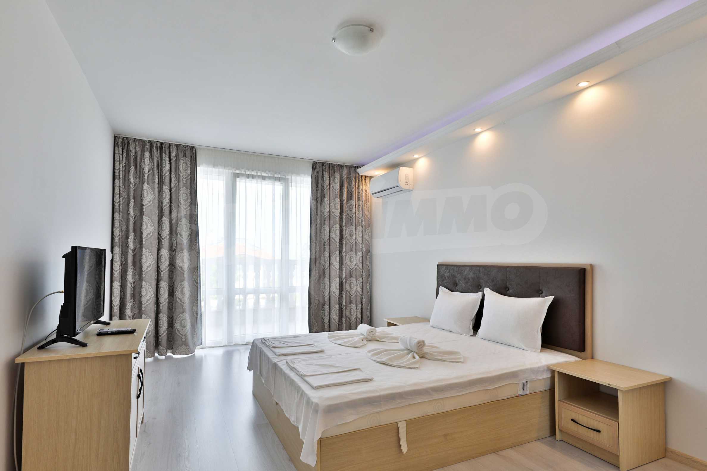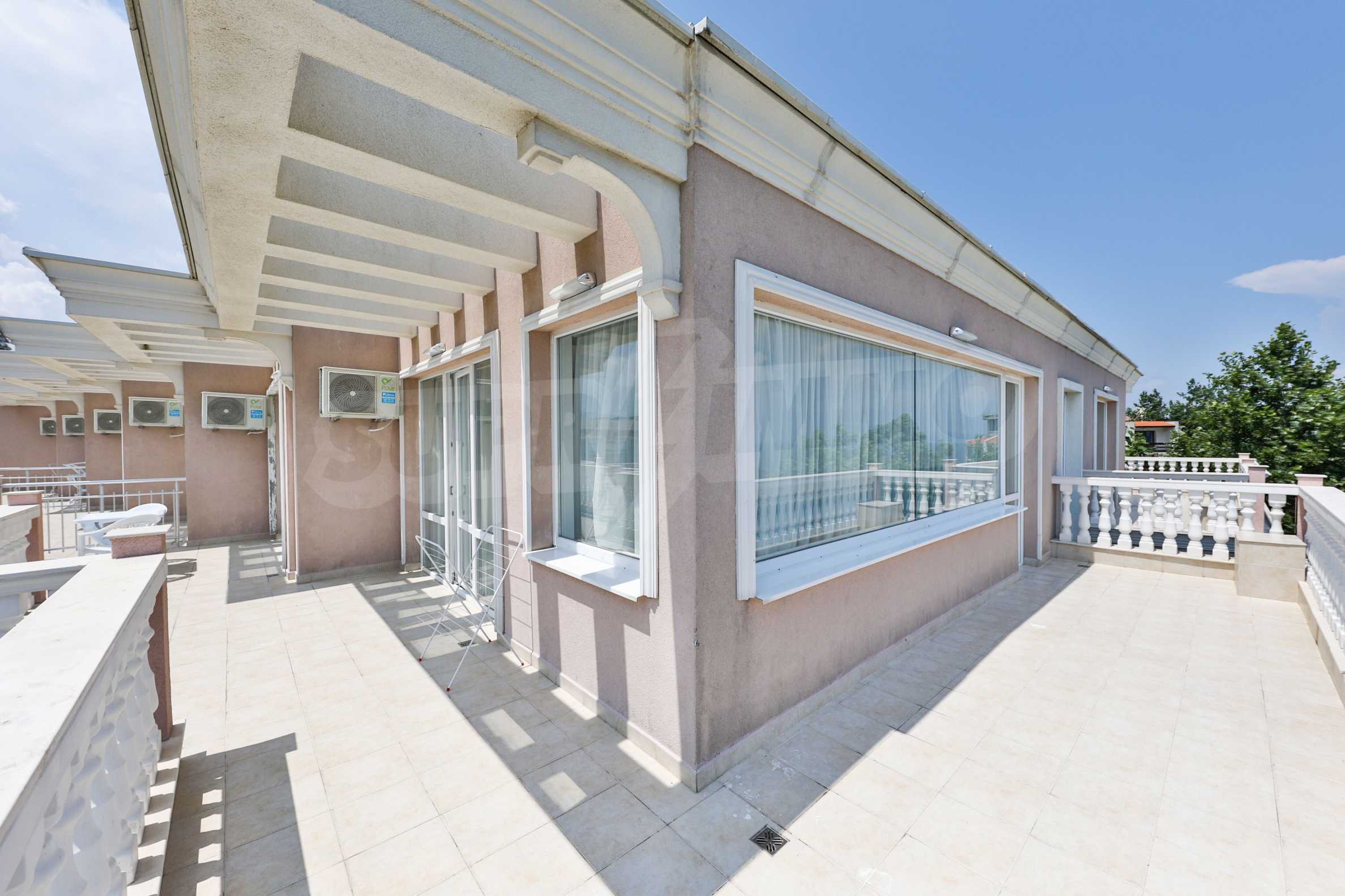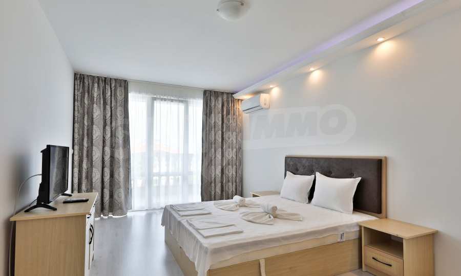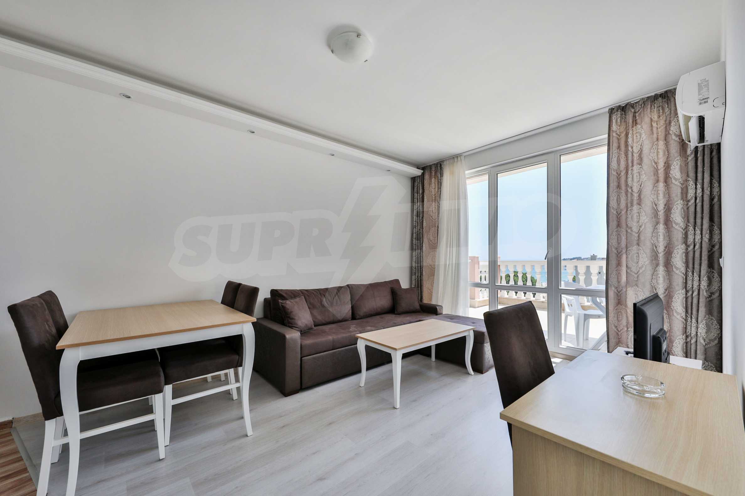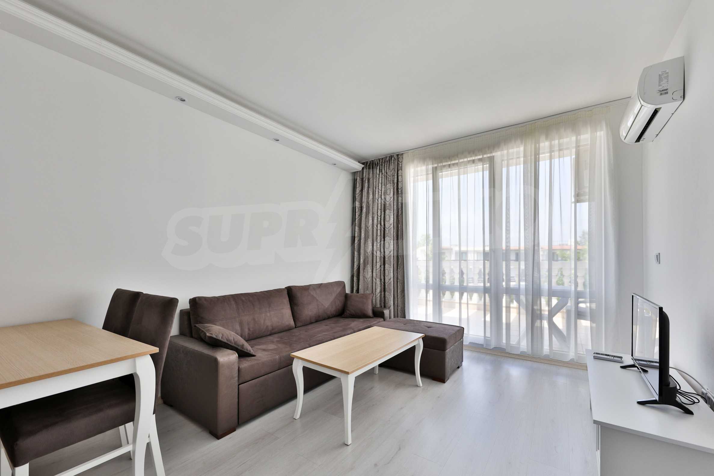 The building stands out with refined and elegant architecture, with spacious terraces with balusters. It is oriented towards the beach and offers amazing views of the sea and the sandy beach. It has all the necessary amenities for a pleasant holiday on-site, including a swimming pool, underground parking lot and a restaurant, security, video surveillance and reception. The properties are suitable for both summer vacation and year-round living. Given the attractive location near the beach, the apartments are a good choice for investment.