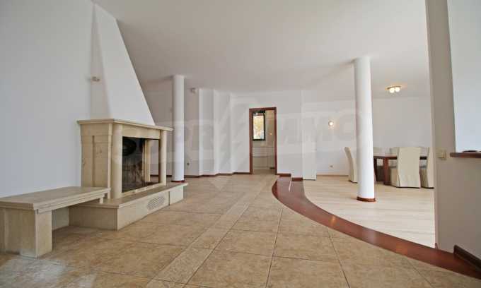 - Spacious and bright living room with fireplace and dining area;