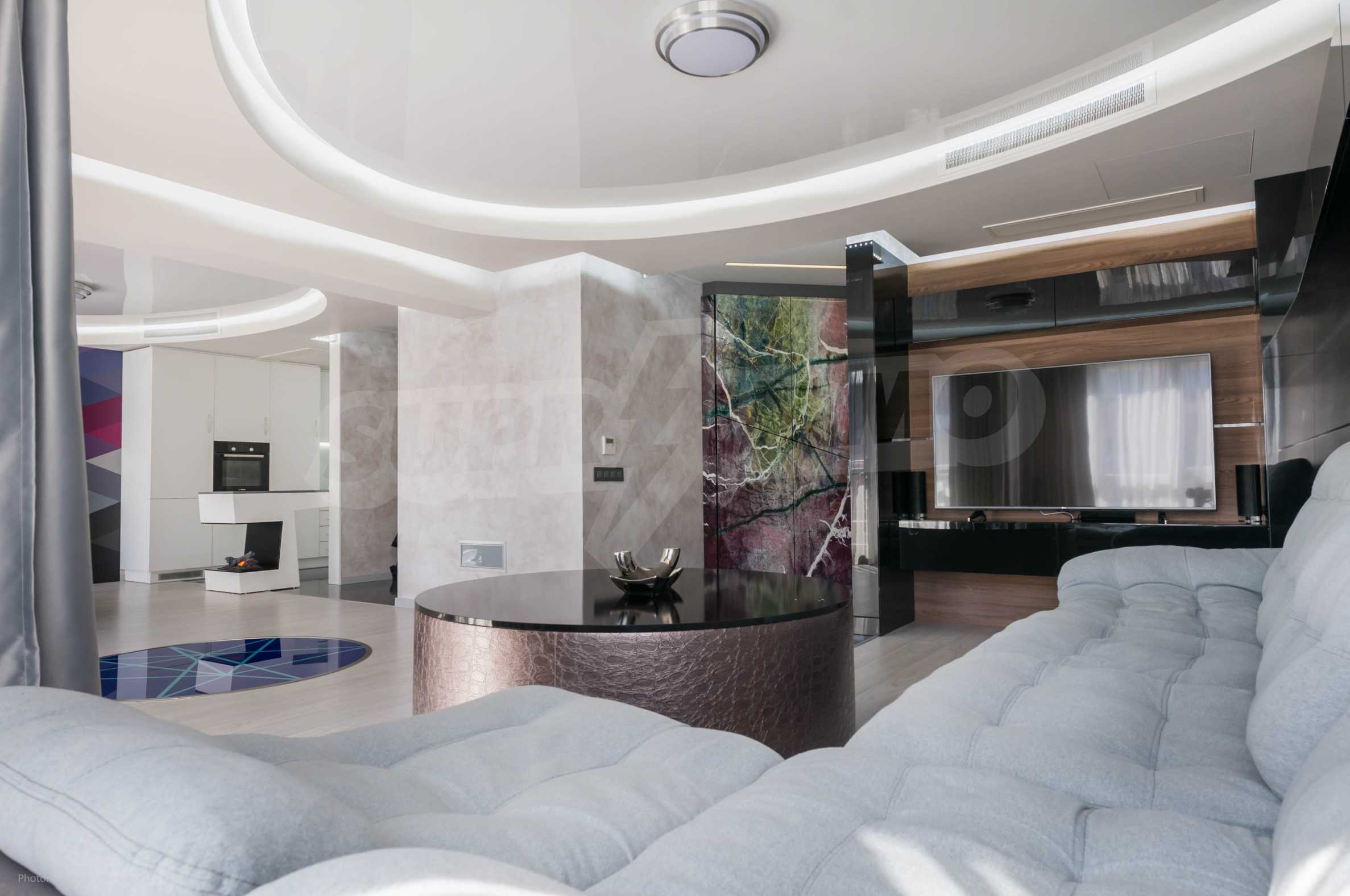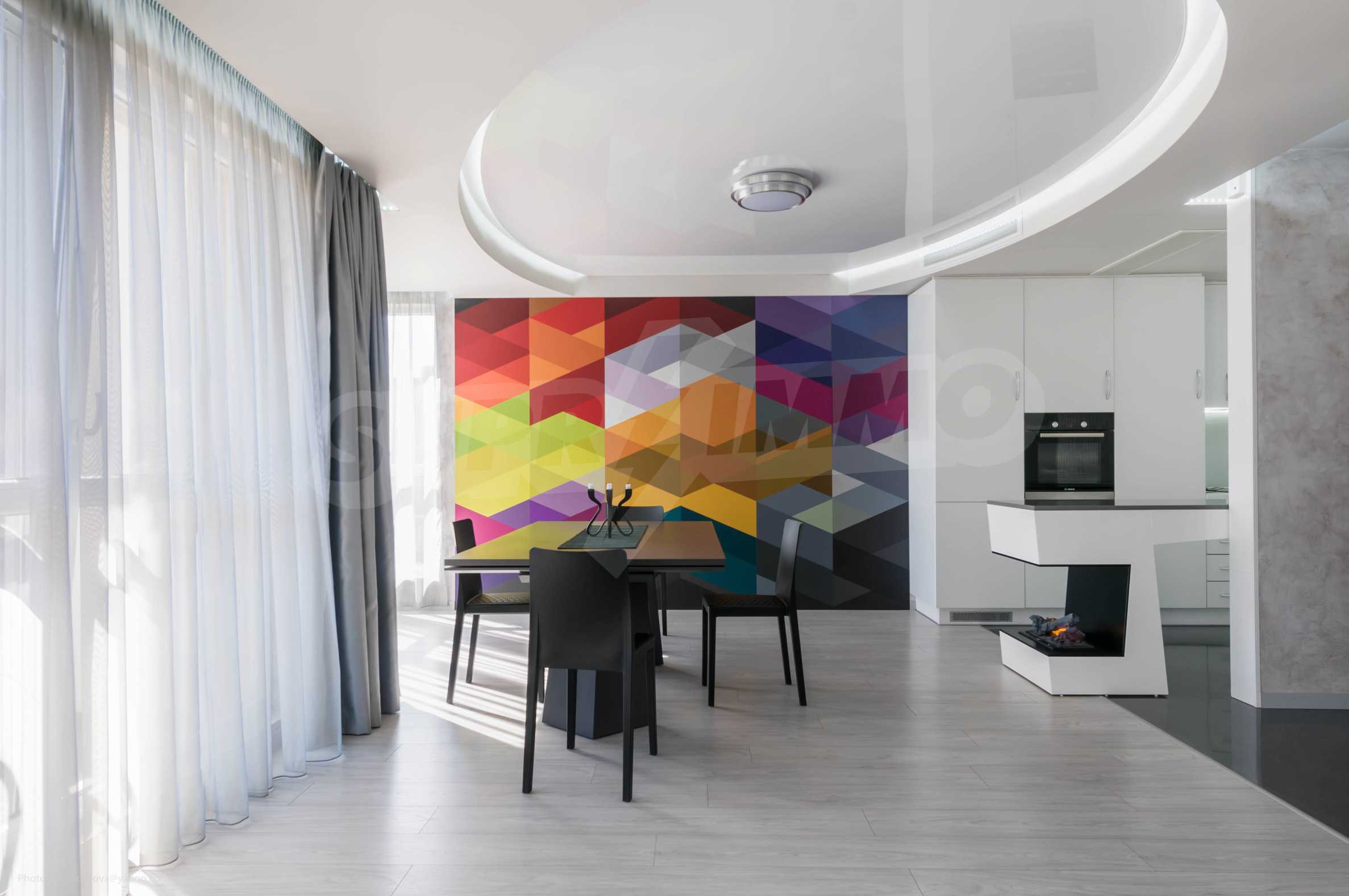 The extremely spacious apartment, which is furnished with innovative technologies and minimalist modern design, represents: