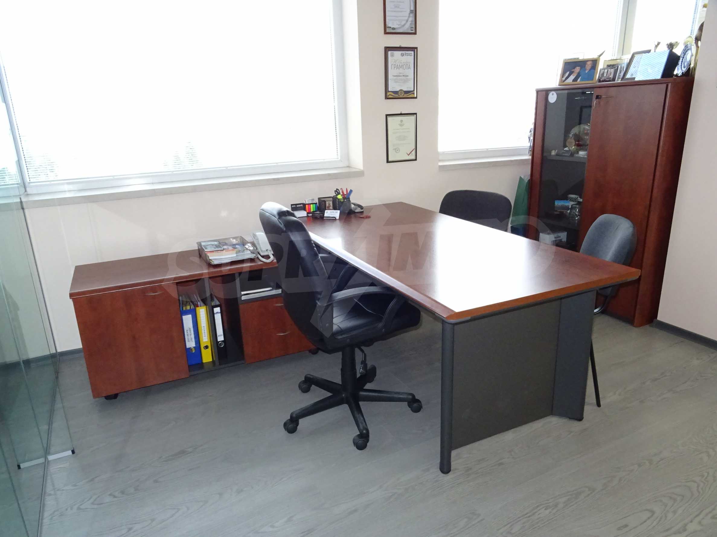 The office has an area of 125 square meters and consists of a large room divided by glass partitions and furnished with desks for seven jobs. Separate kitchen room, closet, bathroom.