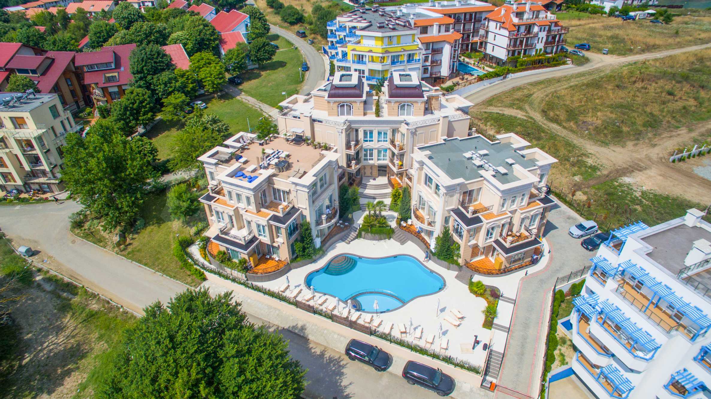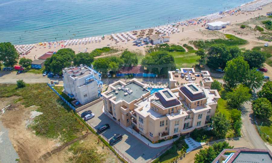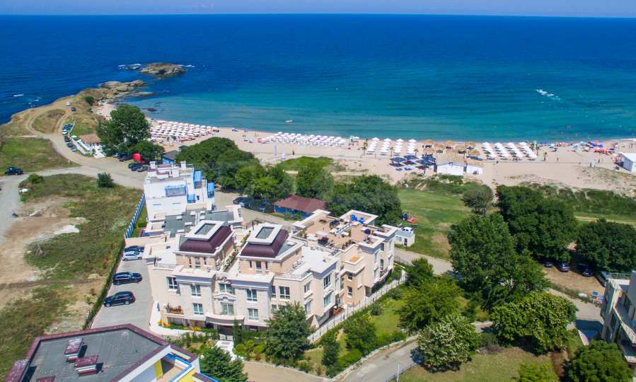 The elite seaside residence with first-class amenities is located above the central sandy beach of the popular resort, near the picturesque rocky cape Ambelitz and next to the popular beach restaurants - the Opera di Mare restaurant and the Camino piano bar. Just 10 minutes walk away is the iconic Coral Beach, with its wide beach and wonderful sand dunes.
