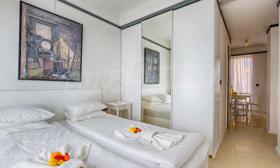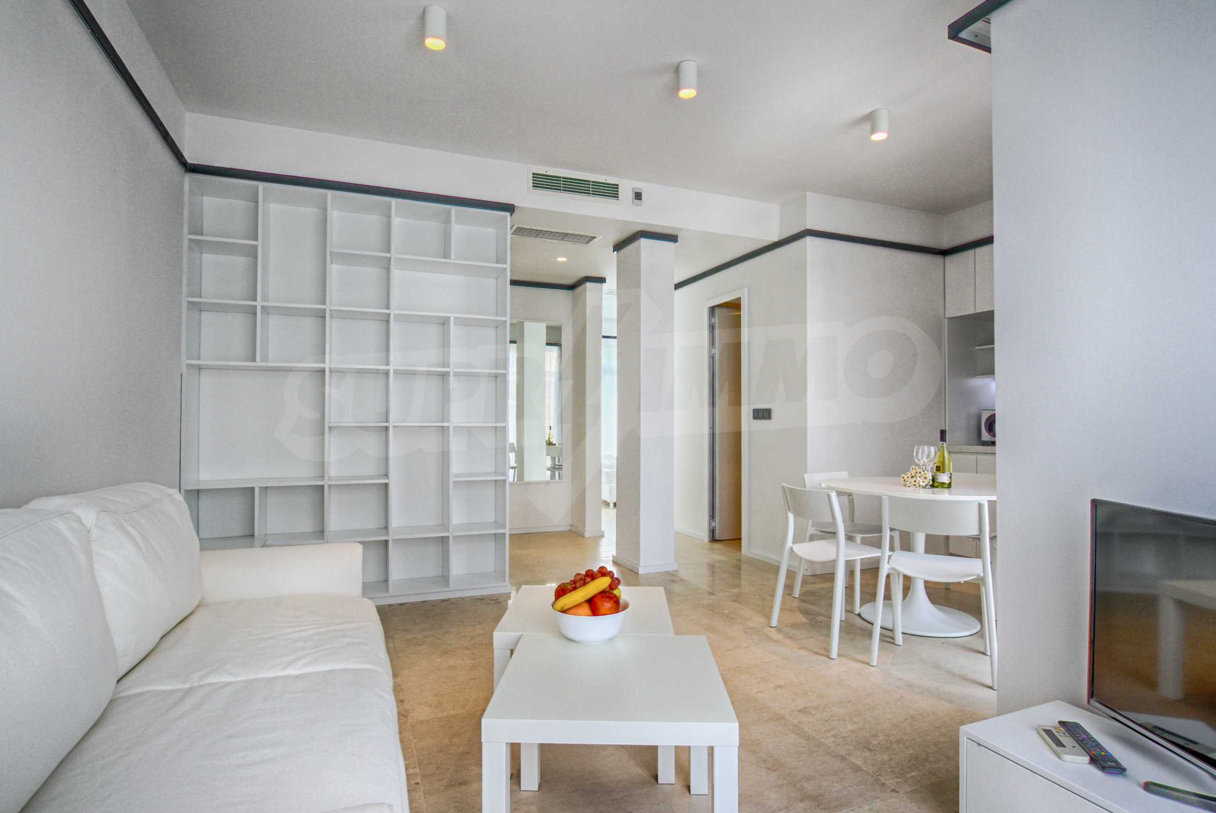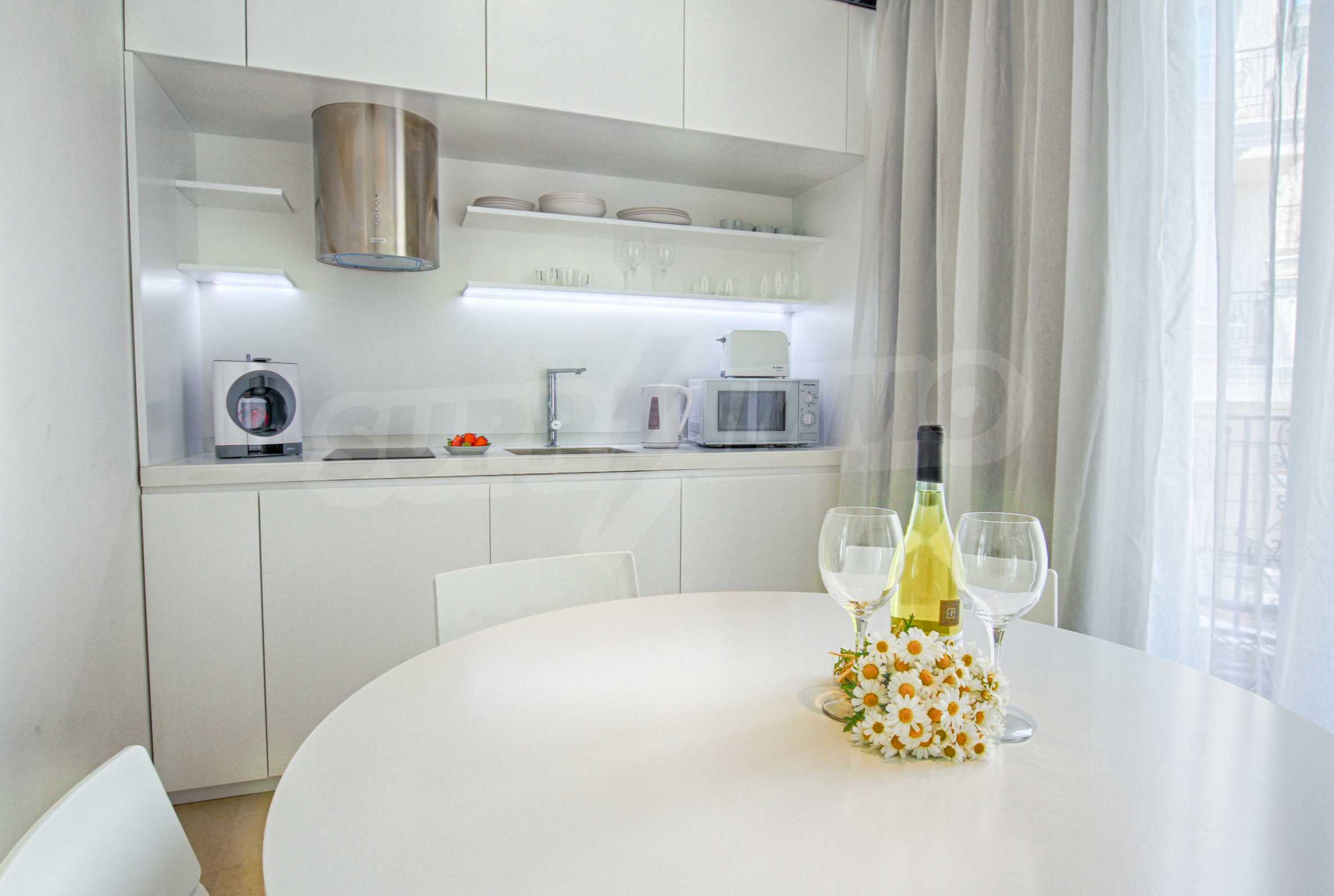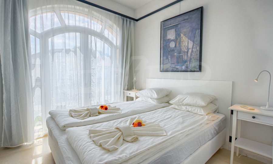 We offer for rent a stylishly furnished studio with magnificent design and modern equipment, located on the first line in the complex "Belle ?poque Beach Residence" in the seaside resort of Lozenets.