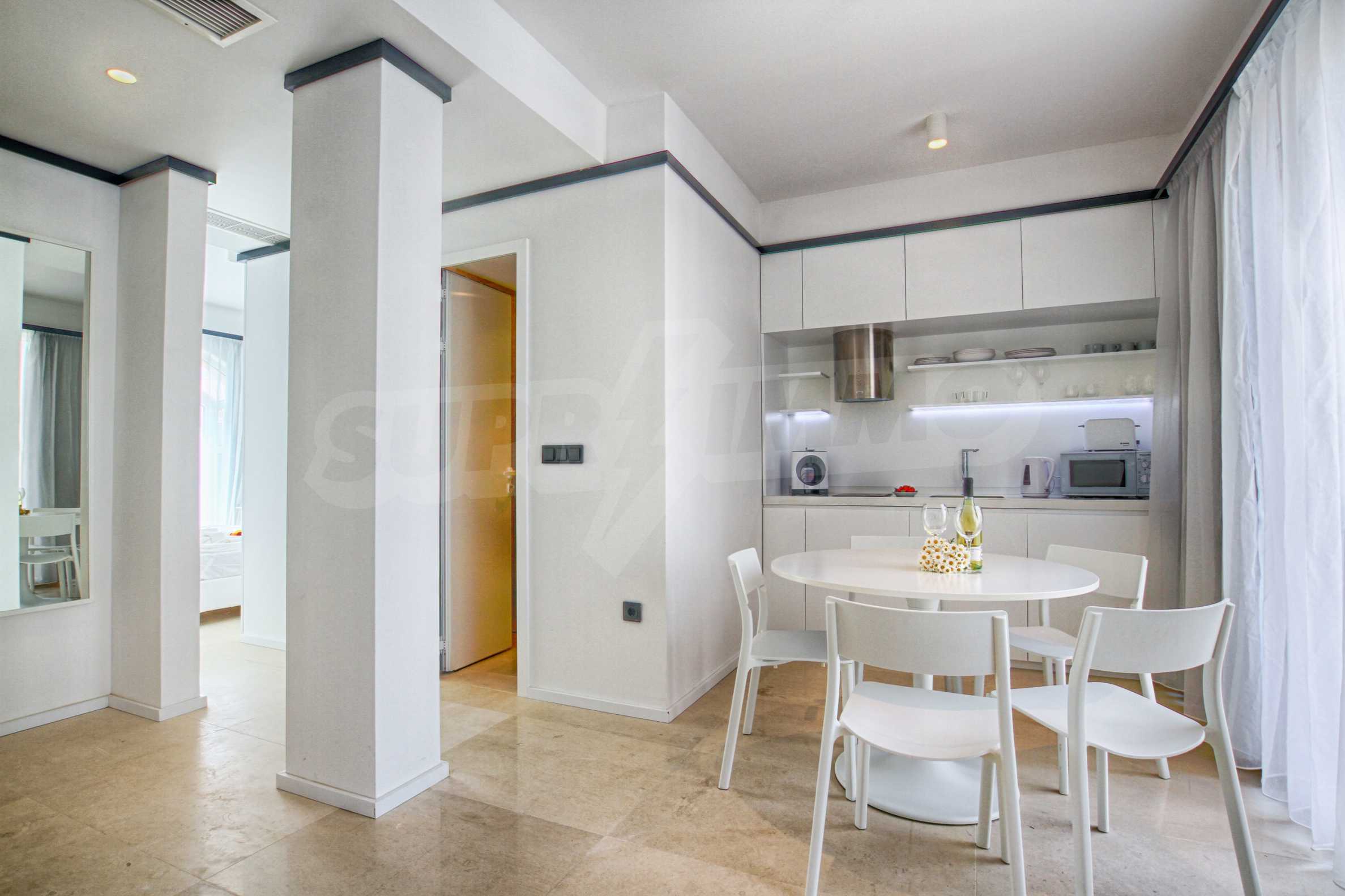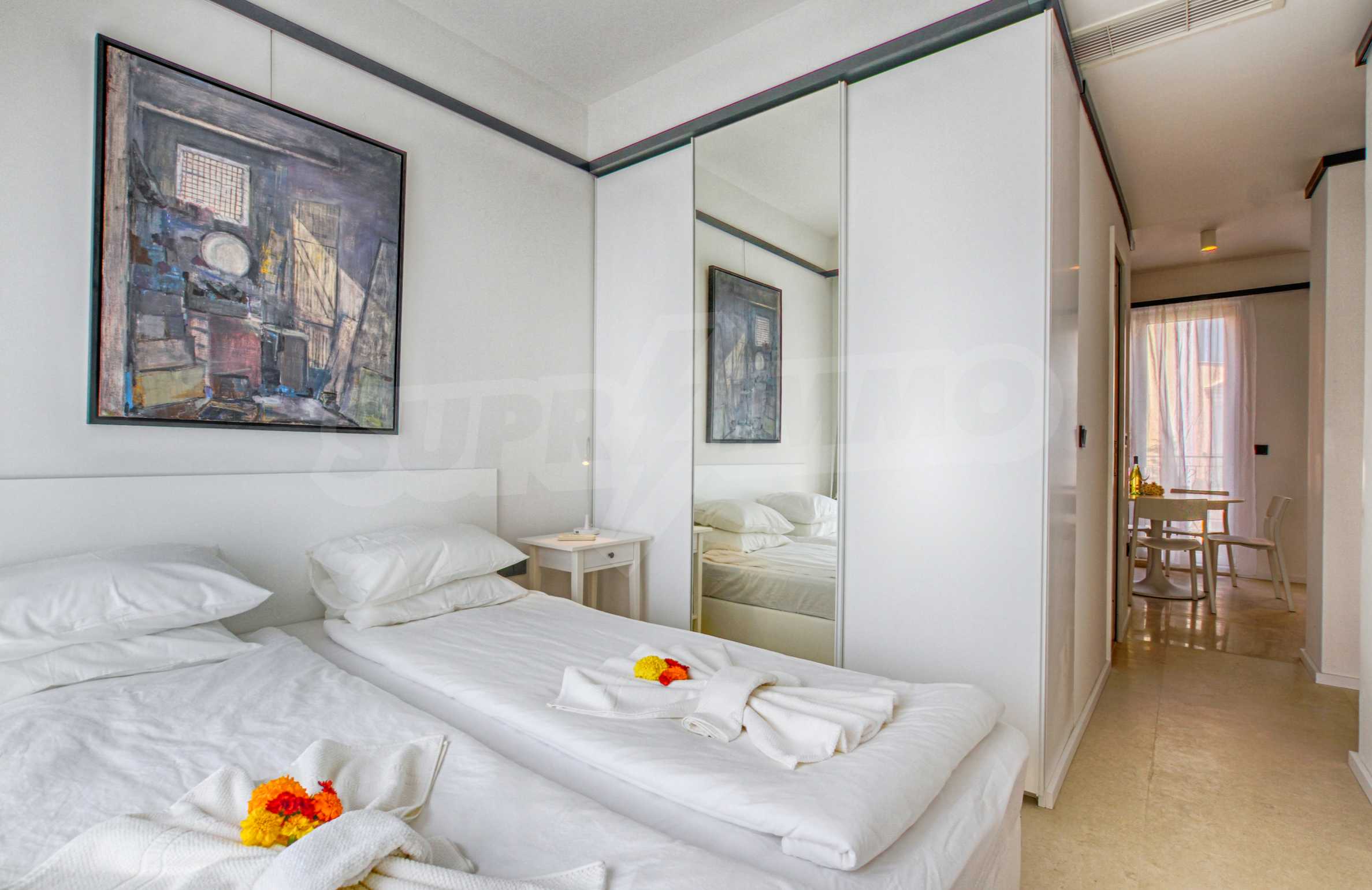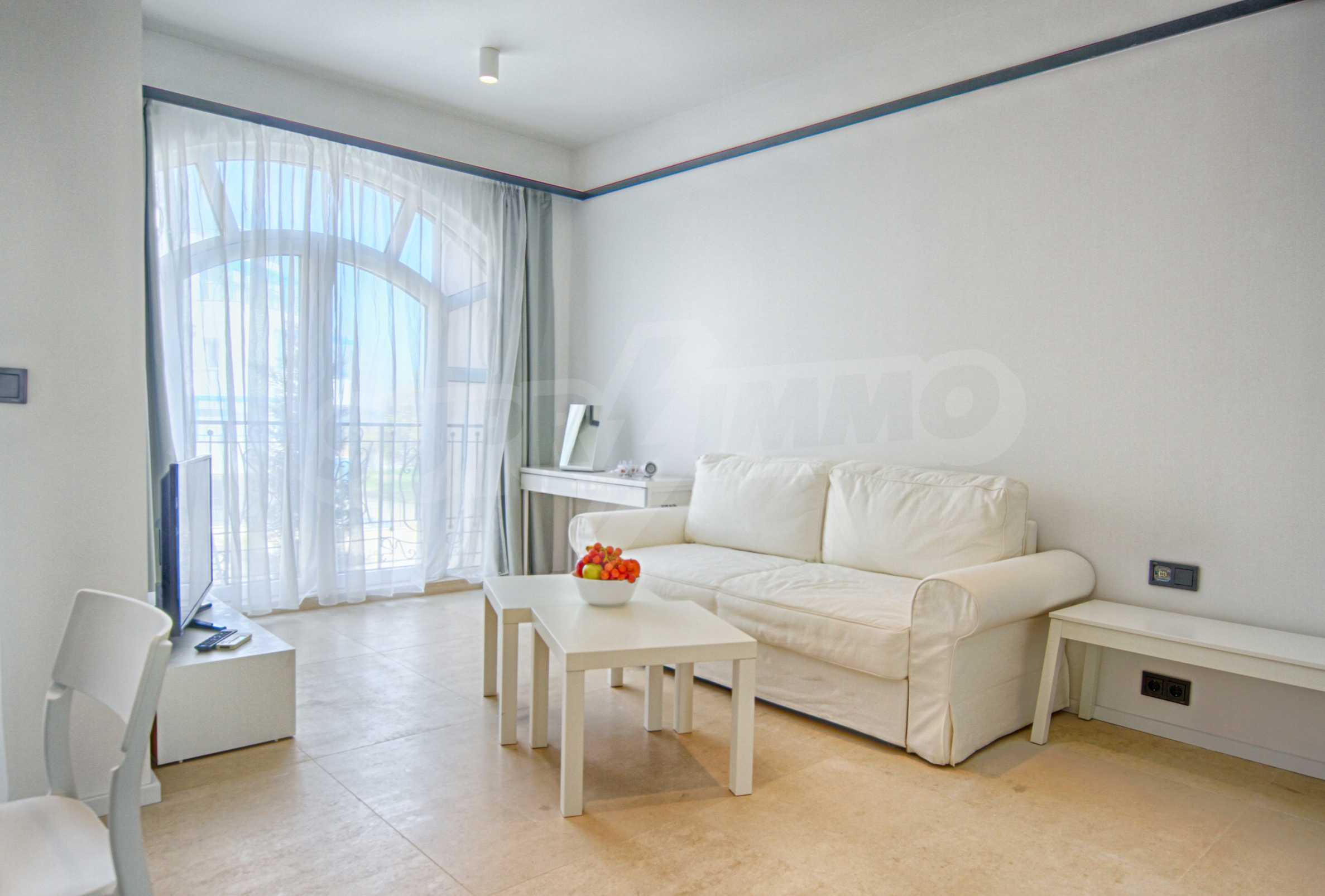 We offer for rent a stylishly furnished studio with magnificent design and modern equipment, located on the first line in the complex "Belle ?poque Beach Residence" in the seaside resort of Lozenets.