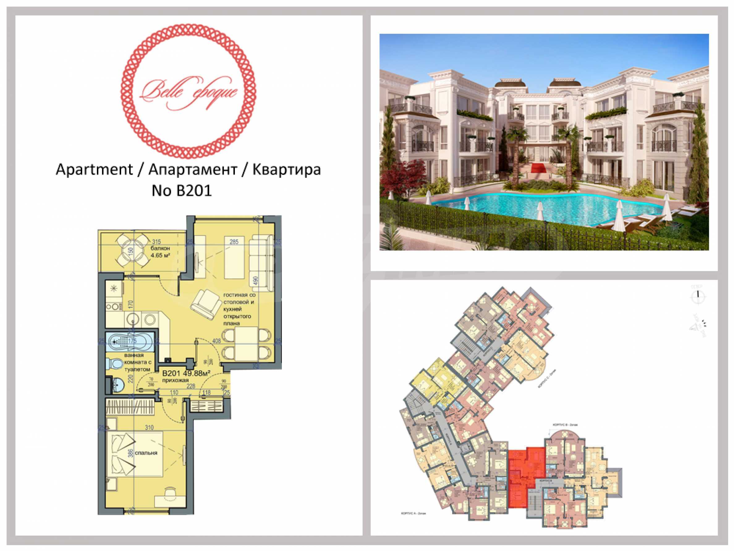 The luxury studio is fully furnished, with the highest class of finishing works and equipment that contributes to the most comfortable stay and relaxation meters from the sandy beach. The property offers a separate bedroom area, modern kitchen, washing machine and equipped bathroom, stylish furniture for storage and relaxation, cozy terrace with pleasant views of the courtyard, beautiful pool, sea and beach.