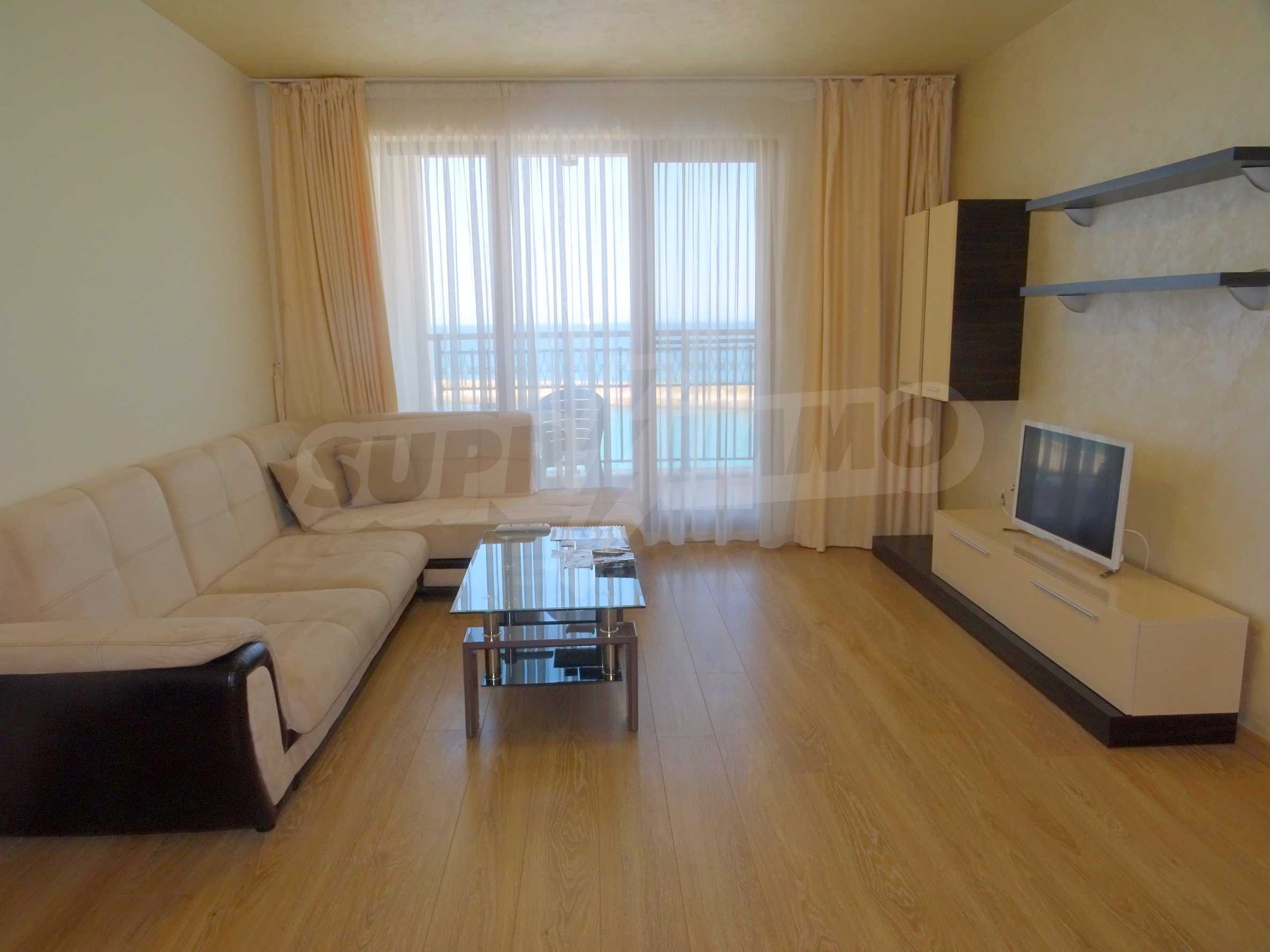 We offer you a sunny and cozy, panoramic one bedroom apartment with a wonderful view of the sea and the beach in Alen Mak, near one of the most popular Bulgarian Black Sea resorts "Golden Sands".