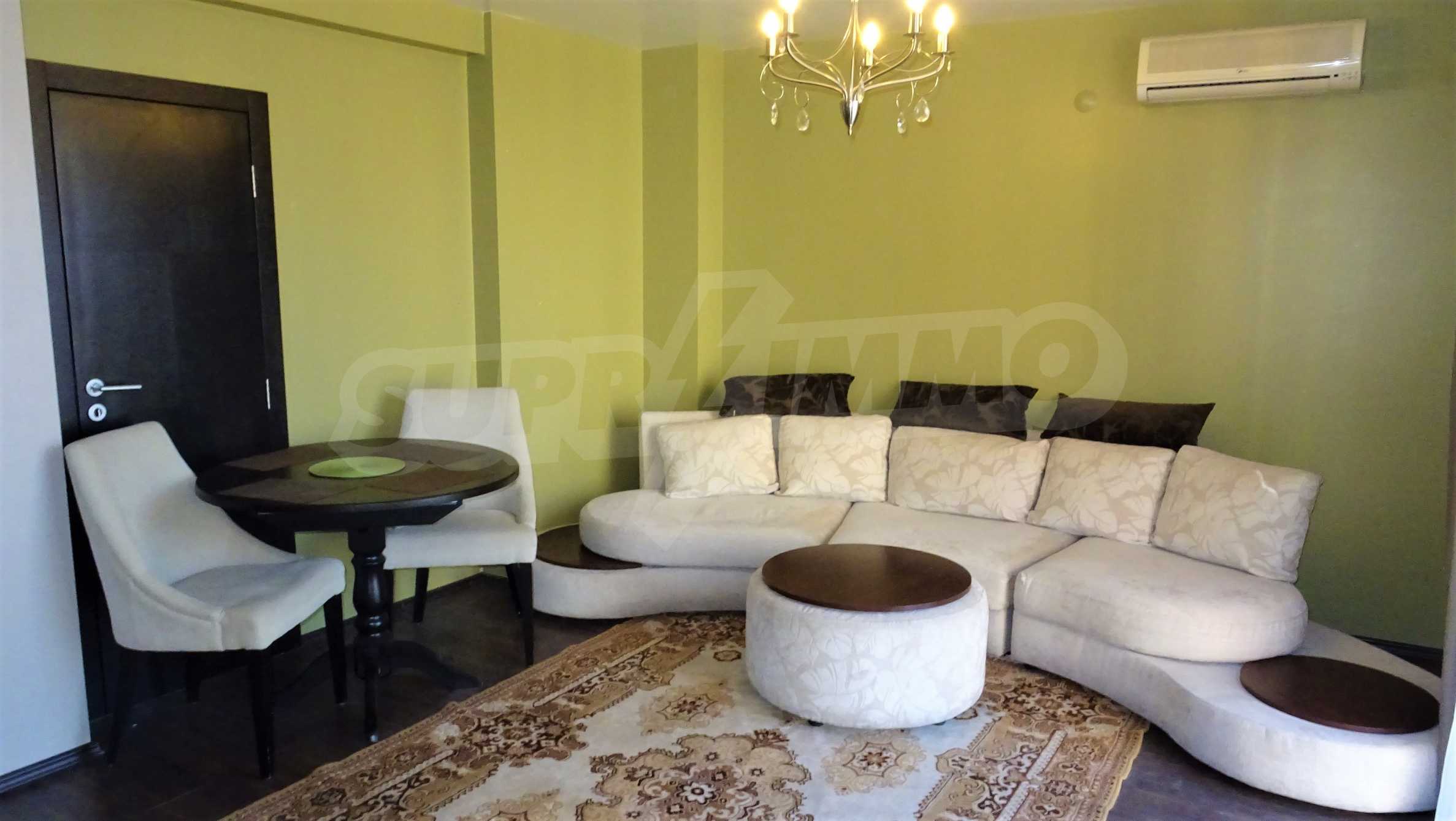 The apartment is air-conditioned, fully furnished and equipped with new furniture.