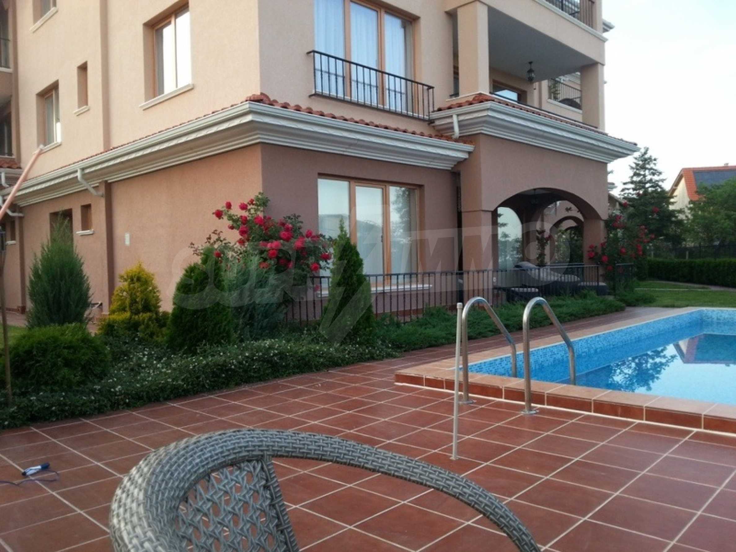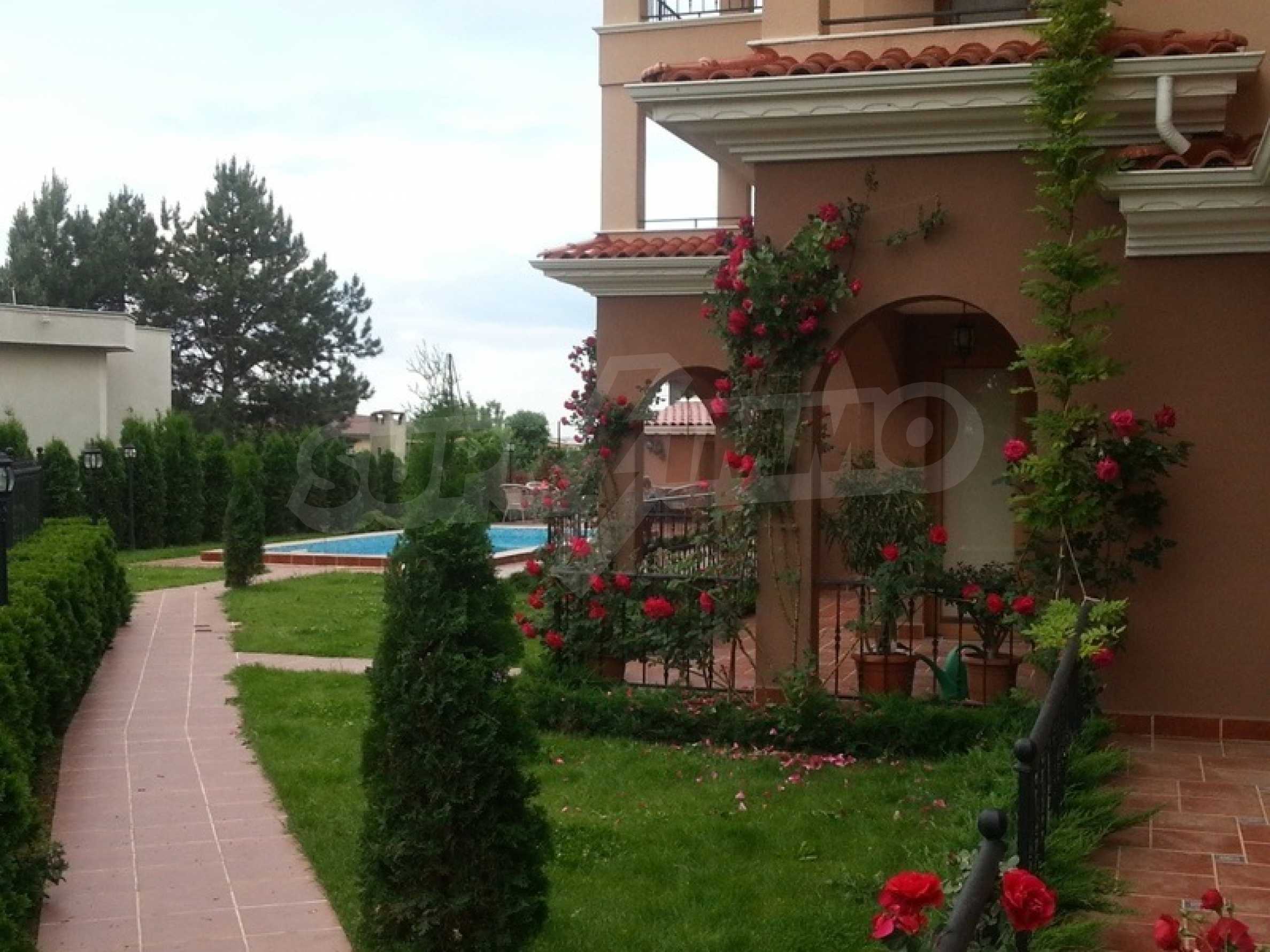 The complex has a richly landscaped and arranged yard, outdoor pool, barbecue area, children's playground, parking for cars.