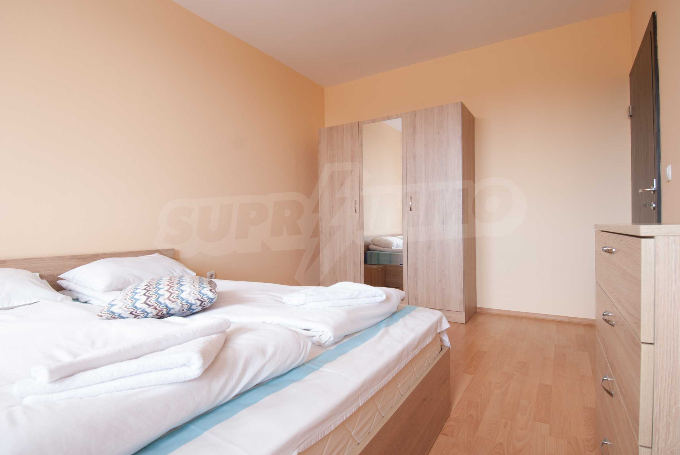 We offer to your attention an apartment in "Iglika 2" complex with top location in the center of Sunny Beach resort. Borovets. Just meters from the ski slopes, the property boasts wonderful access to all the facilities and amenities of the royal resort. The apartment is furnished on a third panoramic floor and has all the comforts that make it comfortable and attractive for your vacation. It consists of living room with dining area and kitchen, bedroom, corridor, balcony and bathroom with toilet. The total area of the property is 52.31m2, of which 47.14 m2. clean. The exposure is northern. The furniture is new, stylish in light tones that make the apartment friendly and cozy. At your disposal in the dining room are a small and compact kitchen, a kitchen table, a comfortable sofa bed. The bedroom has a large double bed, chest of drawers and a wardrobe for clothes. The bathroom is of an appropriate size with pleasing colors and a functional shower cabin. It is heated by gas, with an individual gas boiler installed. The rooms have large windows and sufficient light. The apartment boasts panoramic views of the pine forest and the heart of the Borovets complex.