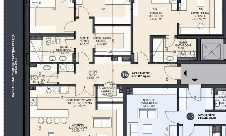 • съгласно проекта, жилищната сграда е с РЗП 3247 кв.м