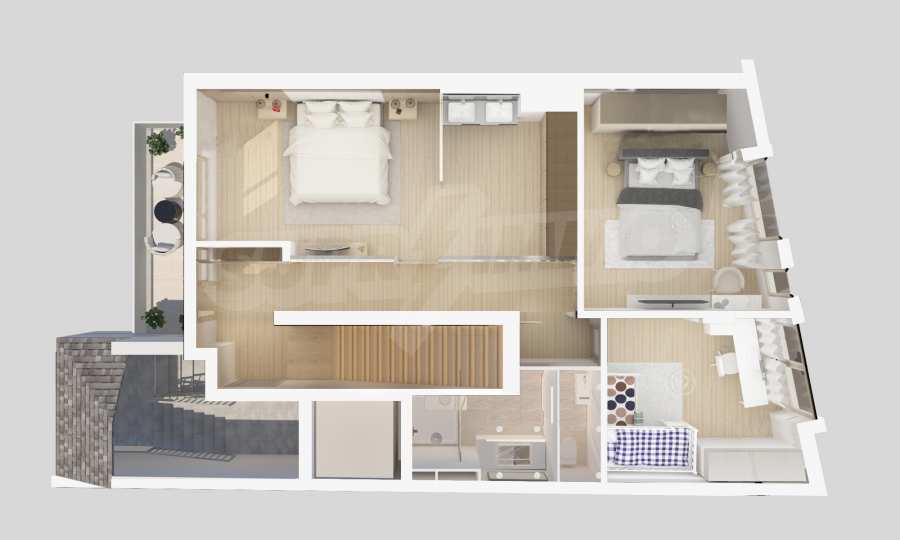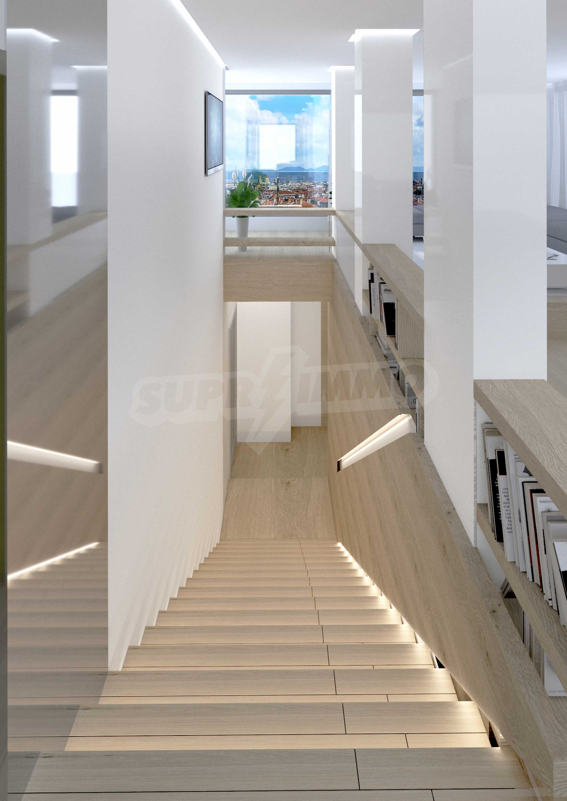 We present to your attention a luxury penthouse in a representative new building on Tsar Ivan Asen II Street. The apartment is located on the 6th and 7th top floor with a beautiful view of the park "Military Academy" and Vitosha. The property is offered finished with natural materials, the rooms are bright and panoramic.