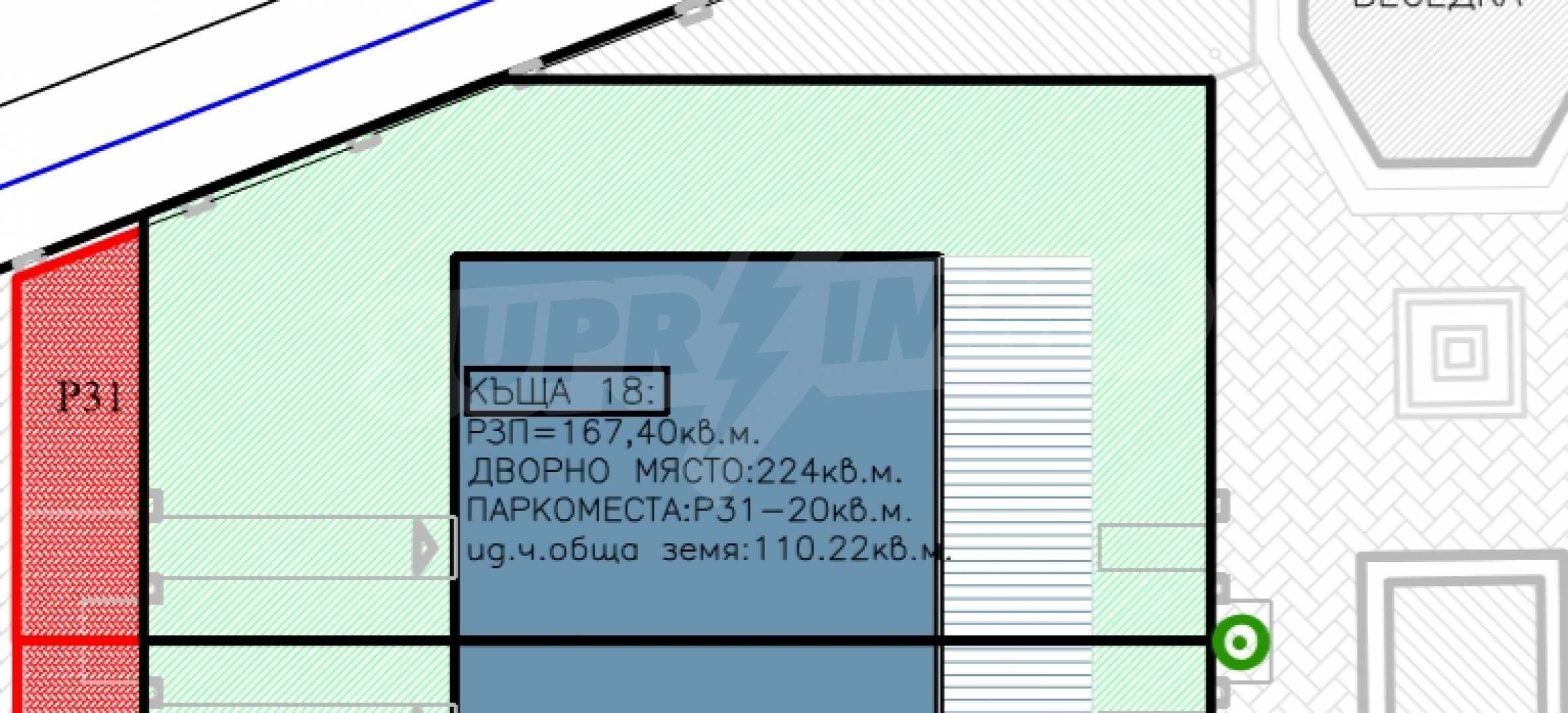 - Parking space: 20 m2.