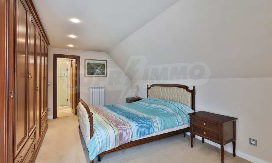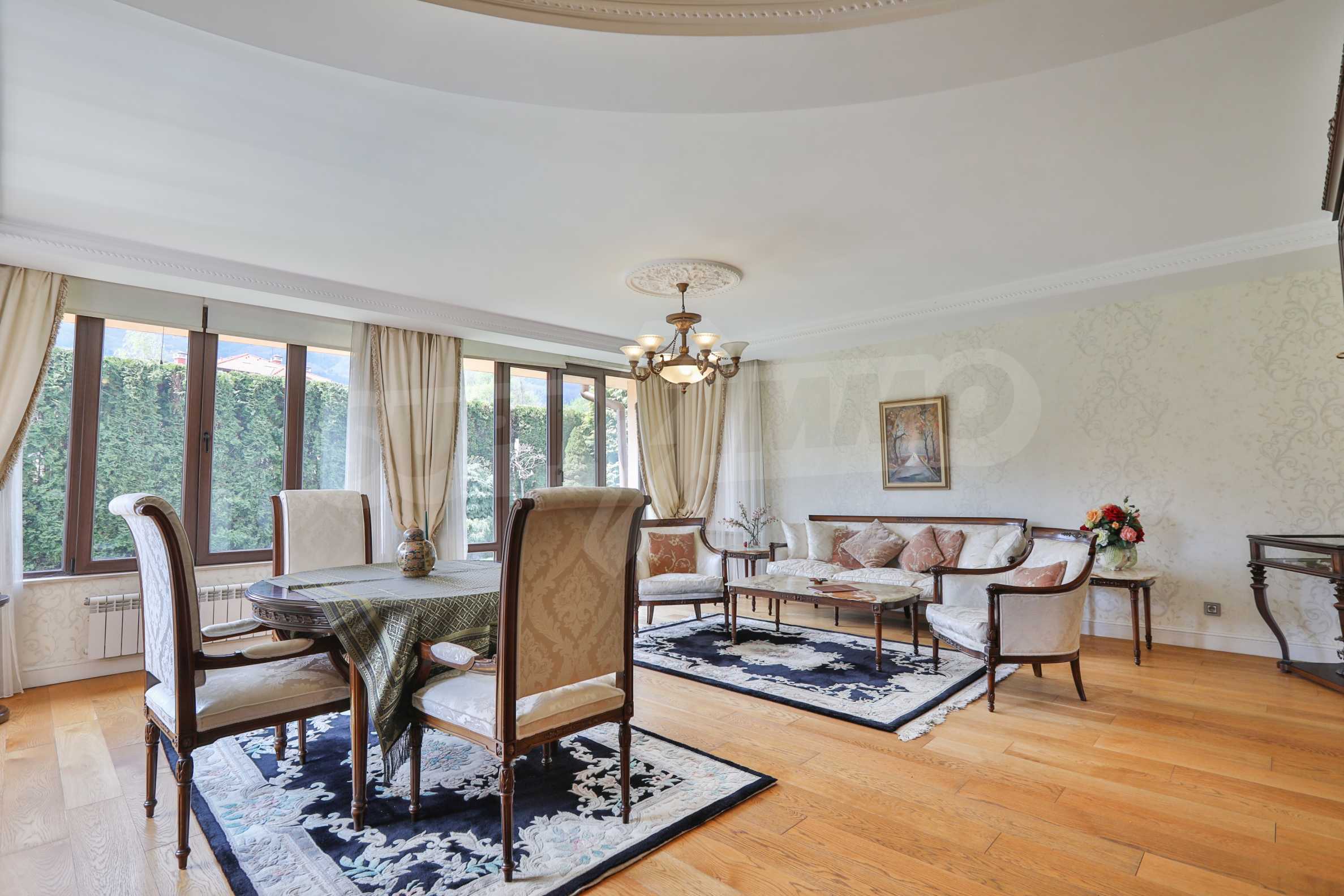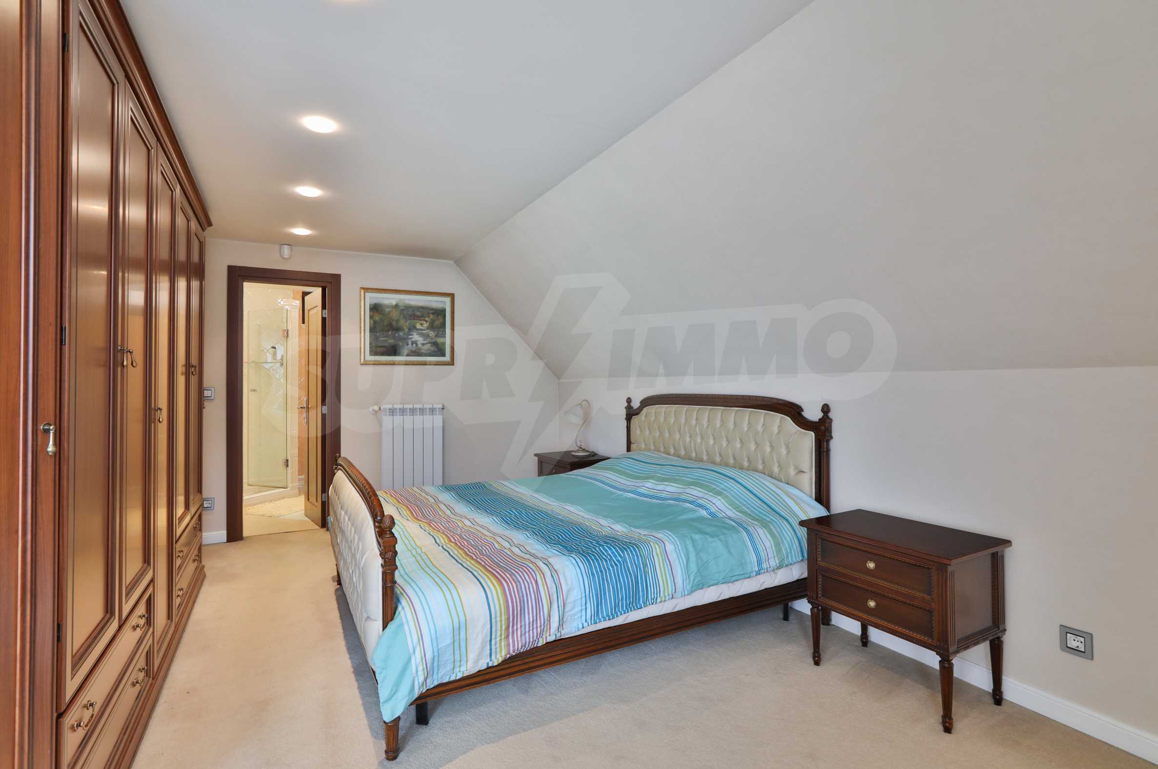 We are pleased to present a beautiful house in a classic style, with solid wood furniture. The house is located in a gated complex with controlled access, at the foot of Vitosha, Dragalevtsi. The area is quiet and peaceful, next door are only beautiful houses, close to a bus stop, a 24-hour supermarket and restaurants. Excellent communications, through Simeonovsko Shosse Blvd. and Cherni Vrah Blvd. and Ring Road, minutes from malls and prestigious schools.