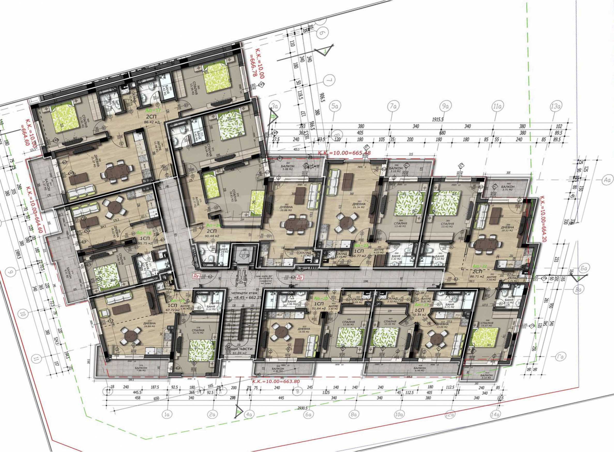 Apartment complex of gated type, located in the quarter "Krastova vada" in close proximity to Cherni vrah Blvd. and 10 min drive to the center of Sofia. The immediate proximity of key roads such as Simeonovsko Boulevard and Ring Road enable fast and convenient transfer to all desirable destinations in Sofia and the roads to the interior of the country. In the park there are two buildings divided into 4 sections containing different types of apartments with an area of 60 to 170 square meters. In the basement under the residential buildings is built a spacious underground parking lot, with sufficient number of parking spaces for each of the apartments. The complex has a controlled access and an efficient video surveillance system, which provides the residents with security and tranquility.