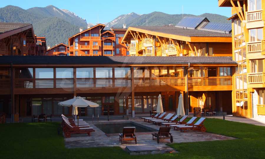 Pirin Golf & Country ClubSituated in a gated 5* complex and overlooking the 14th Hole of the Ian Woosnam Golf course, the Pirin National Park and the fabulous Razlog Valley district of Bansko.  From here a 10 min drive takes you to the ski resort of Bansko, which is an all-year-round resort sited at the foot of the Pirin Mountain.  This perfect place with mountains and pine trees is a spot where you can relax and unite with nature, yet feel perfectly at home. The complex which is built on an area of 10,000 sq m offers properties with excellent investment and capital growth potential. Property on Offer Here on the fourth floor (top floor), we have on offer this studio apartment measuring 43.14 sq m with wooden vaulted ceilings. This is an open plan area comprised of: Entrance hallway, living, sleeping, dining and kitchen area (sleeps 4)Bathroom with WC, sink and showerBalcony overlooks golf course with views of mountains.Here you will find fantastic facilities which will help you to relax. The facilities include:Reception2 Restaurant - serving international and local dishesBarEntertainment facilitiesLandscaped gardensSpa centre - providing massages, steam bath, resting area,Foot spa and hydrotherapyFitness studioFree shuttle bus to gondola station in skiing seasonParkingThe complex has fantastic facilities and offers owners and guests the chance to relax and get away from it all. Bansko is a warm, charming, friendly and welcoming town and increasingly popular all year round destination for holidaymakers. It embraces skiers, mountaineers and golfers of all nationalities, boasting state of the art facilities which are improving all the time. Outside the Ski season the scenery is beautiful and it is ideal for trekking, hunting, fishing and mountain biking and golf on several new courses.As property owners on site you receive discounted rates to play golf and use the clubhouse as well as a large choice of restaurants and shops including supermarket and bakery in Downtown district. Owners are also entitled to use the Spa complex which includes swimming pool, sauna, infrared, steam room and laconium all free of charge. There is a choice of 5 outdoor pools and a state of the art gym and squash courts. Free shuttle bus goes to the gondola station in ski season.Pirin Golf has a fabulous property management team at the complex.  If you wish to rent your apartment to holidaymakers they will take the hassle away from you and look after everything. This apartment has only had 1 owner and it has never been rented.