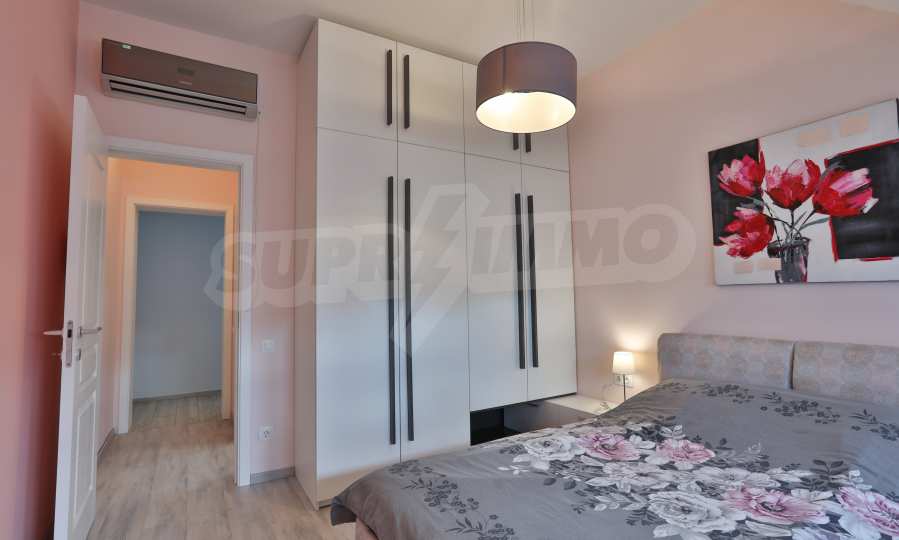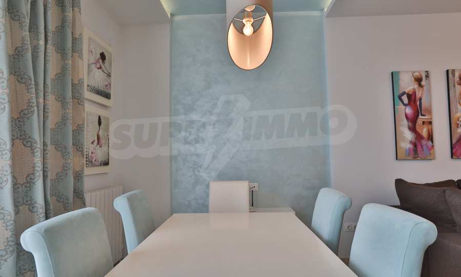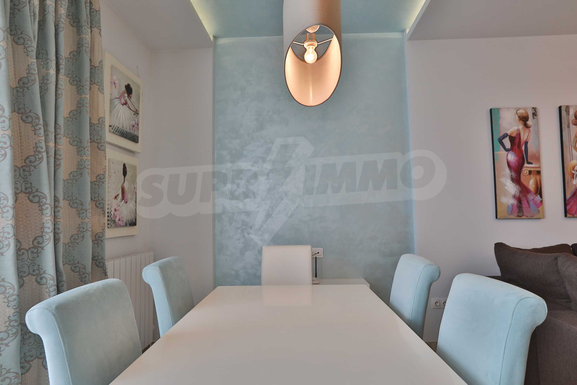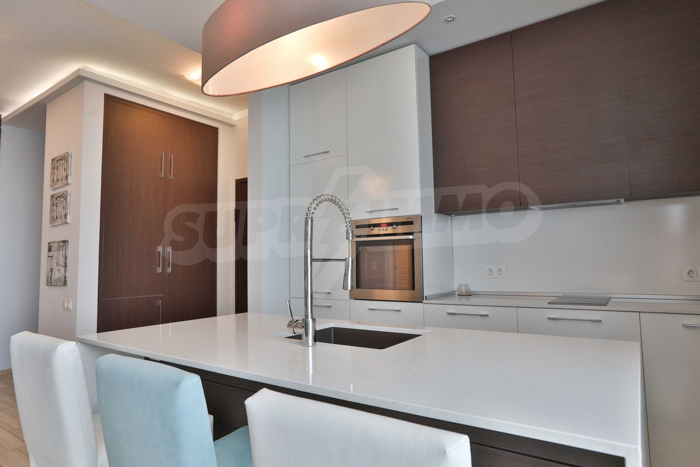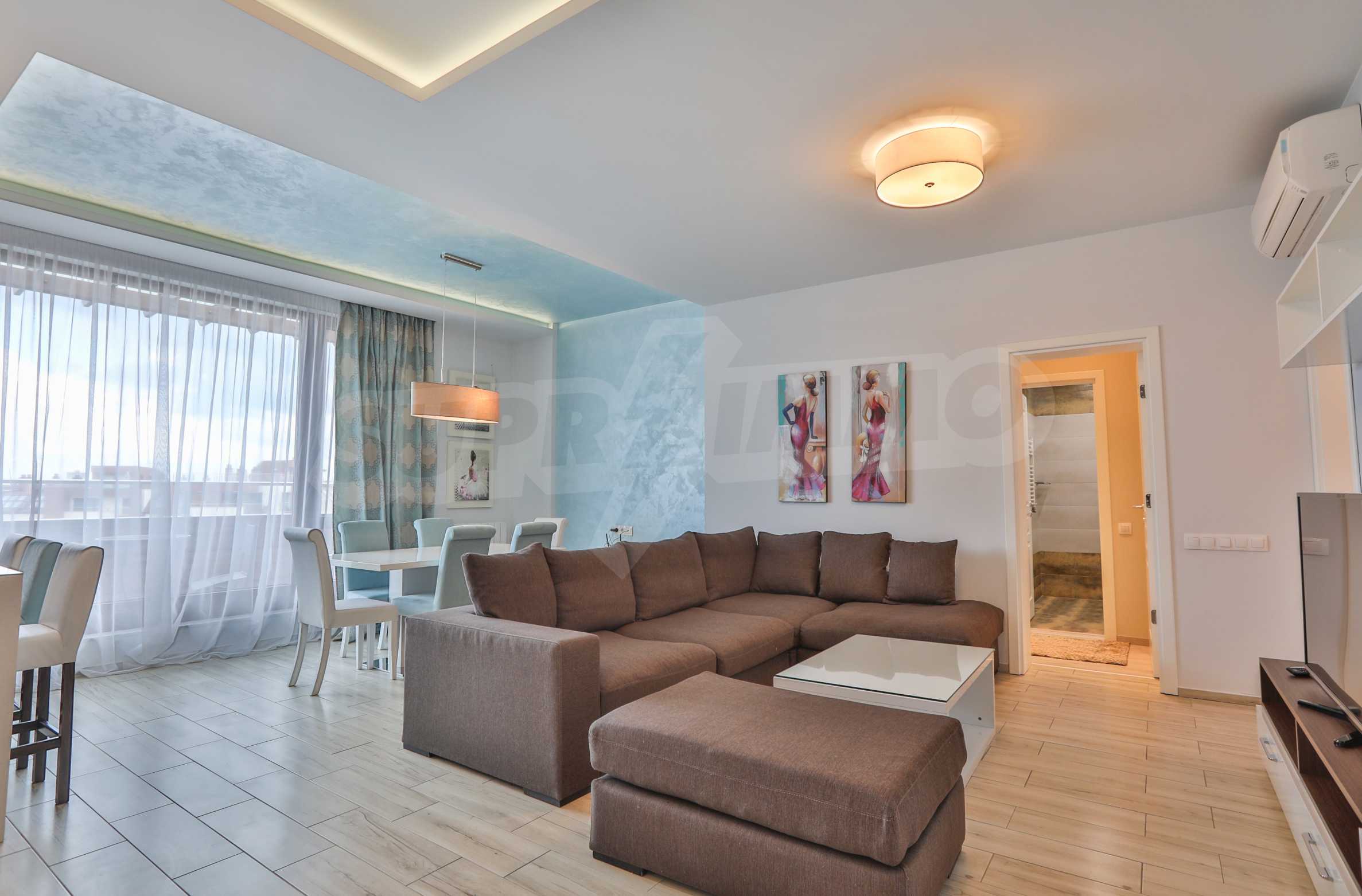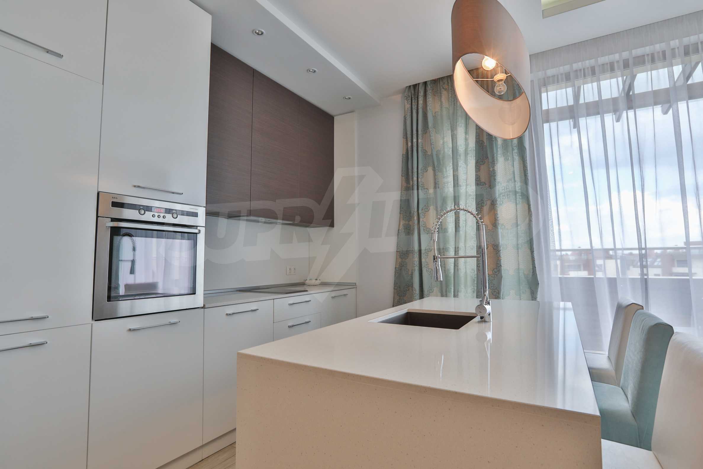 The apartment is located on the fifth floor and offers a panoramic view of the complex's park from its terrace. The apartment is stylish, with clean interior lines, with attention to detail. It is fully furnished and modern equipped with all necessary electrical appliances.