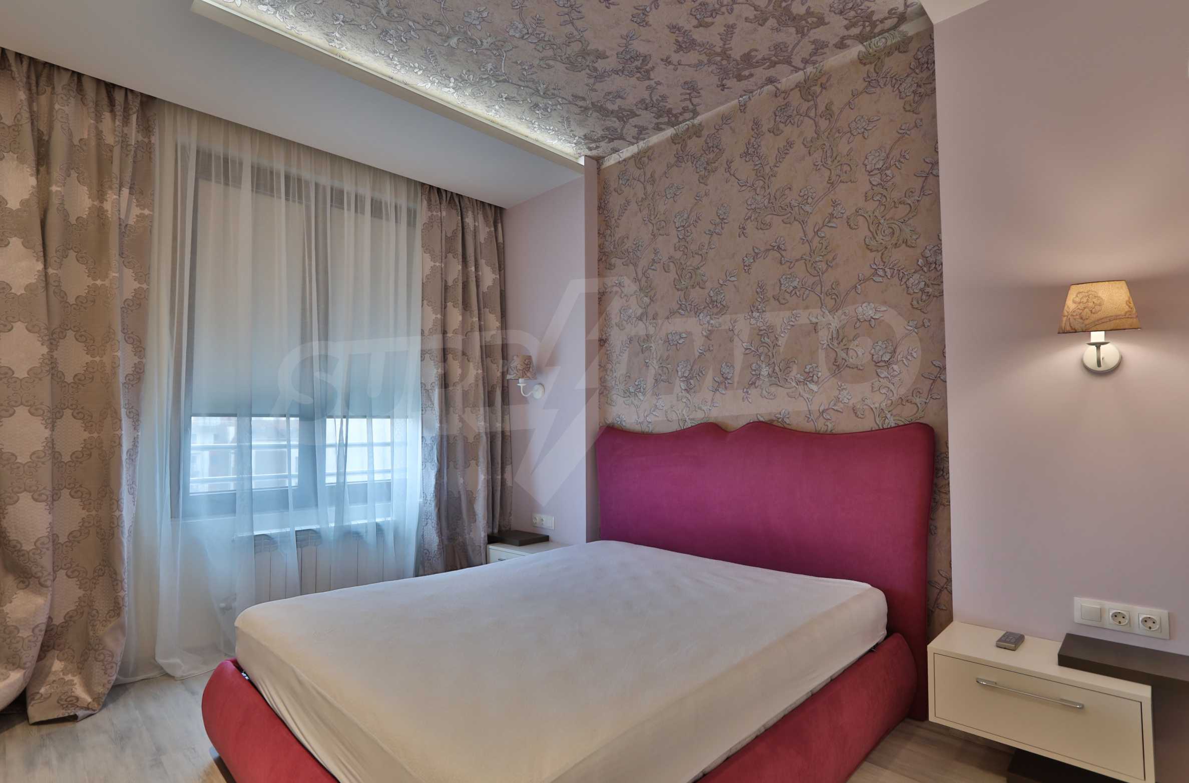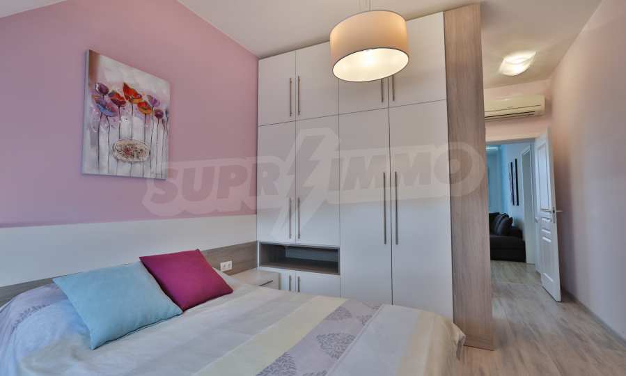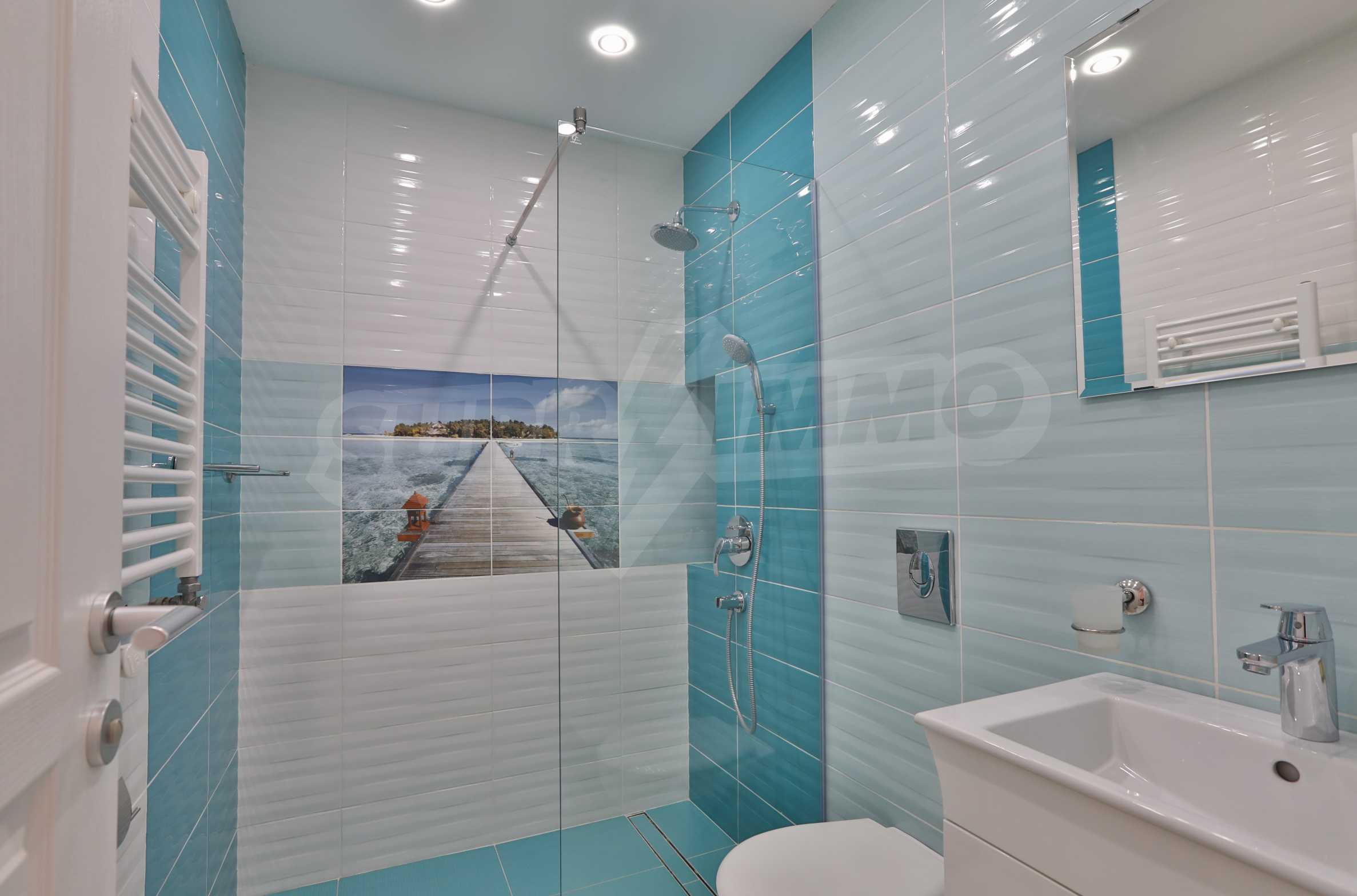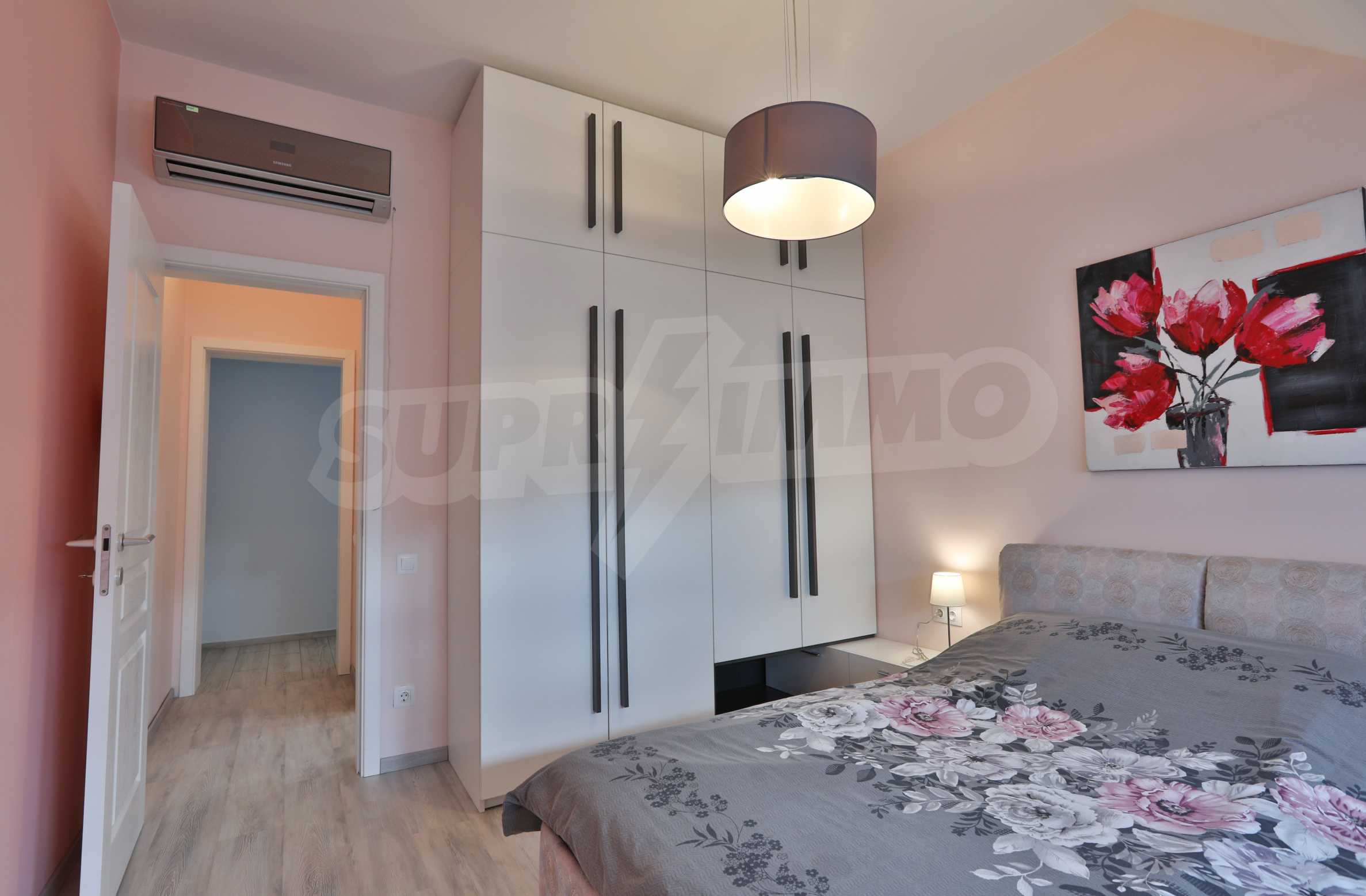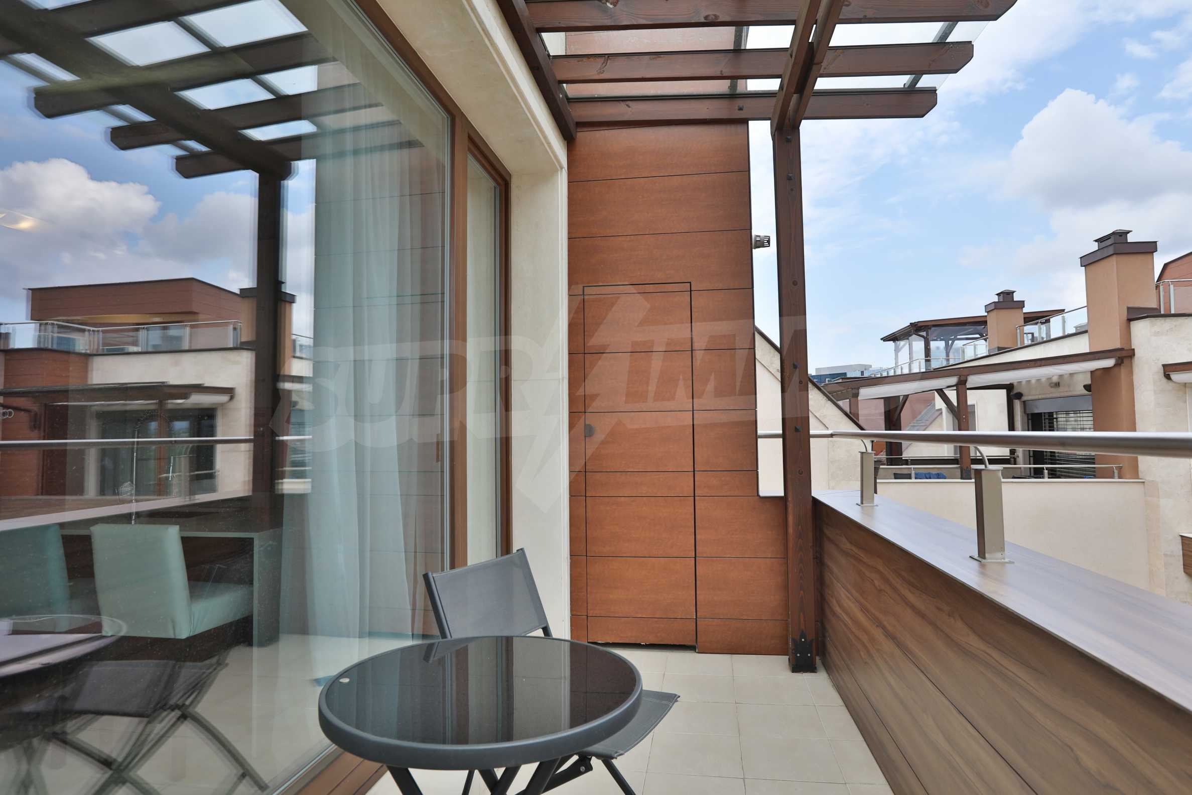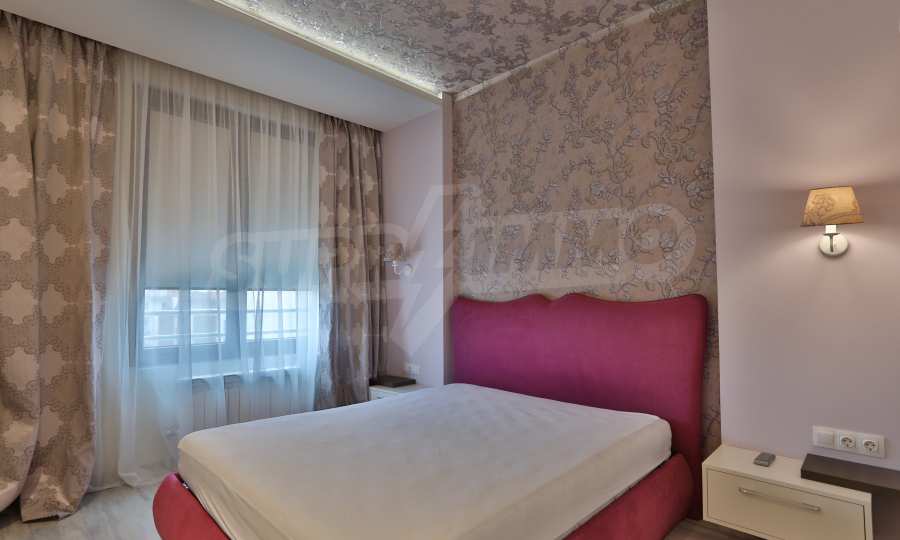 The apartment is located on the fifth floor and offers a panoramic view of the complex's park from its terrace. The apartment is stylish, with clean interior lines, with attention to detail. It is fully furnished and modern equipped with all necessary electrical appliances.