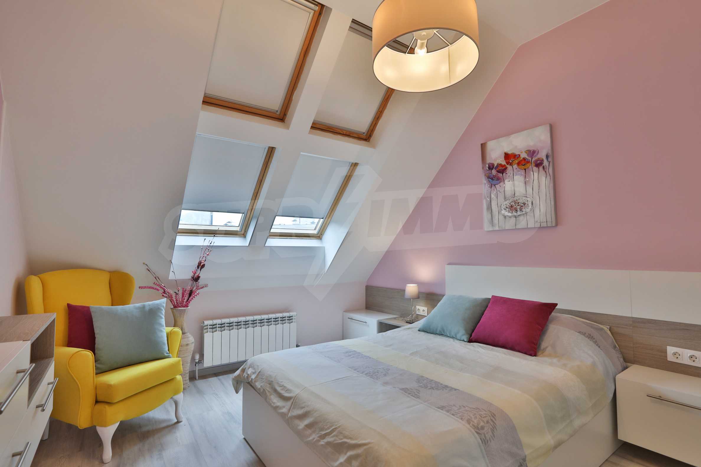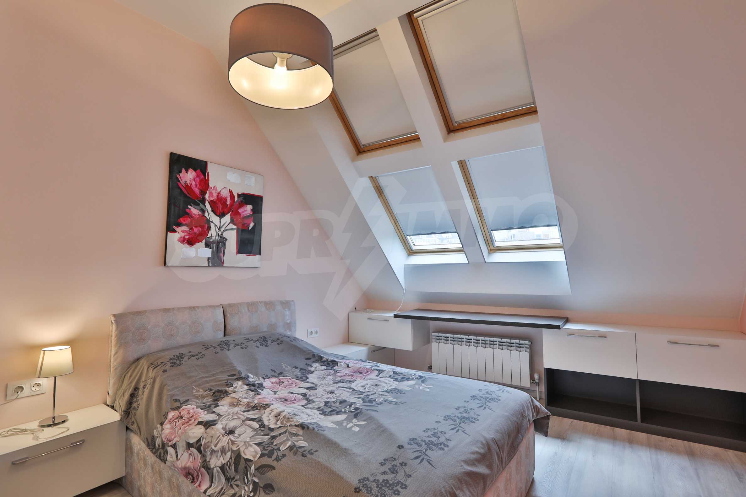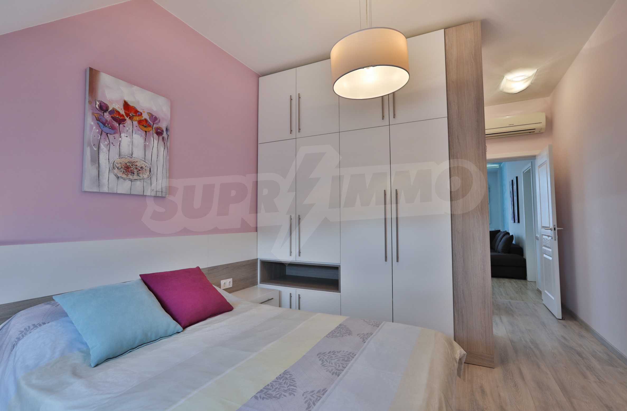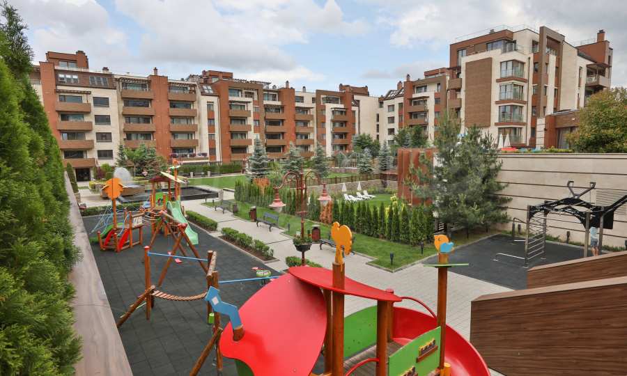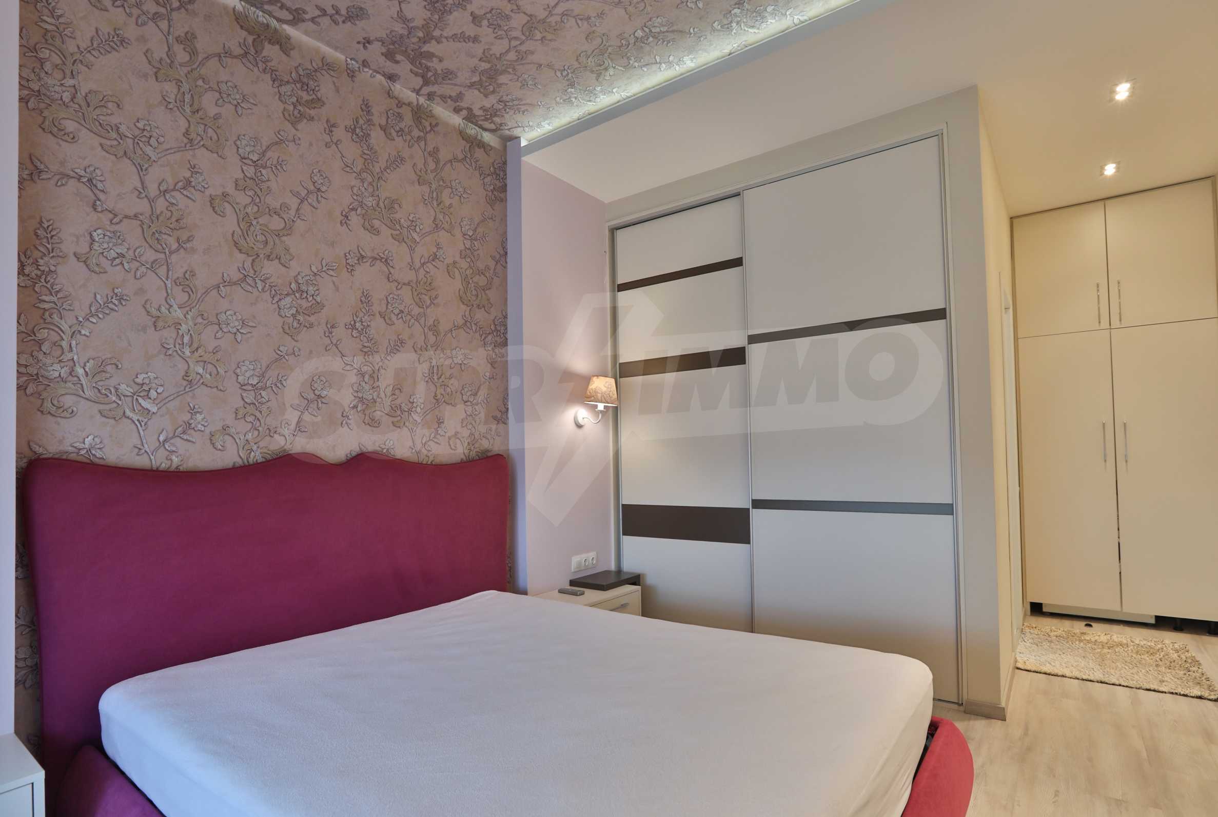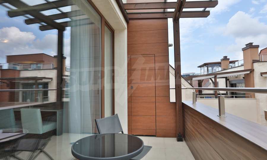 The apartment is located on the fifth floor and offers a panoramic view of the complex's park from its terrace. The apartment is stylish, with clean interior lines, with attention to detail. It is fully furnished and modern equipped with all necessary electrical appliances.