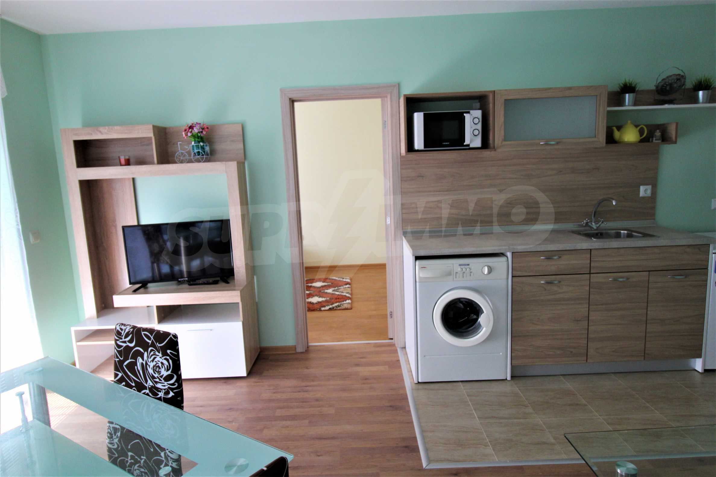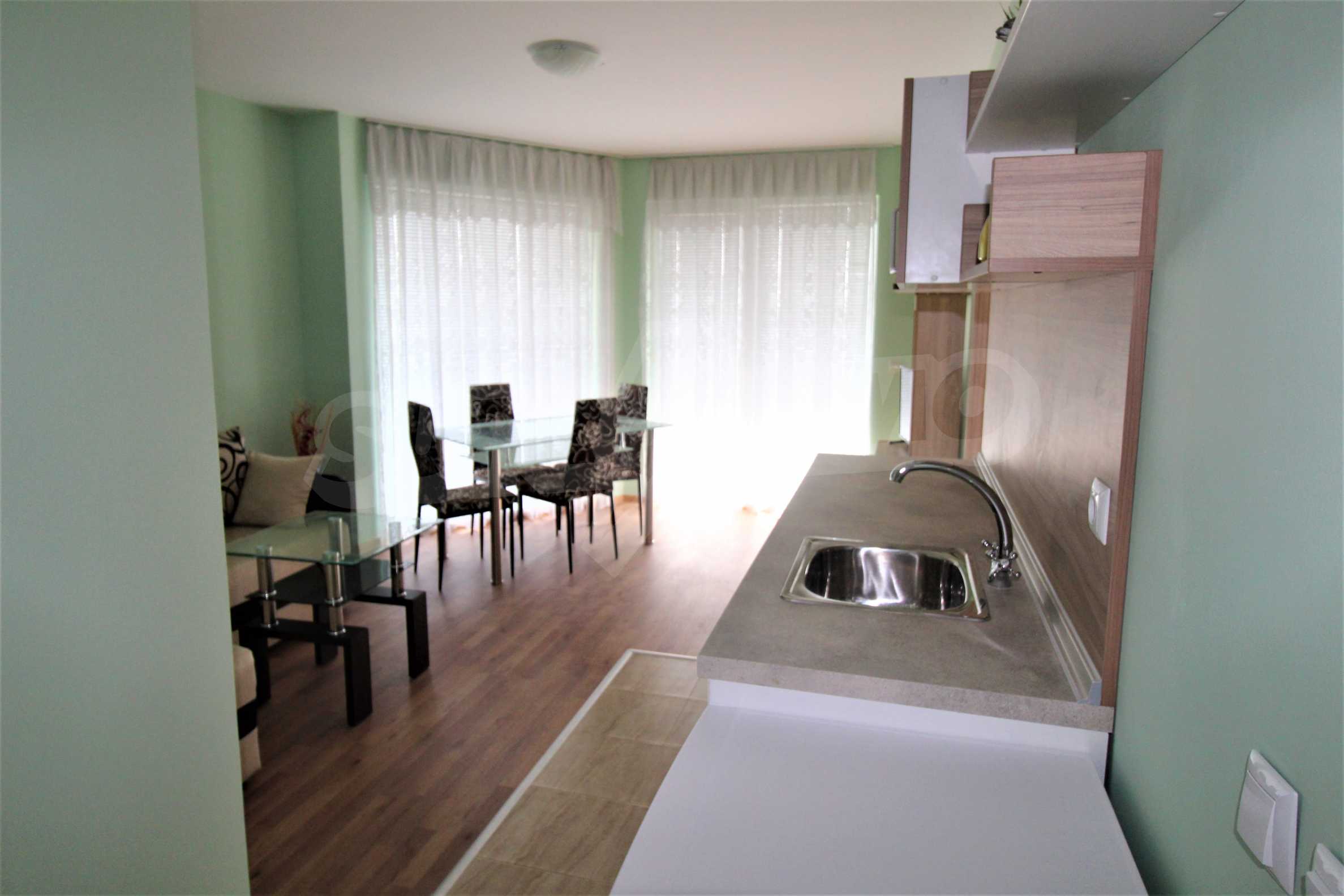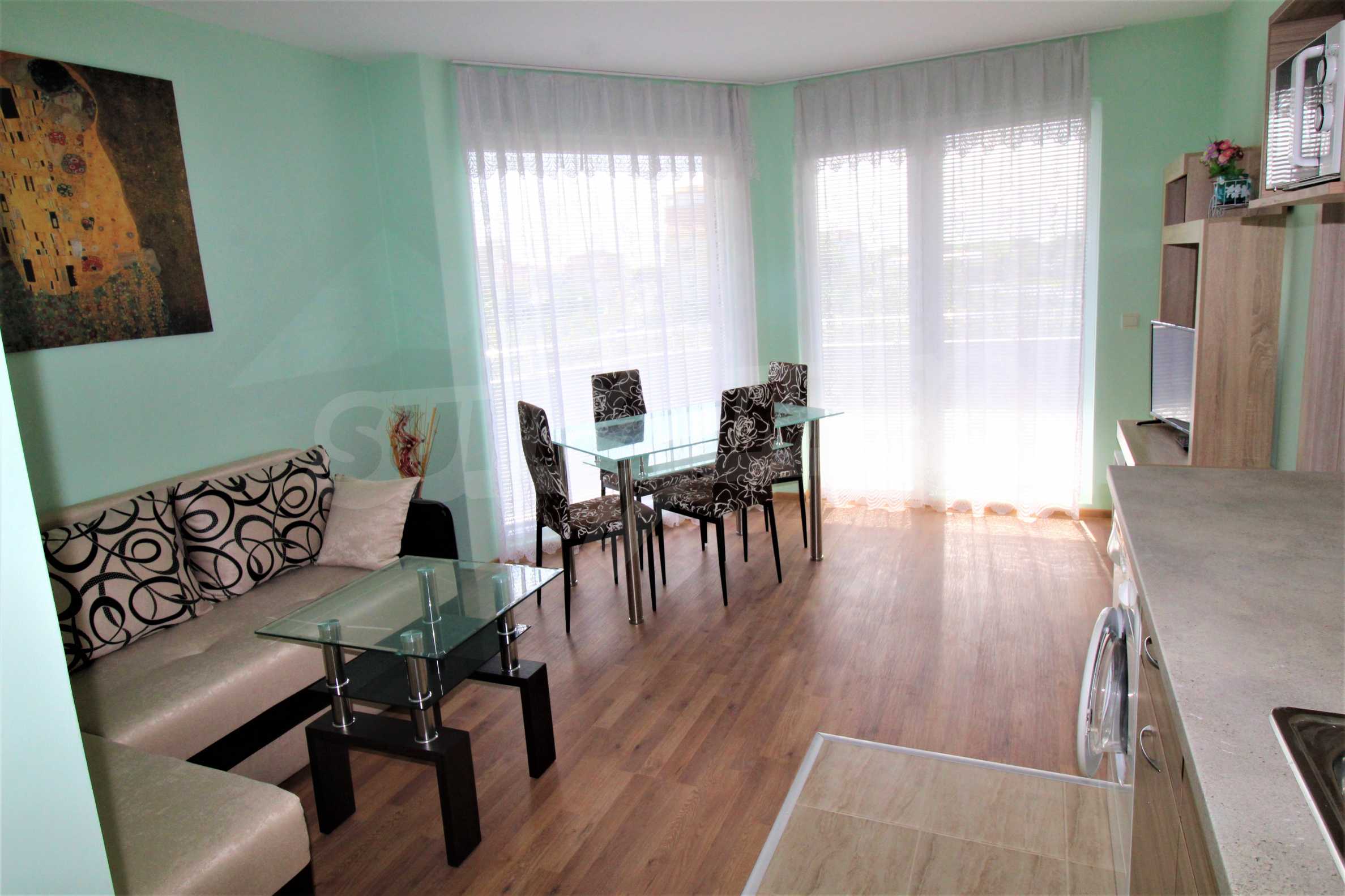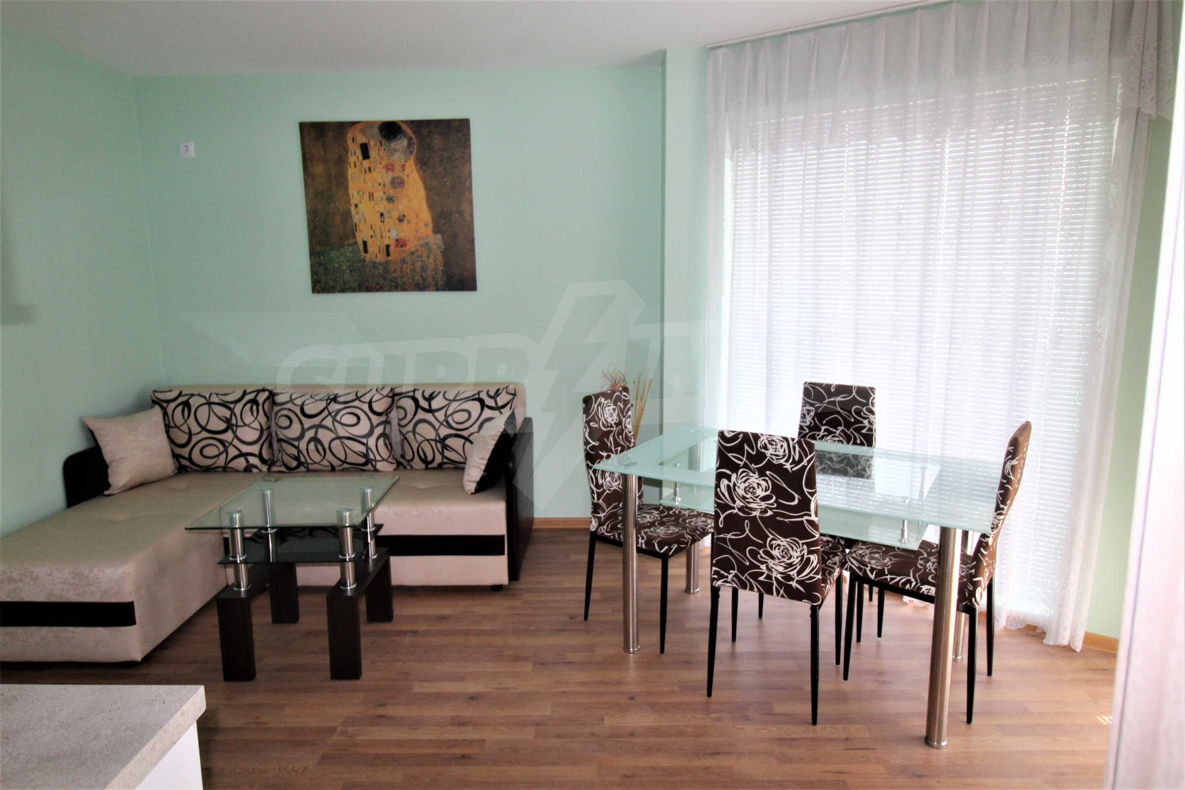 Furnished 2-bedroom apartment for sale in a residential building without maintenance fee in Ravda.