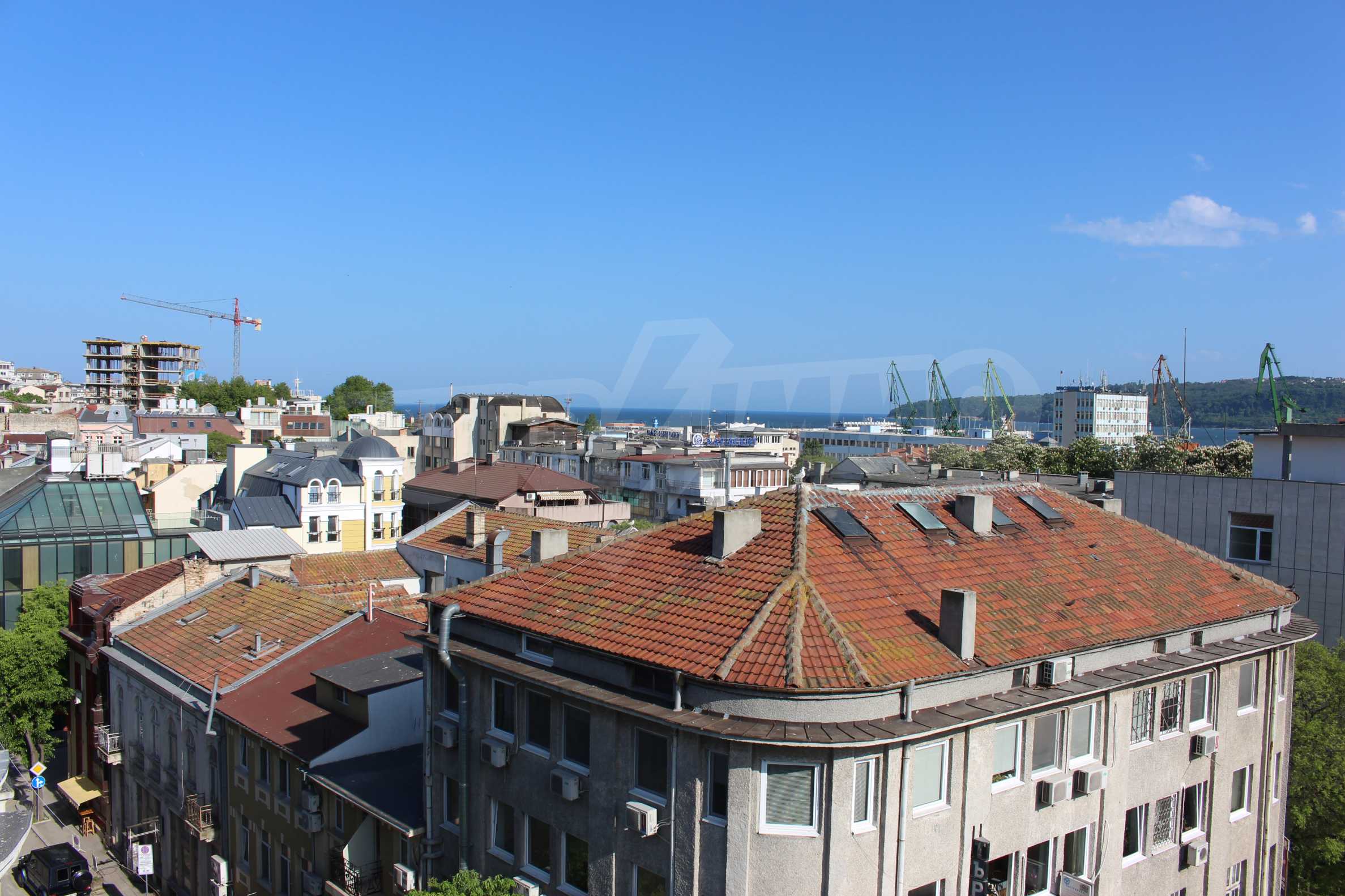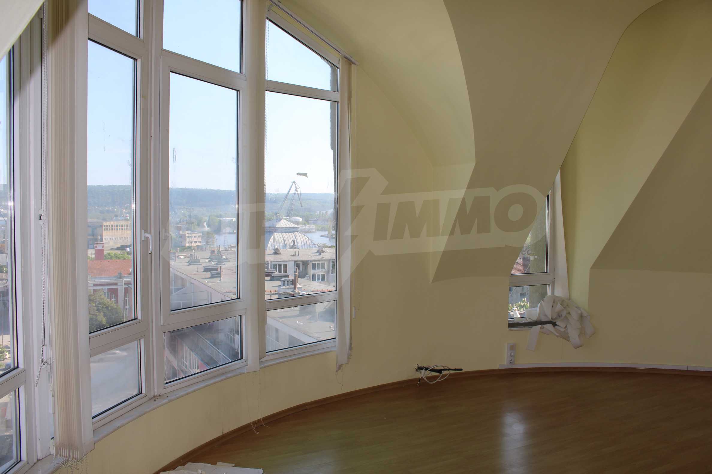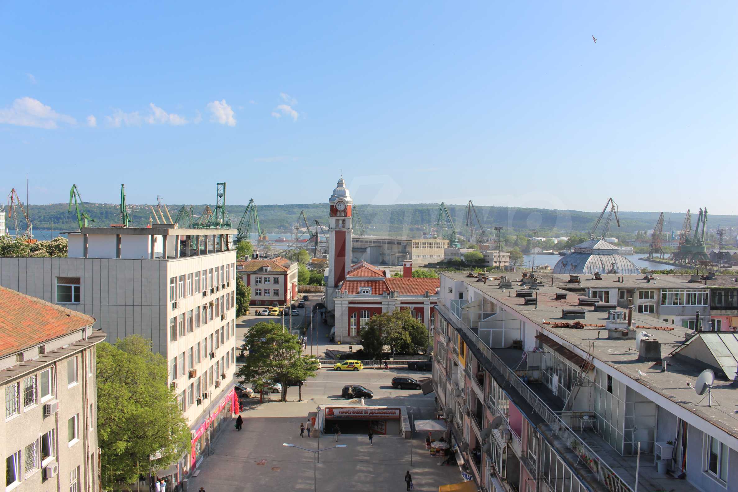 The office is on the 7th floor and can be accessed by controlled access by physical security, video surveillance and two elevators. There are two paid parking lots in the area and will help the office or employees of the office. It overlooks the Port of Varna and the bay.
