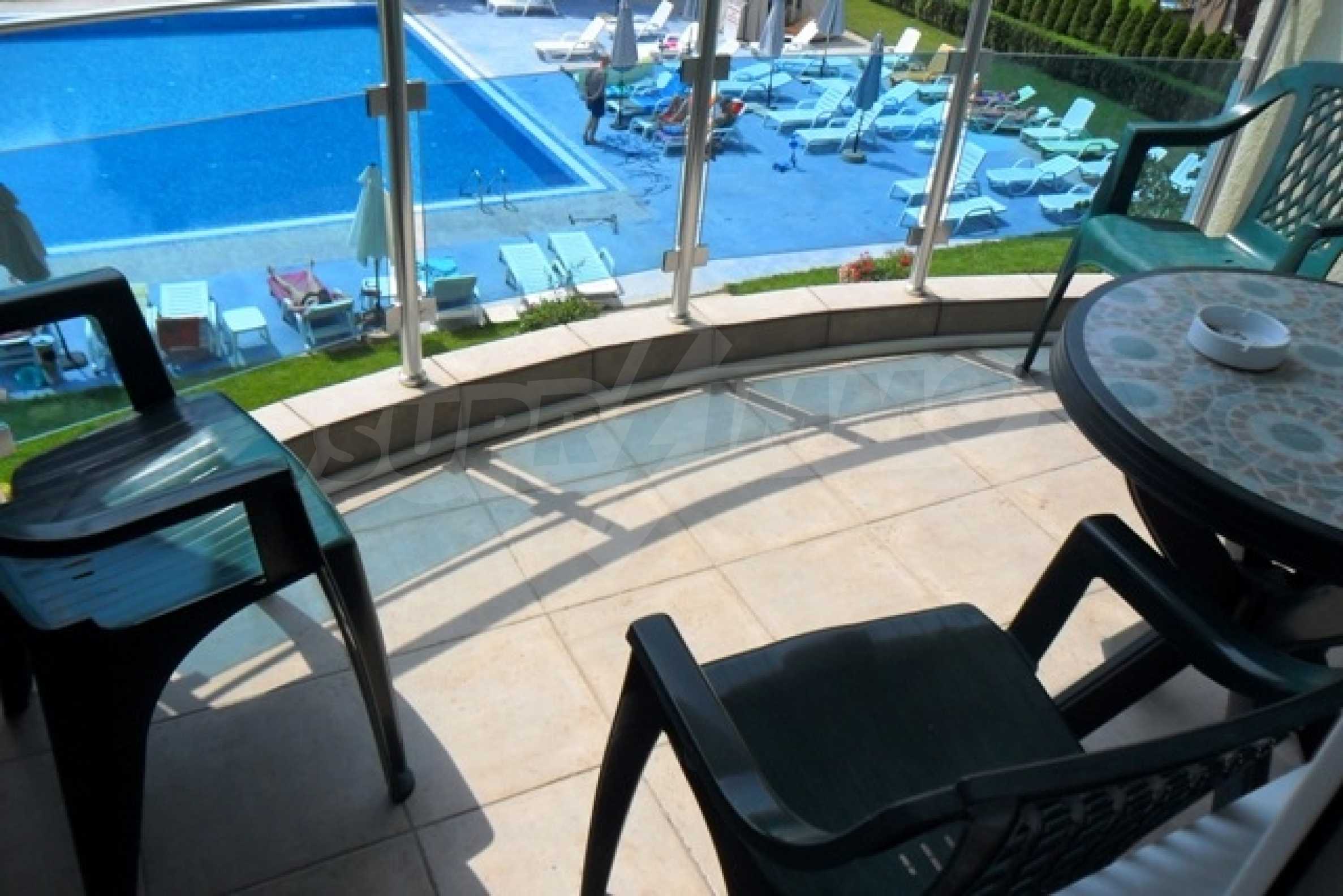 Oasis Complex is a family friendly development located in the lovely town of Ravda, a small seaside village just a few kilometres from the Historical Centre of Nessebar and Sunny Beach on the Black Sea Coast. Ravda is only 20 km from Bourgas Airport and is known as a family resort due to its relaxing atmosphere, healthy climate, fine golden sand, and clean water.  It is the ideal place for those who seek a perfect vacation. This lovely, spacious apartment is located on the third floor and has a total living area of 134 sq m. It is capable of sleeping 10 people comfortably and consists of 2 self contained single bedroom apartments linked by an internal, adjoining door. This door can be unlocked and opened to provide one large apartment where a group can holiday together or with the door closed two groups of up to five people can be accommodated totally separately.There are 2 reception rooms, 2 kitchens, 2 bedrooms and 2 bathrooms all tastefully decorated and fully furnished to a high standard. There is full air conditioning and 2 balconies with pool and sea views. This apartment offers a truly unique buying opportunity, perfect for larger groups of family or friends and such flexibility needs to be seen to be appreciated.The facilities in the complex include:Reception & 24 hr securitySwimming poolChildren's poolSpacious pool terracePlaygroundLandscaped gardensBar & restaurantFitness centre & massageParking availableWiFi availableCar hireAirport shuttleThe complex is next to the beach, about 20 m from the sea with stunning views of the beautiful sandy beaches and no roads in-between. There is a water park close by with lots of pools and water slides, a great day out for all the family. For evening entertainment there are a few traditional taverns in Ravda, a variety of bars and pubs including of course an Irish pub on the road to nearby Nessebar.A most attractive feature of Ravda is its recreation opportunities, sunbathing, for those who love to relax and for the more active there are countless facilities from diving in crystal-clear water to windsurfing and sailing along the rugged coastline.A fabulous holiday home in Bulgaria with excellent rental potential!!
