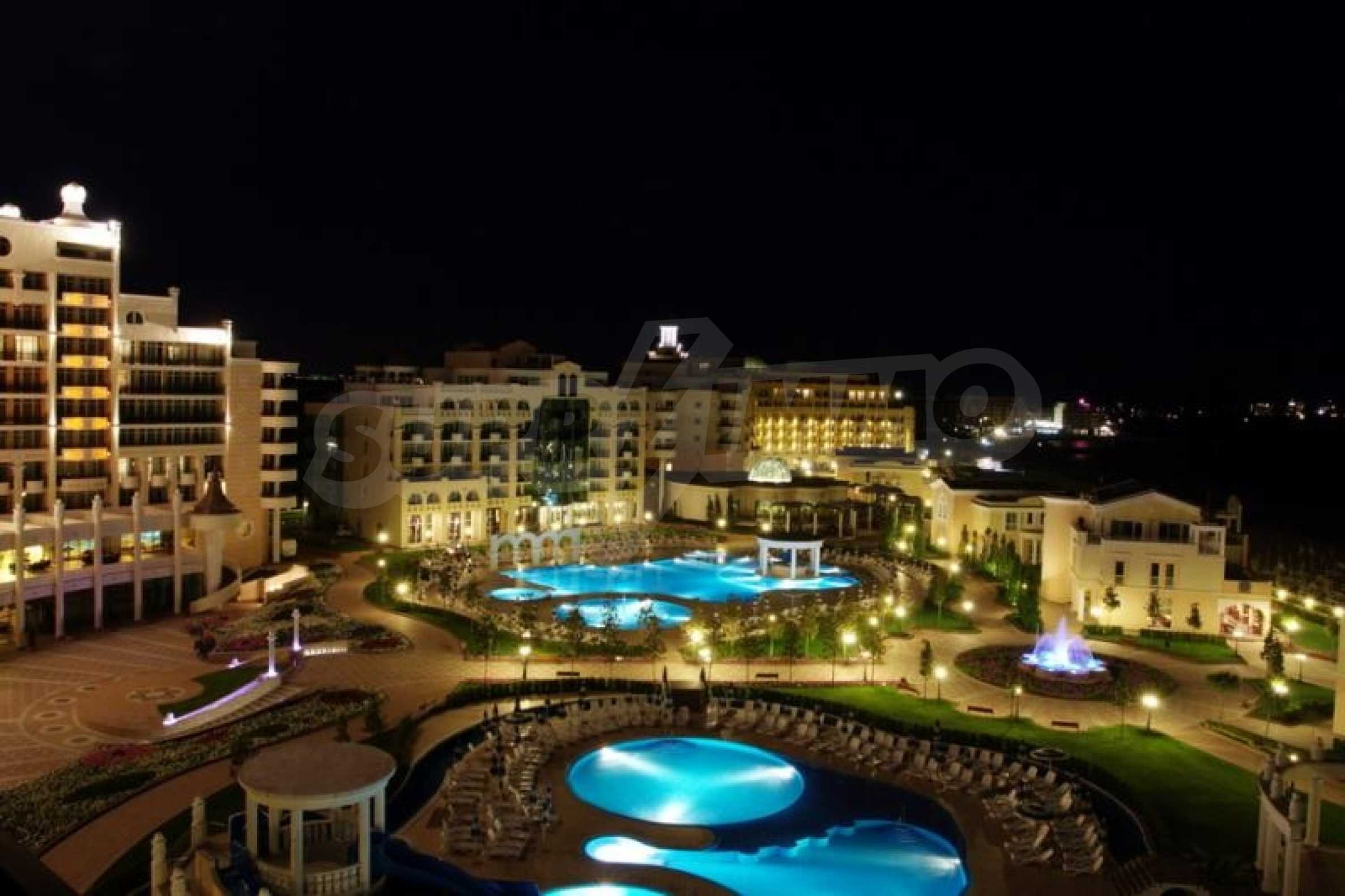 Sunset Resort is a 5* luxury complex located just outside the town of Pomorie with direct access to the beach. The complex has a spa centre and many fabulous facilities to keep everyone happy. There are 5 apartment buildings, Alpha, Beta, Sigma, Delta and Eta and each has its own reception.This apartment is on the fourth floor of Sigma Block and is tastefully decorated and furnished. There is a spacious lounge with dining area, a fully fitted kitchen, 1 double bedroom and a family bathroom. The apartment will sleep 4 people comfortably and it has a private balcony with views of the pool and the sea.The excellent facilities in the complex include: Reception & 24 hr securitySwimming pools for adults and childrenSpacious pool terraceChildren's play areaCocktail & coffee bars 5 a la carte restaurants and Grill HouseSpa centre with sauna, steam bath, massage, treatments & therapiesBeauty parlourBowling alleyPool tablesThis fabulous complex has everything you could need for a family holiday home. It is close to the large seaside resort of Sunny Beach and the ancient town of Nessebar, both accessed by the reliable bus service. Bourgas Airport is only 15 mins drive and all properties in the area have great rental potential.A great opportunity to Property in Bulgaria whether for personal use or holiday rentals!! Â