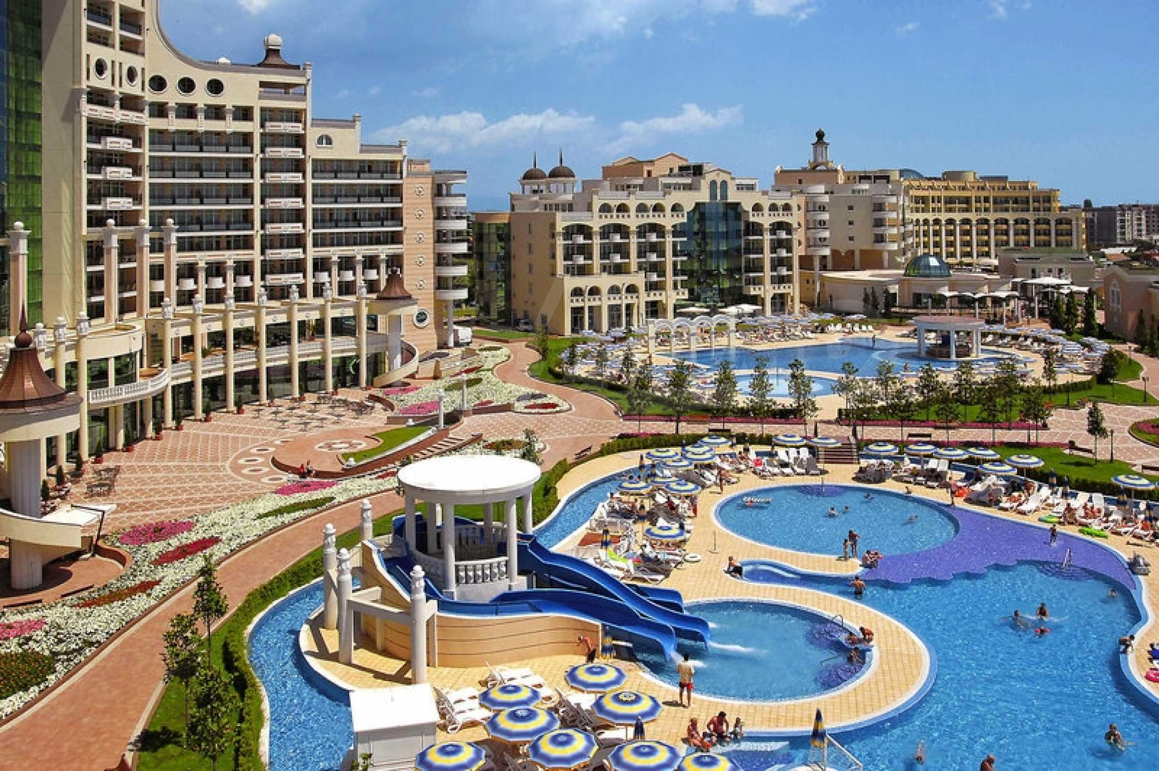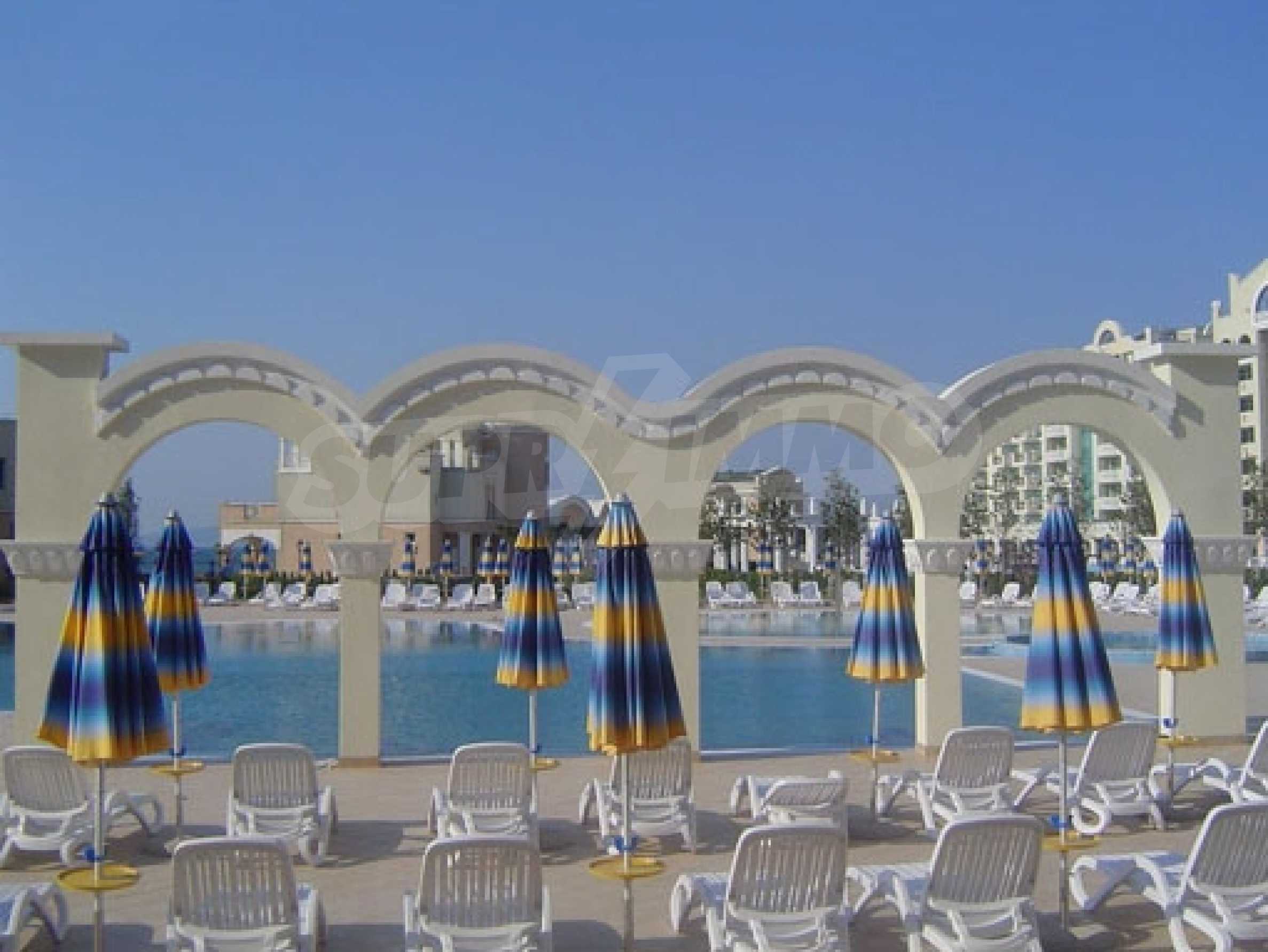 Sunset Resort is a beautiful 5* complex located on the outskirts of Pomorie with direct access to the beach. The complex has fabulous facilities for all the family and it is made up of 5 apartment buildings, each with its own reception.The apartment on offer is in Alpha Block on the second floor and is fully furnished ready to move into. It comprises a lounge, dining area, fitted kitchen, 1 double bedroom, a family bathroom and a balcony with views of the gardens and partial views of the sea. It will sleep 4 people comfortably.The fantastic facilities on site include: Reception & 24 hr securitySwimming pools for adults and childrenSpacious pool terraceChildren's play areaCocktail & coffee bars 5 a la carte restaurants and Grill HouseSpa centre with sauna, steam bath, massage, treatments & therapiesBeauty parlourBowling alleyPool tablesThe Sunset Resort is close to the popular resort of Sunny Beach and the ancient town of Nessebar and there is a reliable bus service travelling regularly to the other resorts. It is only 15 mins from Bourgas Airport making a great family holiday home.An excellent Bulgarian property with great rental potential!! Â