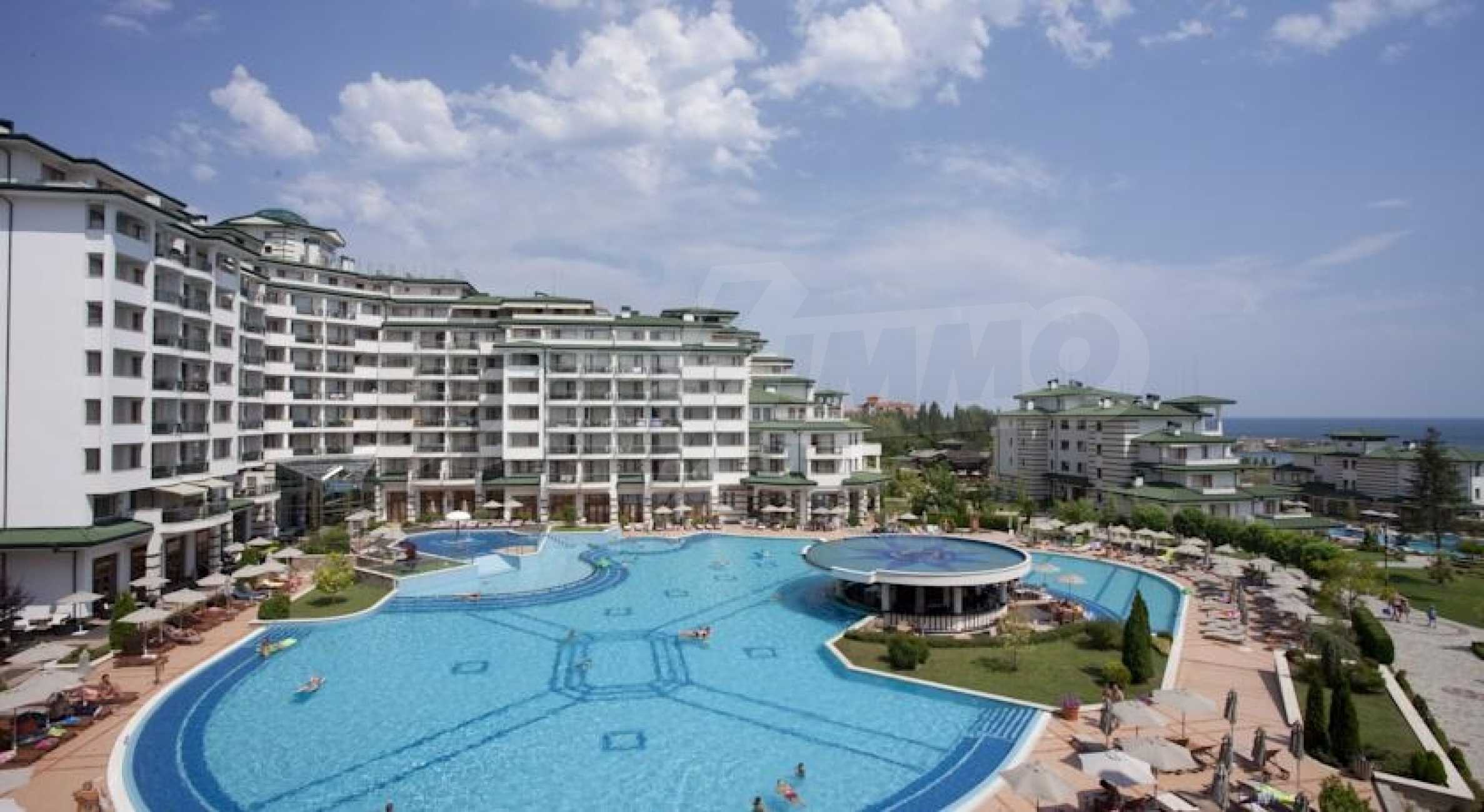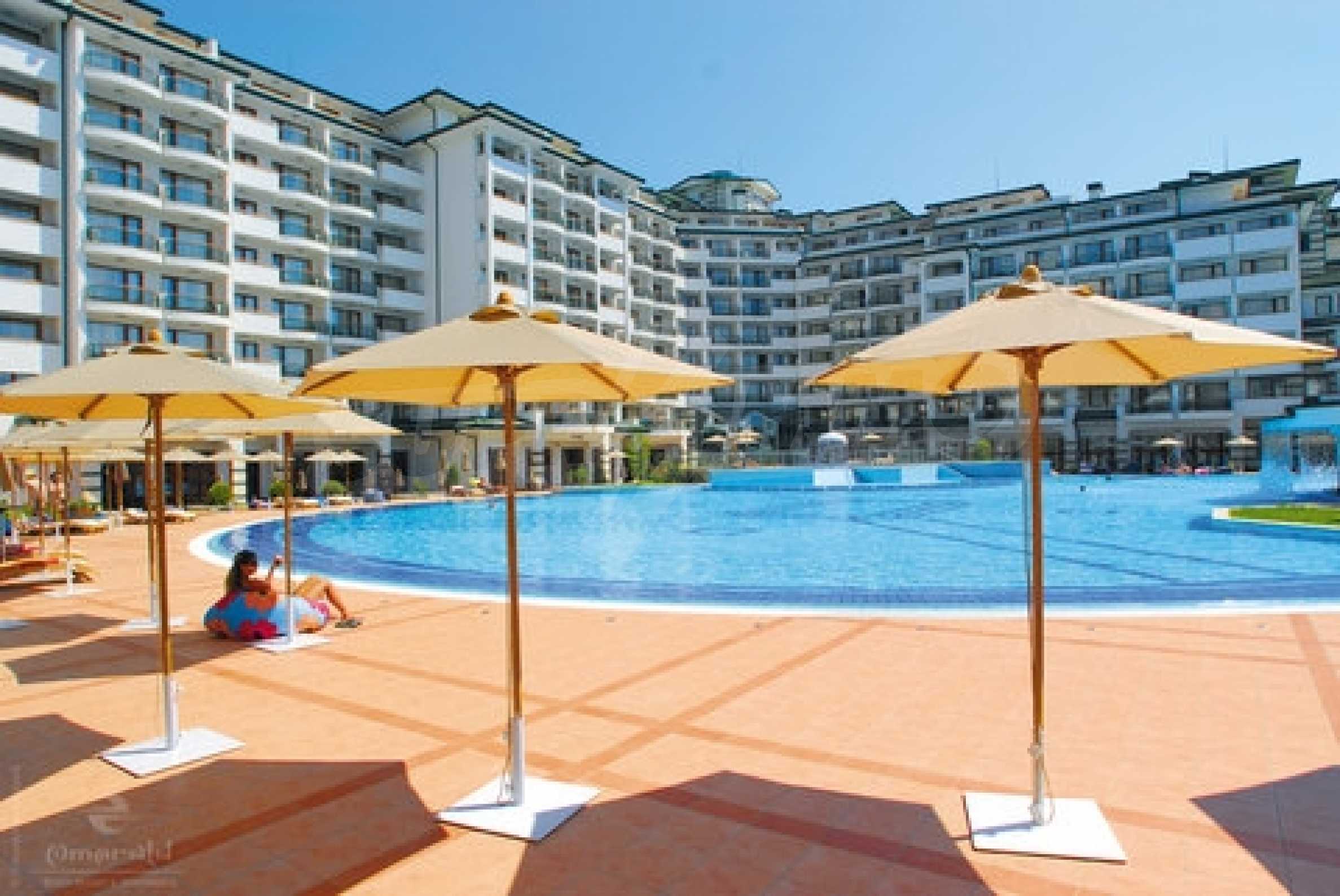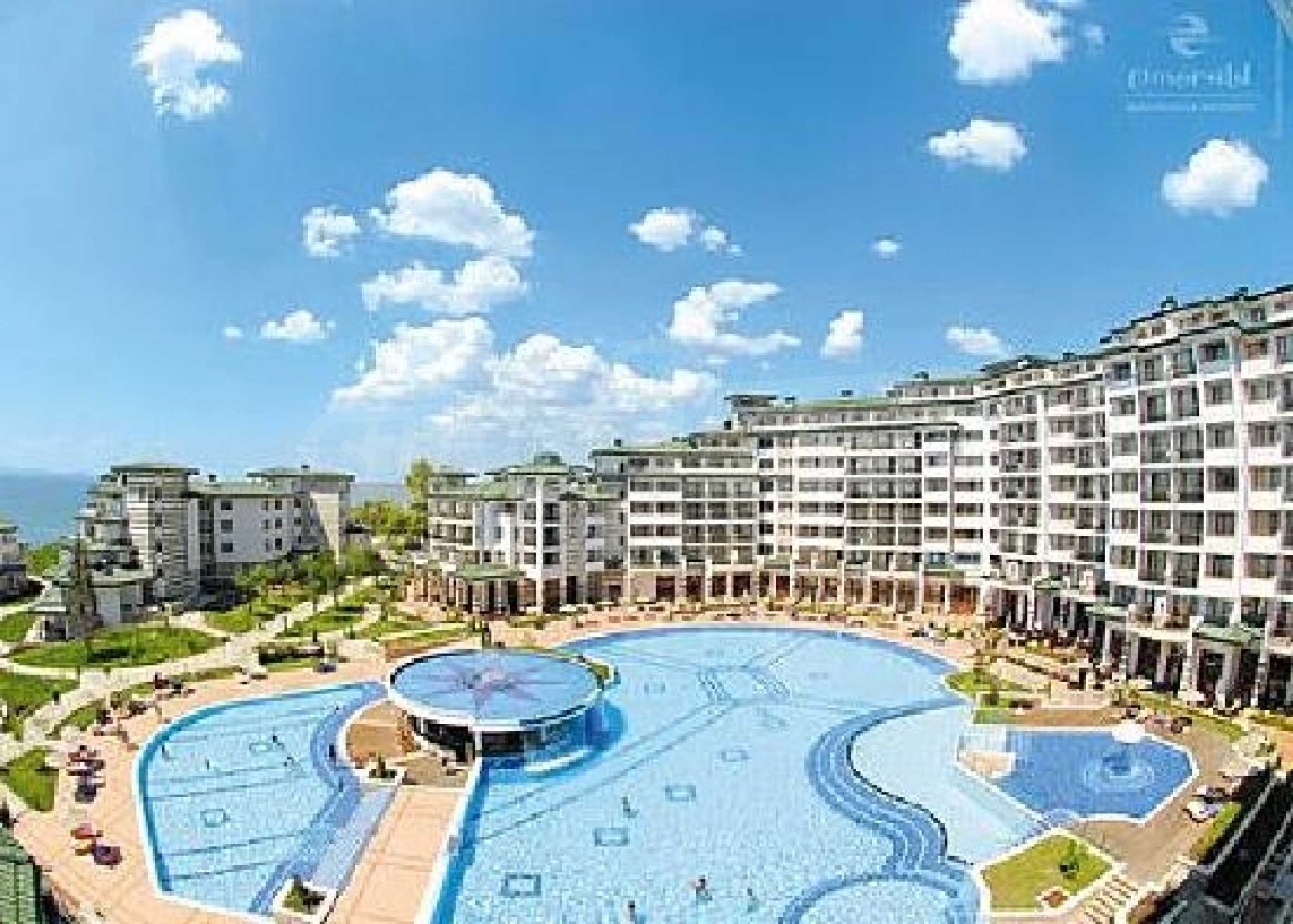 Emerald Beach Resort & Spa is a magnificent complex situated in Ravda on the Black Sea Coast. The complex has five independent buildings surrounded by beautiful landscaped gardens and great facilities for owners. There is a park beside it and the complex is also right next to the golden sandy beach.On offer is a stunning 2 bedroom apartment with highly sought after pool and sea views. It comprises a spacious lounge with dining area and a fully fitted kitchen. There are 2 bedrooms, 2 bathrooms and a private balcony.Restaurants & Bars The Queen of Asia Restaurant is the main restaurant of the complex and serves a variety of cuisines in separate dining rooms and is adjoined by a Coffee Bar.Drake's Grill Bar is situated in the garden of the complex and offers you a large selection of tasty food, drinks and cocktails.Magellan's Grill Bar has a beautiful sea view, next to a swimming pool. The bar serves fresh fish or meat dishes for lunch or dinner, and a variety of small snack between mealsNemo's Pool Bar is by the Blue Lagoon swimming pool. This swim-in and dry-seat bar offers cool drinks and exotic refreshmentsRaffles Bar has a rich wine selection, the best beers from the worlds most famous breweries, infinite choice of spirits, rare cocktails, and exclusive refreshments in an exotic South-eastern atmosphereOpen Sea Piano Bar boasts marvellous views of the Black Sea and of the Old city of Nessebar.Outdoor Swimming AttractionsThis is the largest water facility of its kind in Bulgaria totalling 2,500 square metres featuring a unique design and the latest technology. The complex consists of:3 independent heated swimming poolsThe Blue Lagoon with water cascades, rocks and shelves, emerald sparkling water. A place for sunbathing in the shallow water and a challenge for swim and sportKid's pool a place for our youngest guests, situated in the Mowglis Corner. A fun spot for an endless gameHorizon a family swimming pool facing the sea and the beautiful beachMowgli's Corner a playground with a swimming pool of its own, providing entertainment and animation for children perfect for families, who like to enjoy their holiday, without having to worry about their children’s fun and safetyGarden of Youth Wellness Centre providing relaxing and recreating facilities infrared sauna, massage, solarium, therapeutic massage, and more. Modern gym and fitness facilities, tennis room and billiard tables, with a Fresh Bar on its territory.Other Facilities includeBowling alley a full size professional BowlingTennis Courts24/7 Medical Service24/7 SecurityShops and BoutiquesUnderground parking for 80 carsConvenient outdoor parkingRavda is less than 25 km from Bourgas Airport and only 5 km from Sunny Beach. It is known as a family resort due to its relaxing atmosphere, healthy climate, fine golden sand, and clean water.  It is the ideal place for those who seek a perfect vacation. This luxury Bulgarian apartment meets the requirements of the leading tour operators and has fabulous potential for holiday rentals.