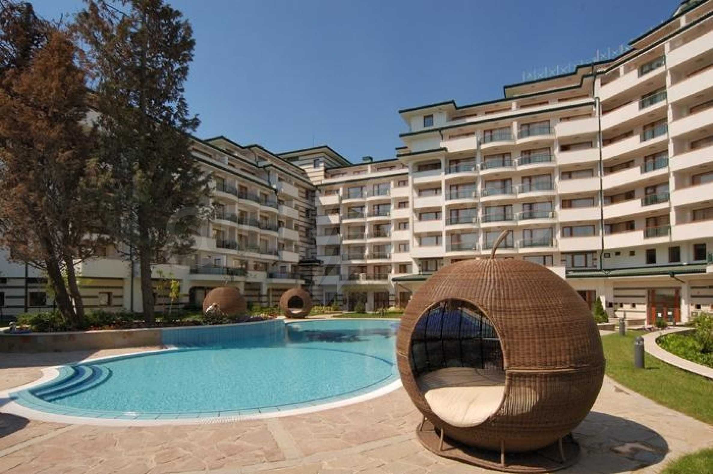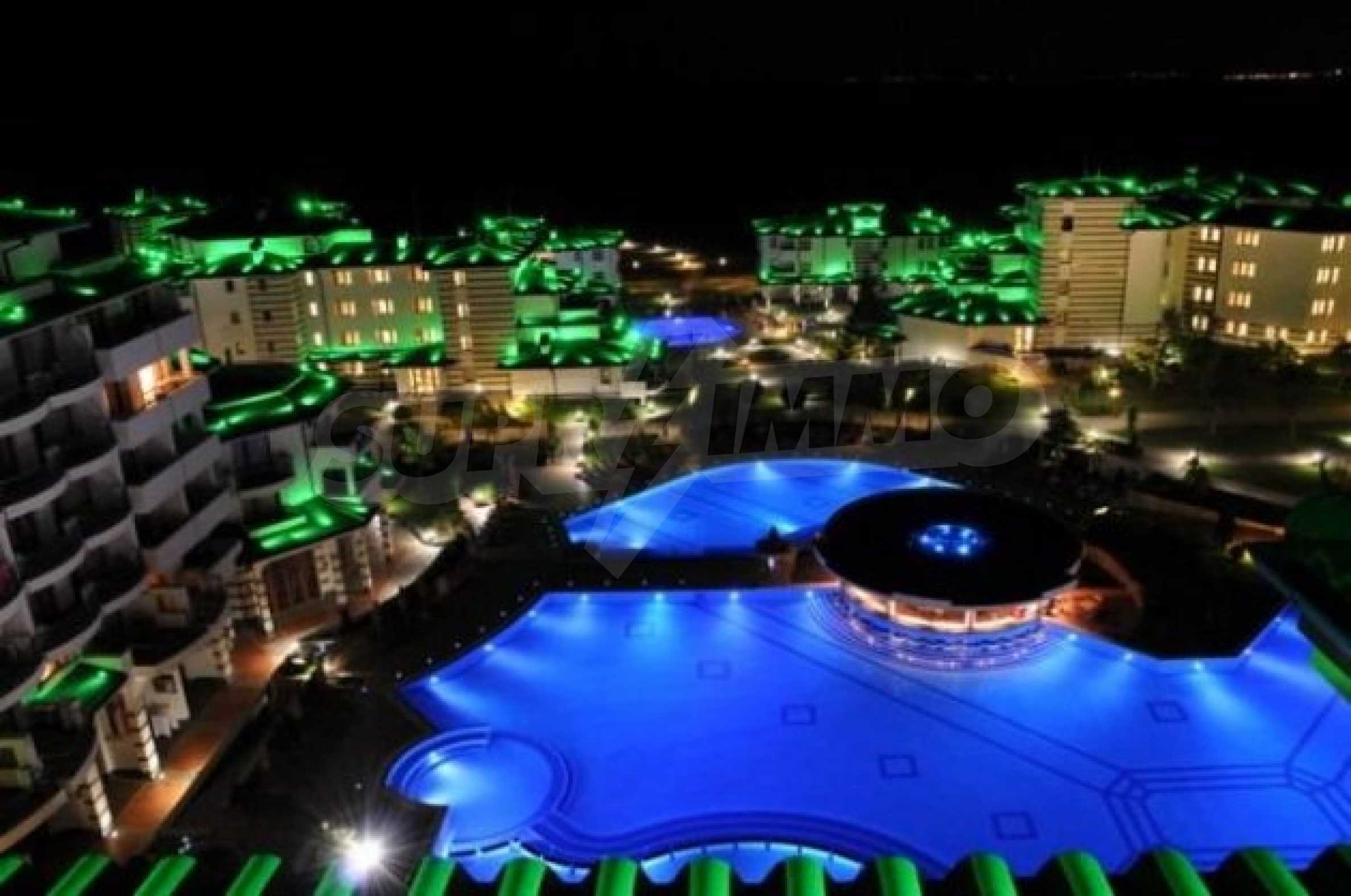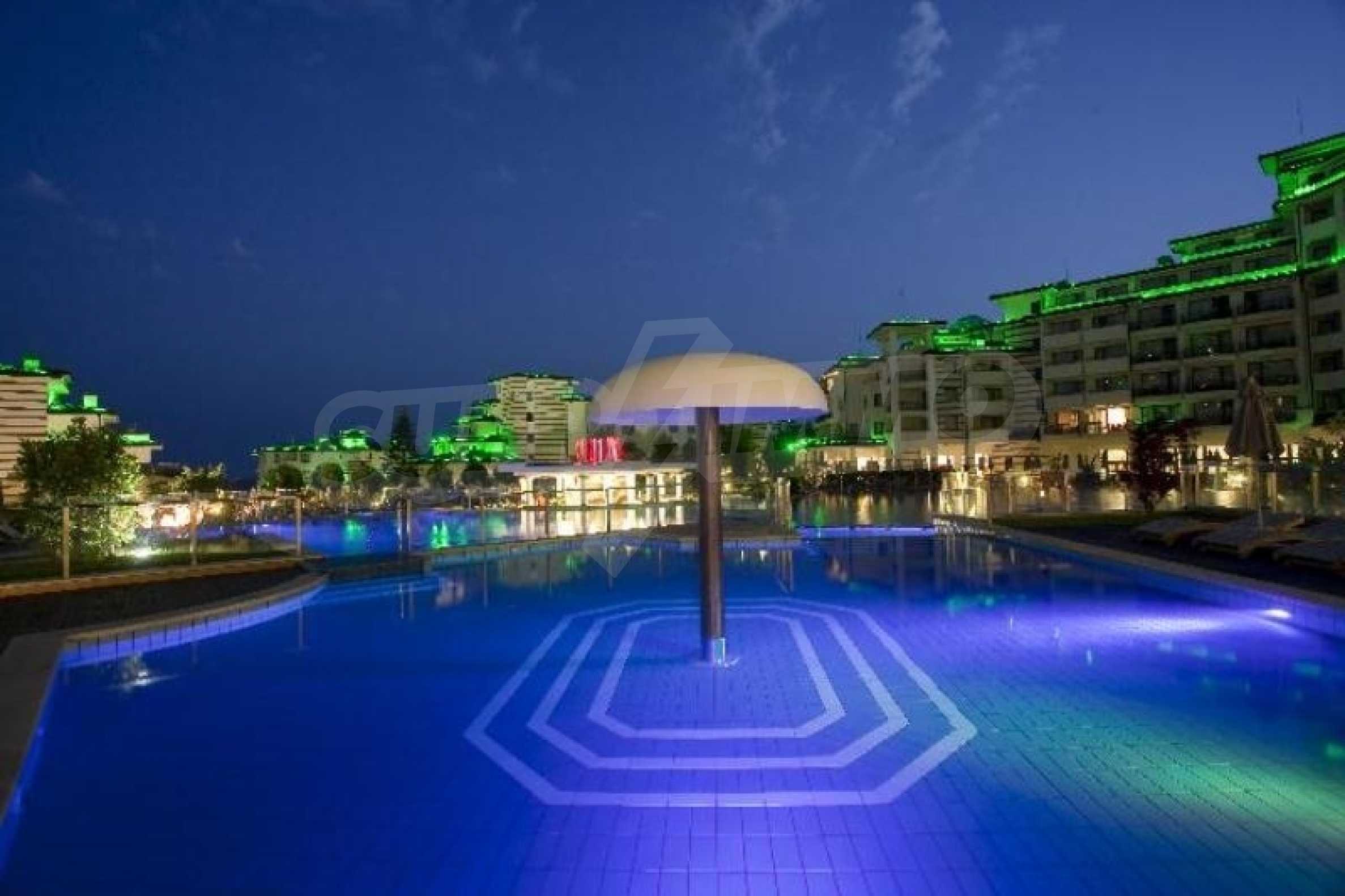 Emerald Beach Resort & Spa is a magnificent complex situated in Ravda on the Black Sea Coast. The complex has five independent buildings surrounded by beautiful landscaped gardens and great facilities for owners. There is a park beside it and the complex is also right next to the golden sandy beach.On offer is a stunning 2 bedroom apartment with highly sought after pool and sea views. It comprises a spacious lounge with dining area and a fully fitted kitchen. There are 2 bedrooms, 2 bathrooms and a private balcony.Restaurants & Bars The Queen of Asia Restaurant is the main restaurant of the complex and serves a variety of cuisines in separate dining rooms and is adjoined by a Coffee Bar.Drake's Grill Bar is situated in the garden of the complex and offers you a large selection of tasty food, drinks and cocktails.Magellan's Grill Bar has a beautiful sea view, next to a swimming pool. The bar serves fresh fish or meat dishes for lunch or dinner, and a variety of small snack between mealsNemo's Pool Bar is by the Blue Lagoon swimming pool. This swim-in and dry-seat bar offers cool drinks and exotic refreshmentsRaffles Bar has a rich wine selection, the best beers from the worlds most famous breweries, infinite choice of spirits, rare cocktails, and exclusive refreshments in an exotic South-eastern atmosphereOpen Sea Piano Bar boasts marvellous views of the Black Sea and of the Old city of Nessebar.Outdoor Swimming AttractionsThis is the largest water facility of its kind in Bulgaria totalling 2,500 square metres featuring a unique design and the latest technology. The complex consists of:3 independent heated swimming poolsThe Blue Lagoon with water cascades, rocks and shelves, emerald sparkling water. A place for sunbathing in the shallow water and a challenge for swim and sportKid's pool a place for our youngest guests, situated in the Mowglis Corner. A fun spot for an endless gameHorizon a family swimming pool facing the sea and the beautiful beachMowgli's Corner a playground with a swimming pool of its own, providing entertainment and animation for children perfect for families, who like to enjoy their holiday, without having to worry about their children’s fun and safetyGarden of Youth Wellness Centre providing relaxing and recreating facilities infrared sauna, massage, solarium, therapeutic massage, and more. Modern gym and fitness facilities, tennis room and billiard tables, with a Fresh Bar on its territory.Other Facilities includeBowling alley a full size professional BowlingTennis Courts24/7 Medical Service24/7 SecurityShops and BoutiquesUnderground parking for 80 carsConvenient outdoor parkingRavda is less than 25 km from Bourgas Airport and only 5 km from Sunny Beach. It is known as a family resort due to its relaxing atmosphere, healthy climate, fine golden sand, and clean water.  It is the ideal place for those who seek a perfect vacation. This luxury Bulgarian apartment meets the requirements of the leading tour operators and has fabulous potential for holiday rentals.