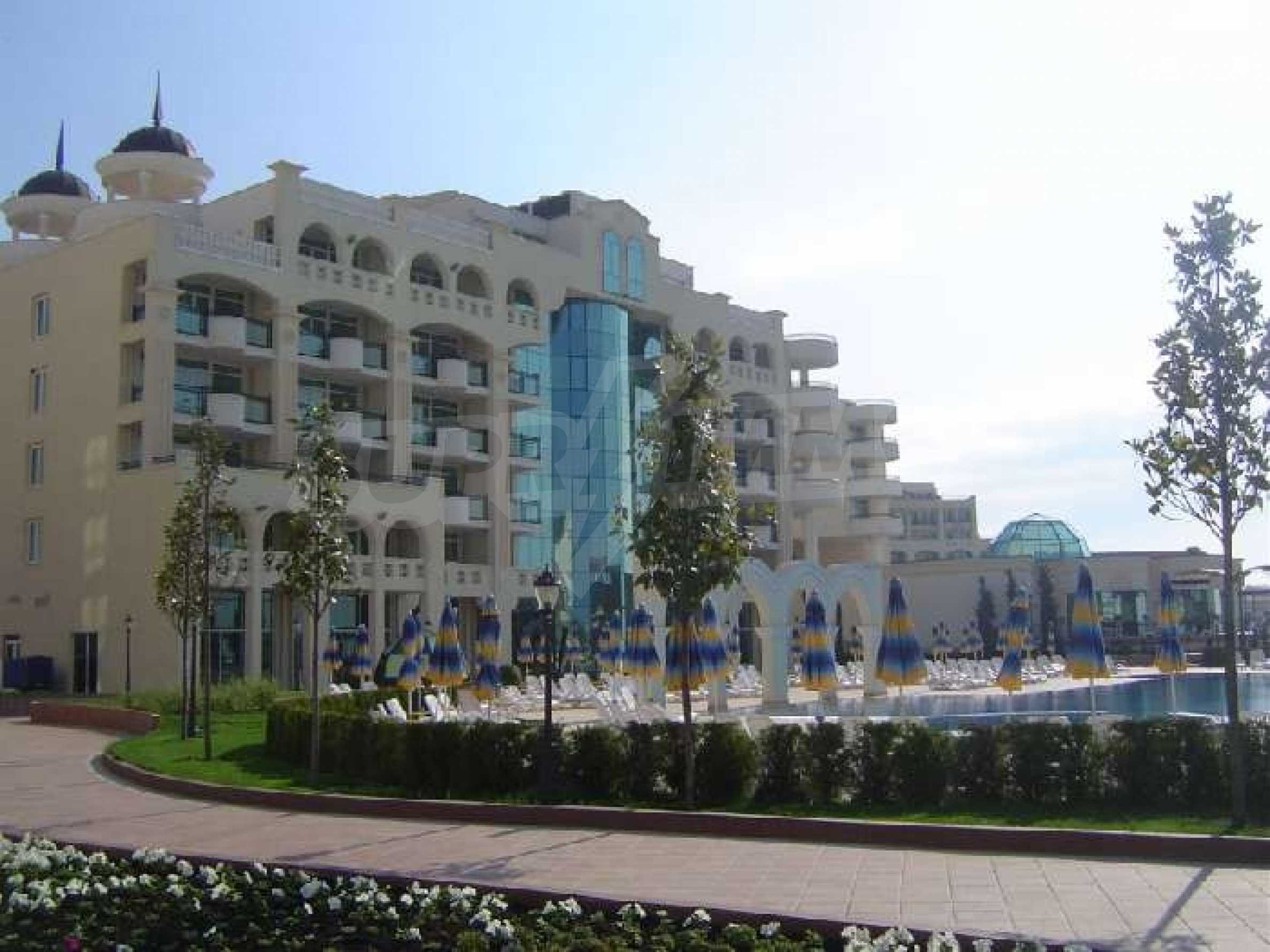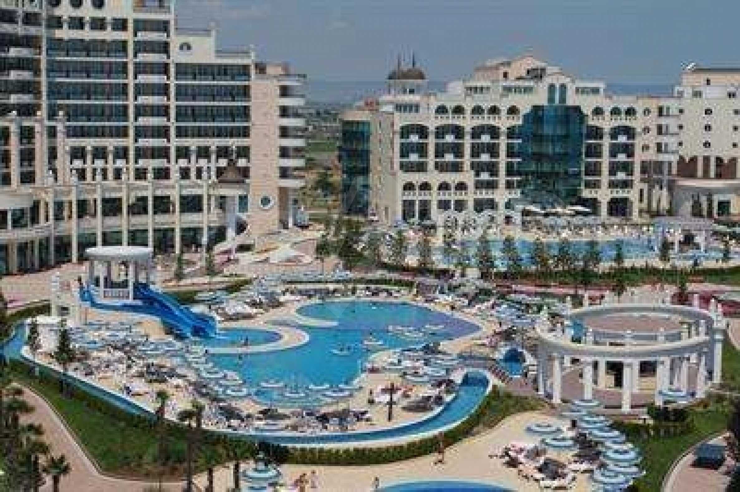 Sunset Resort is a 5* resort located at the newer end of Pomorie, on a lovely, quiet gulf. This is a popular holiday complex built with direct access to 400 m to a long, golden, sandy beach on the Black Sea coast. The complex consists of villas and 5 apartment blocks Alpha, Beta, Sigma, Delta and Eta each with their own reception.Property on offerThe apartment is 80 sq m and is located on the first floor. It contains:  Entrance hallwayLiving dining Kitchen Double bedroomBathroom Terrace with balconyAmenities Reception & 24 hr securityTwo pool bars5 a la carte restaurants Massage & treatments availableBeauty salonBowling alleyPool tablesSwimming pools for adults & childrenSpacious pool terraceChildren's play areaCocktail & coffee bars 5 a la carte restaurants and Grill HouseSpa centre with sauna & steam bathThis beautiful complex is close to all amenities in the town including shops, bars and restaurants. A short drive will take you to Sunny Beach Resort where you will find a wider variety of amenities plus excellent  nightlife.  A good complex to have a holiday home for personal use or the rental market!!Â