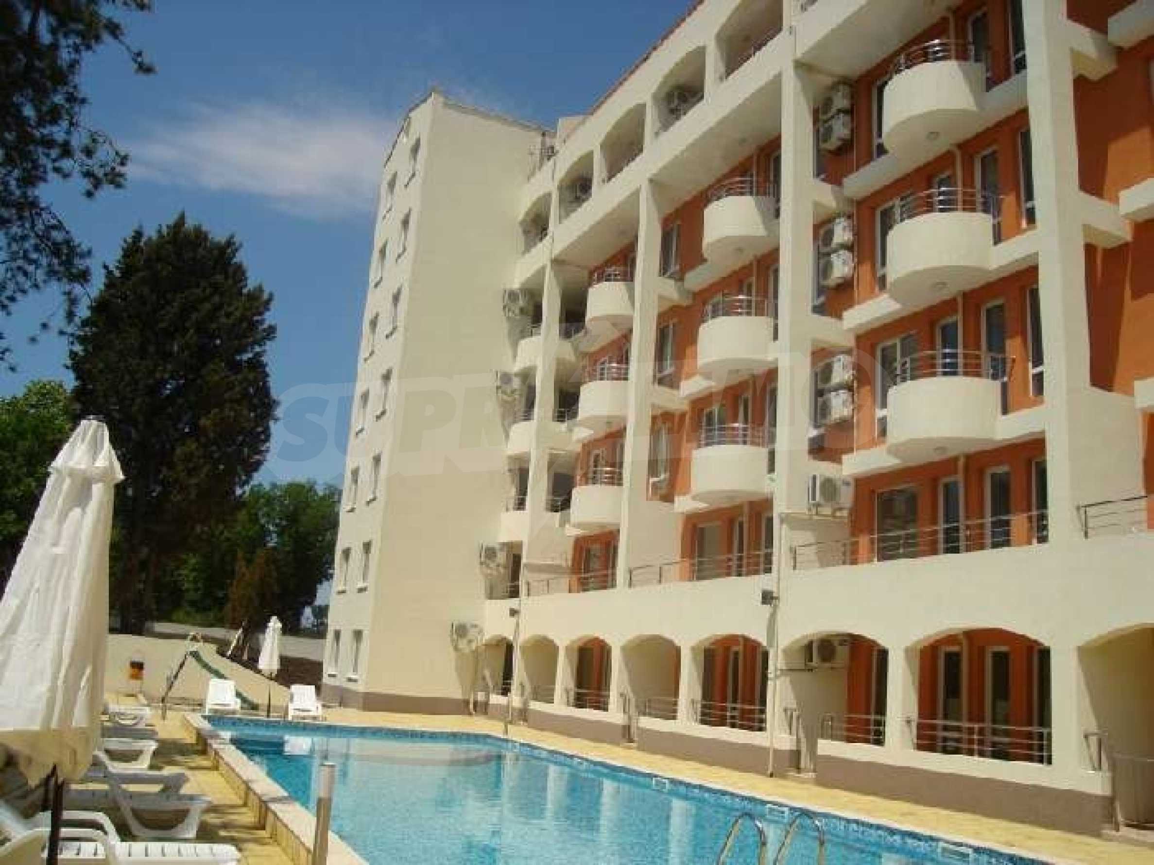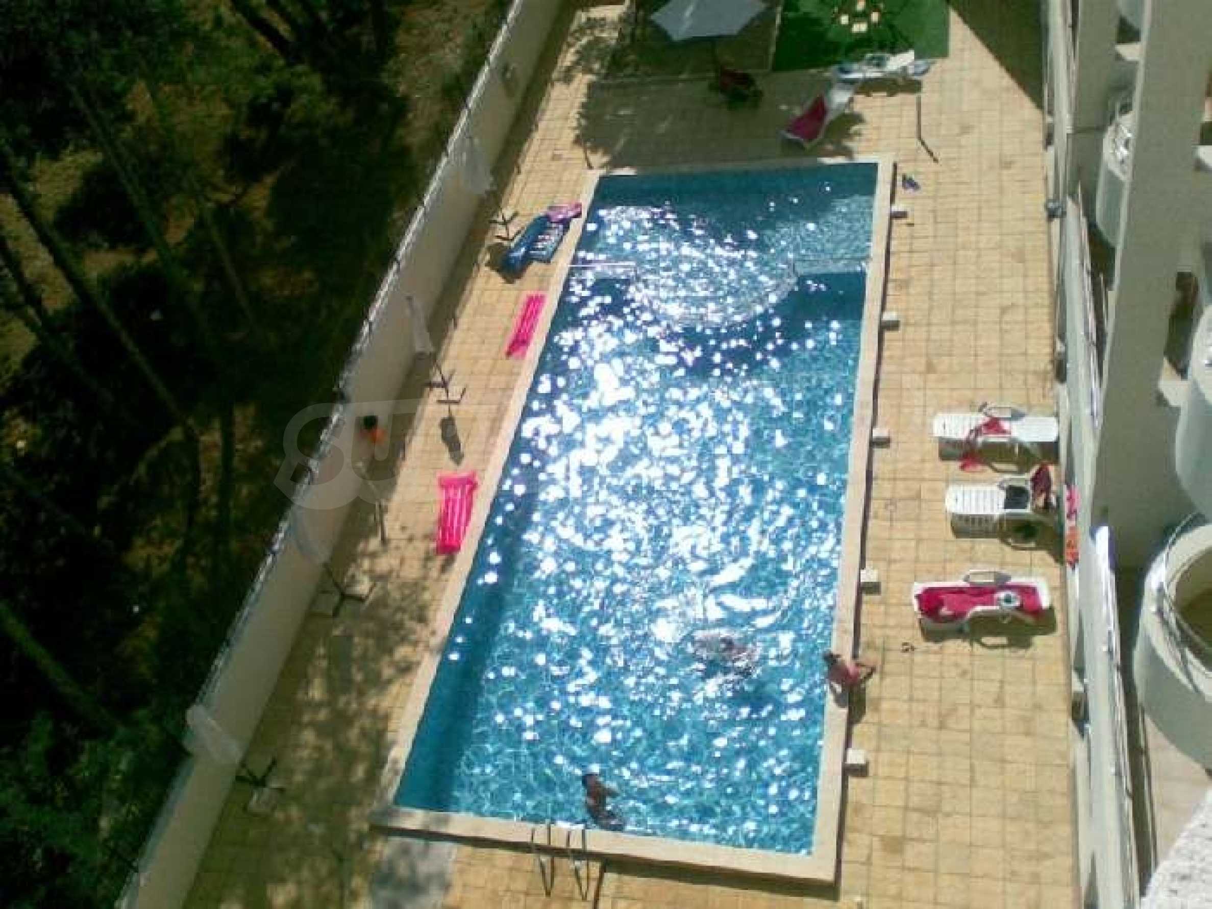 Small, family orientated complex beside town & beach Pomorie Beach Resort is a 4* family holiday destination located close to the town centre of Pomorie and only 150 m from the beautiful beach. The complex has 126 apartments and 11 offices and is set in a peaceful and very modern area of Pomorie with restaurants and bars close by.This apartment is on the top floor and comprises a large lounge with dining area, a kitchen fitted with high and low-level units, 1 double bedroom and a fully fitted and tiled bathroom. The apartment has not yet been furnished although it does include air conditioning, PVC windows, a water heater and an extractor fan. The facilities include:24 hr securitySwimming poolSpacious pool terraceChildren's play areaCafeElevatorGarage with room for 40 carsThe popular beach has many activities available and there are many shops, supermarkets, restaurants, cafes, bars and cocktail bars in the area. Sunny Beach is only a short drive away and it is the largest holiday resort on the Black Sea Coast.A fantastic apartment with marvellous sea views, a great investment opportunity for a family with excellent rental potential!! , Small, family orientated complex beside town & beach