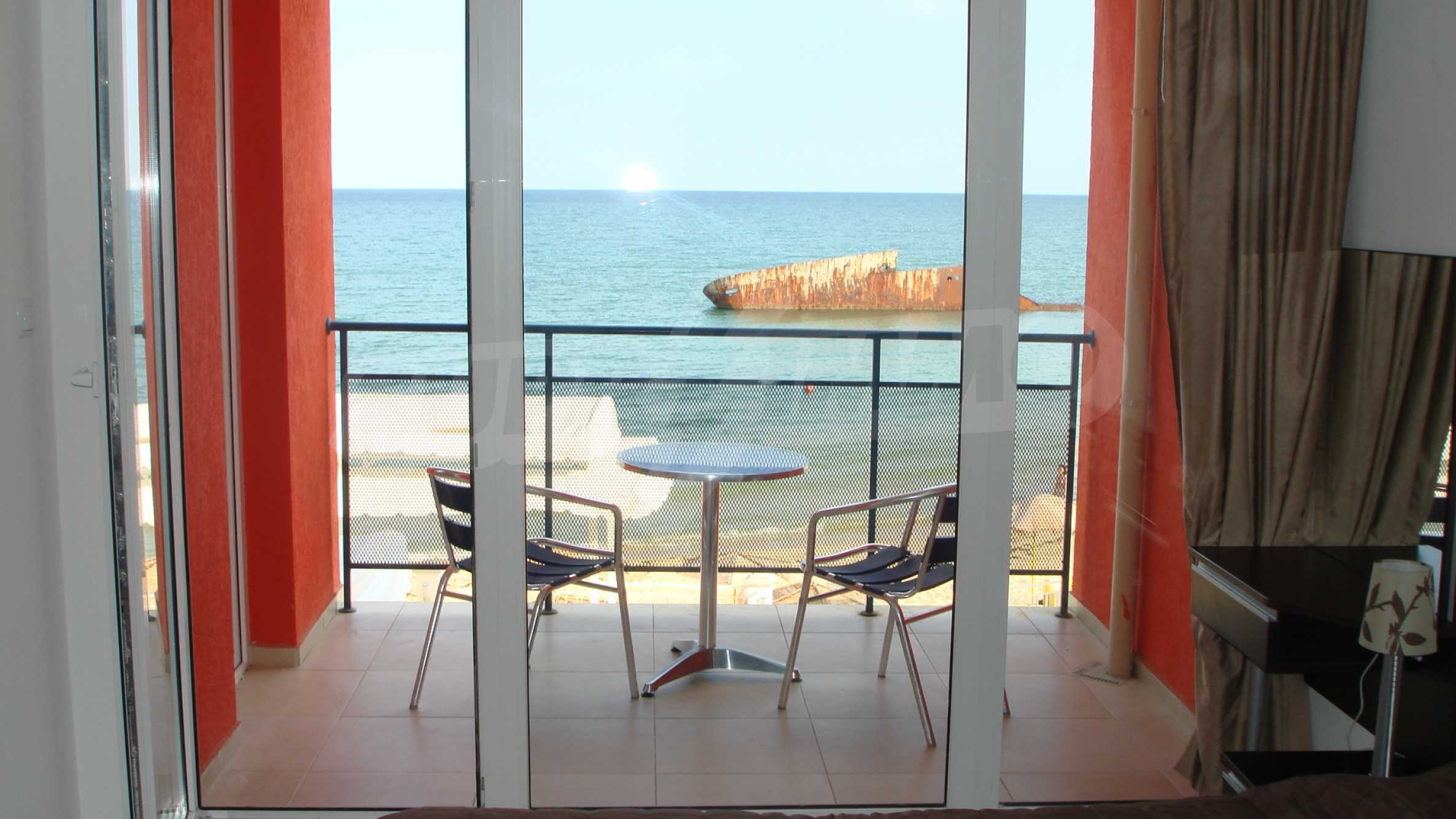 2 Apartments - Front Line on the Sea!! For Sale Together or Separately!! There are two apartments on offer in a small complex in the lovely town of Ravda. The block has just 18 units in a friendly building directly on the sea front. There are spectacular views overlooking the sandy beach and the Black Sea Coast.The two apartments can be bought together or separately and both include of an open plan lounge with dining area and a fully fitted kitchen. They both have one bedroom, a family bathroom and good sized balconies. They are fully furnished and all is finished to a high specification.All furnishings are included in the sale including the kitchens equipped with electrical appliances, accessories and utensils, TV and DVD players. The sofa beds and chair beds make it possible to sleep 5 people in each apartment and both properties have air conditioning all through.Price per Apartment: 89,000 euroThe other apartments in the building are owned mostly by English people and the owners talk with each other via email on a regular basis. There is a management company and a bank account is set up for payments such as maintenance etc.; the maintenance cost for one apartment per year is 250 euros.A most beautiful feature of Ravda is its recreation opportunities. The beach in front of the apartments has a lifeguard on duty and there are water sports close by. The area is ideal for sunbathing, for those who adore relaxing and for the more active there are countless facilities from diving in crystal-clear water, windsurfing in the light breeze and sailing along the rugged coastline.Ravda is less than 25 km from Bourgas Airport and is a known as a family resort due to its relaxing ambiance, healthy climate, fine golden sand and clean water. It is the perfect place for those who seek an ideal holiday home!! , 2 Apartments - Front Line on the Sea!! For Sale Together or Separately!!