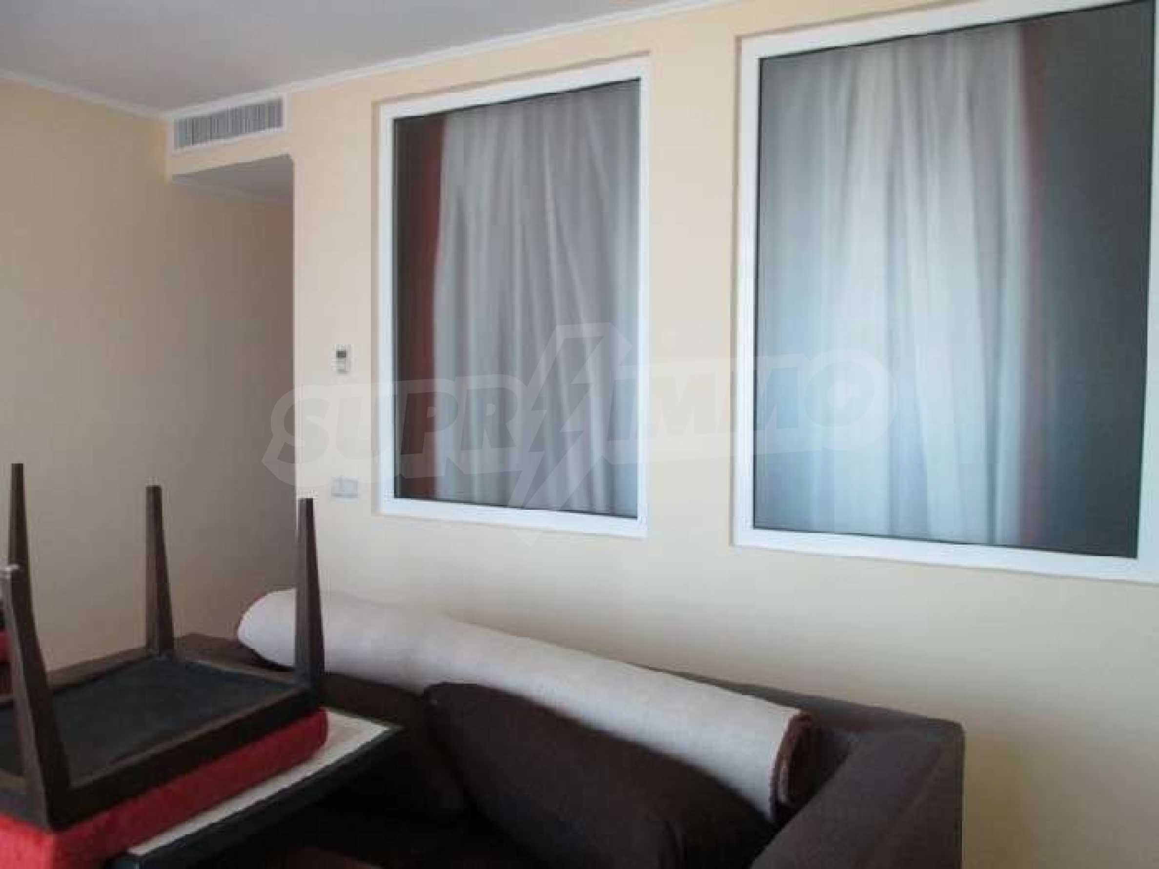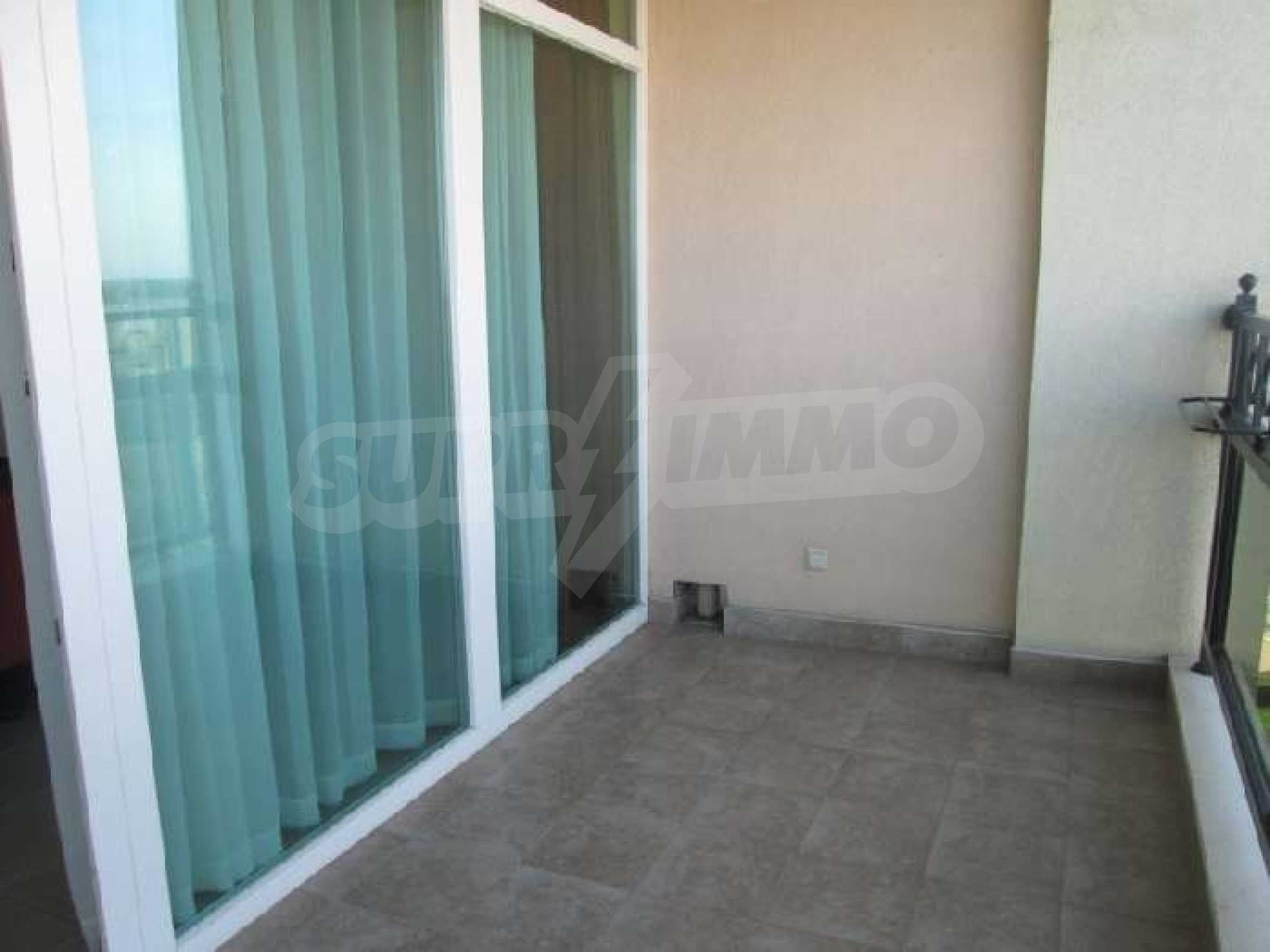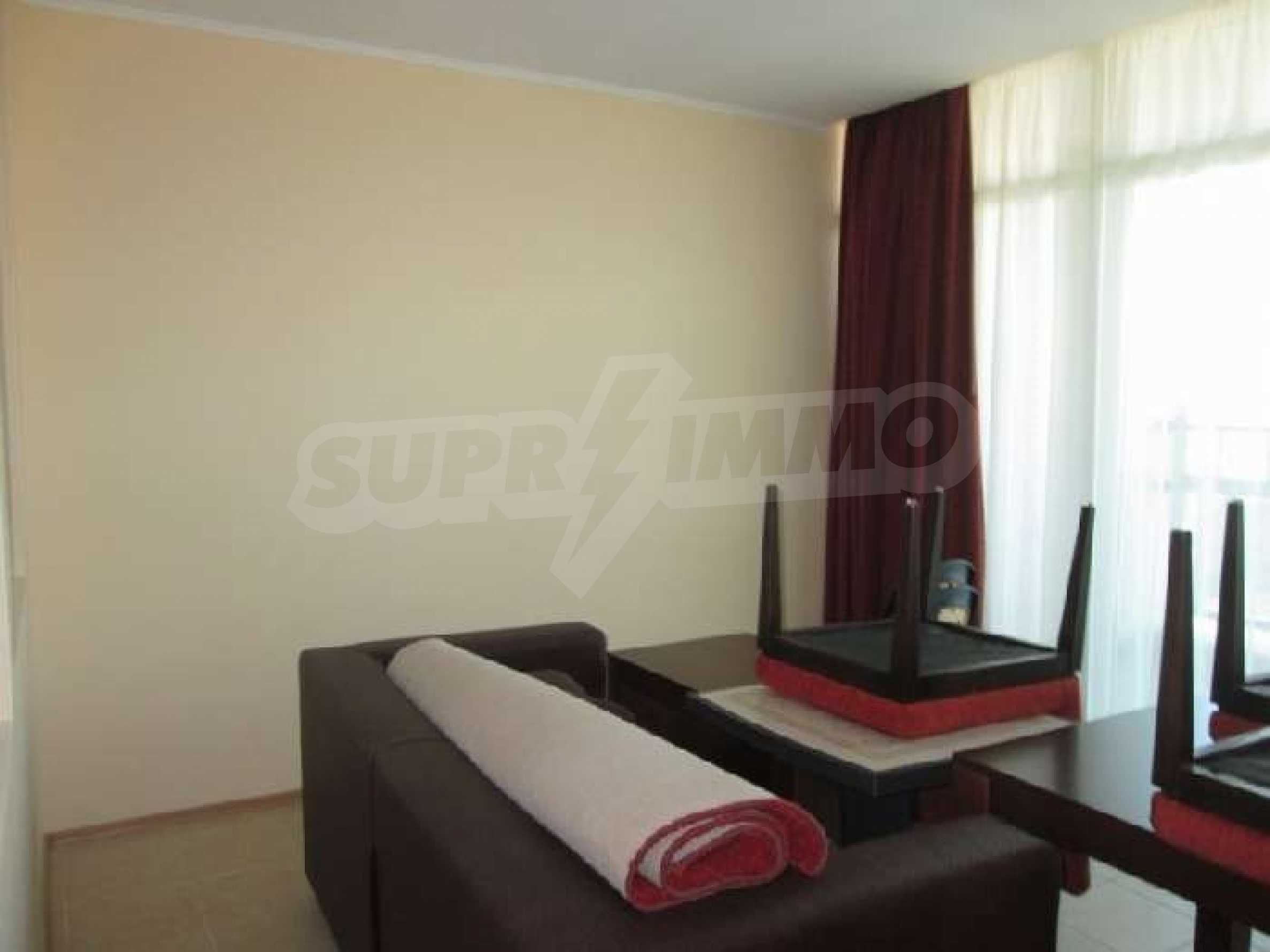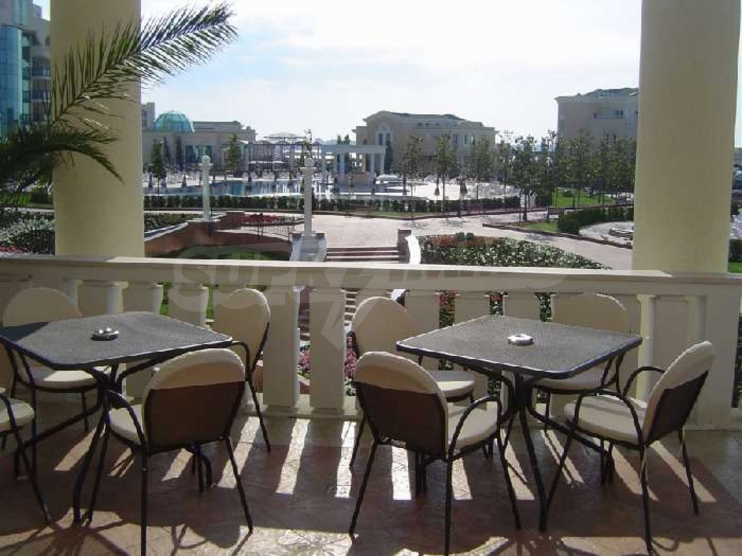 Sunset Resort is perfectly situated towards the south-west of the town of Pomorie, on the Black Sea Coast, and is directly located on the beach. The complex is only 15 minutes drive from Bourgas International Airport and 20 minutes drive from the second biggest city on the Black Sea coast and the fourth biggest city in Bulgaria - Bourgas.  Sunset Resort is a five star complex and includes of 5 apartment buildings and 6 deluxe waterfront villas with a total area of 115,000 sq.m. The apartment buildings have each been named, Alpha, Beta, Sigma, Delta and Eta and each reception supplies the owners and guests of the resort with outstanding services, internet access and full information on all available extras. The apartment is located in building C, Sigma, which is the Flagship building in the complex. It includes of one separate bedroom and living room with fully equipped kitchenette and dining table for four persons, satellite TV, air conditioning, sofa bed, balcony/terrace with views of the countryside, direct dial phone, WC with bath, shower and hairdryer. The Sunset Resort has fantastic facilities including: •   9 cocktail & coffee bars •   piano bar •   vitamin bar •   Vienna Pastry Shop •   5 a la carte restaurants and Grill House •   fish restaurant Mediterraneo •   French restaurant La Boheme •   sushi restaurant Asia •   Italian restaurant Venezia. Sunset Resort's Spa & Wellness oasis is located in Sigma. The spa centre offers a great variety of massages, treatments and therapies, and it is equipped with state-of-the-art amenities:  â€¢   herbal sauna •   steam bath •   Finnish sauna •   infrared sauna •   thallaso sauna •   vitalis sauna with hammam table •   solarium •   Kneipp-Basin •   relaxation areas with heated loungers •   experience massage showers and ice fountain •   bathtub with tangentor •   beauty parlour •   Doctor’s office. The Sunset Resort is very near to the major beach resort in Bulgaria - Sunny Beach and the ancient town of Nessebar. This is an outstanding destination for a vacation home on the Black Sea Coast!! Â