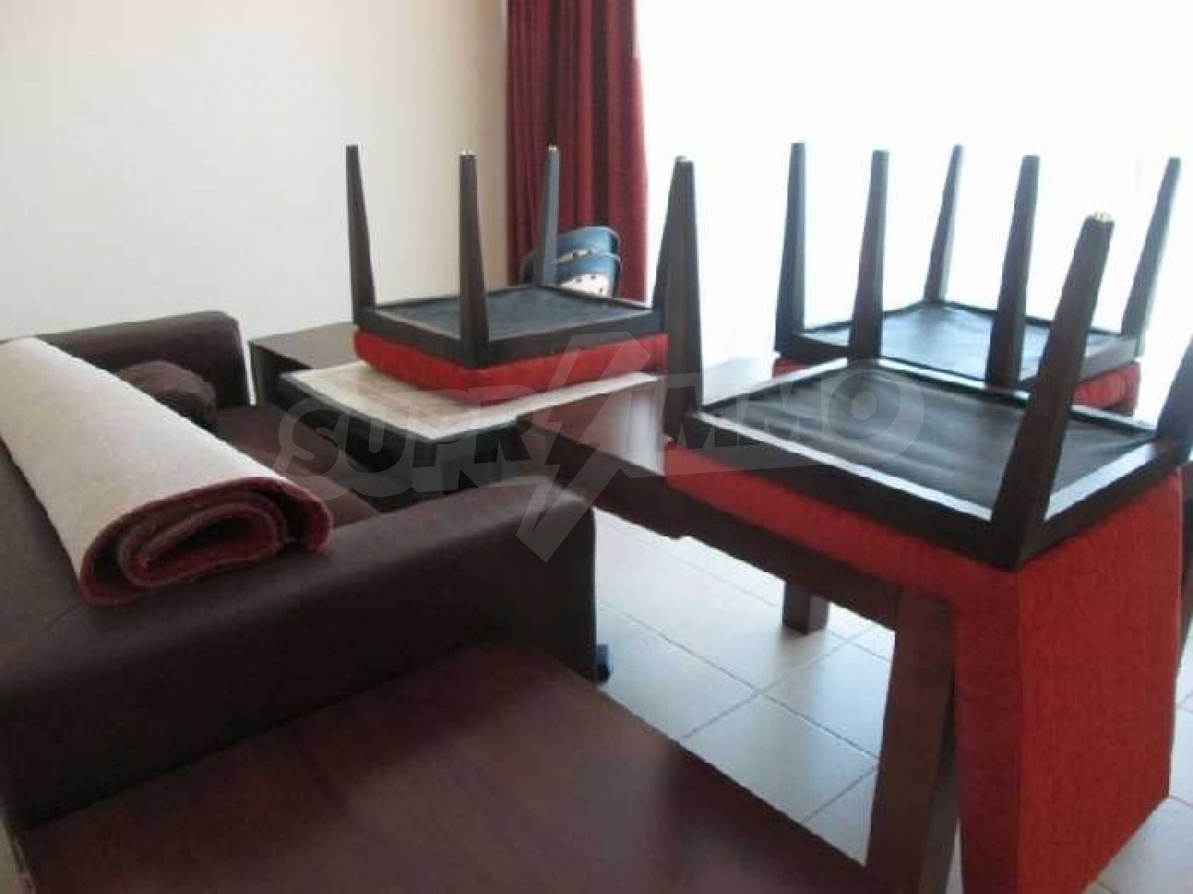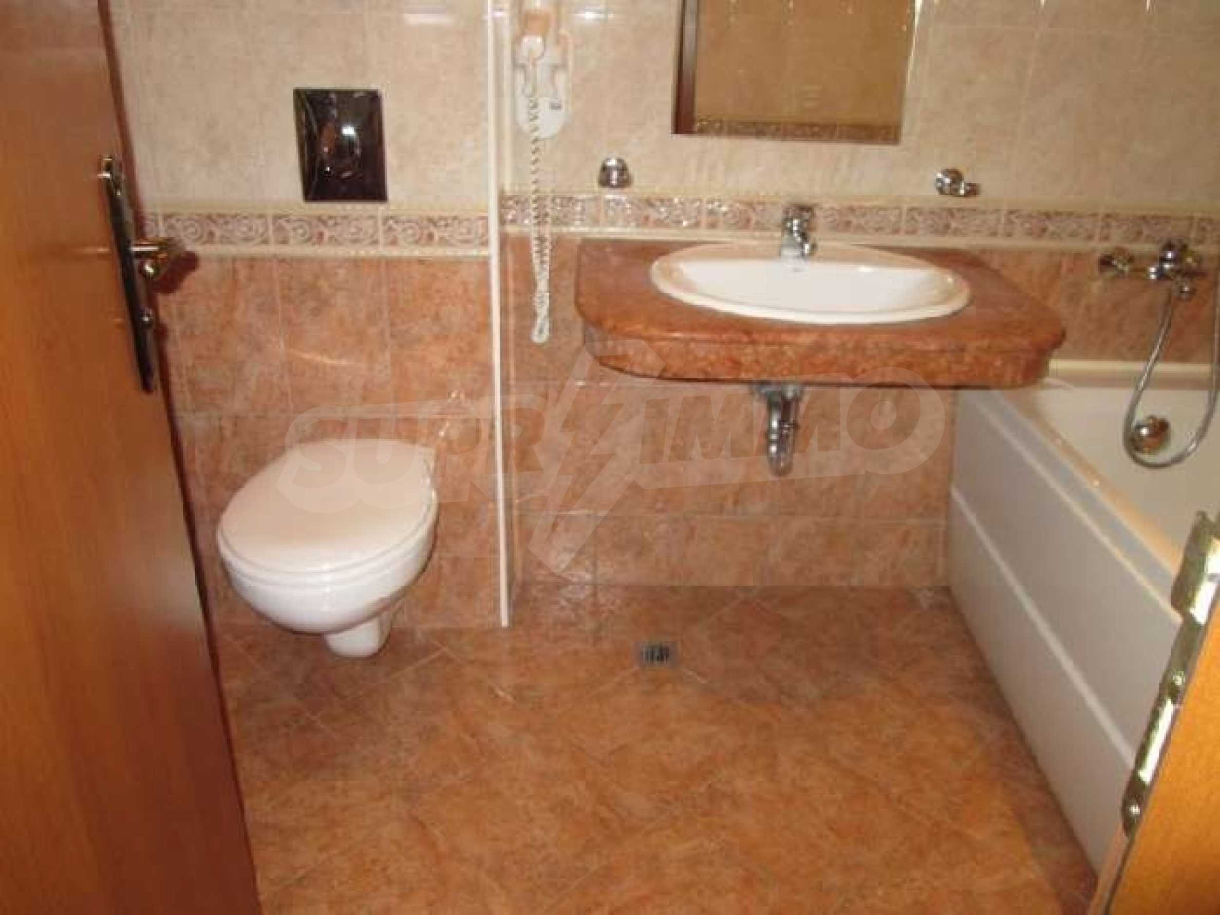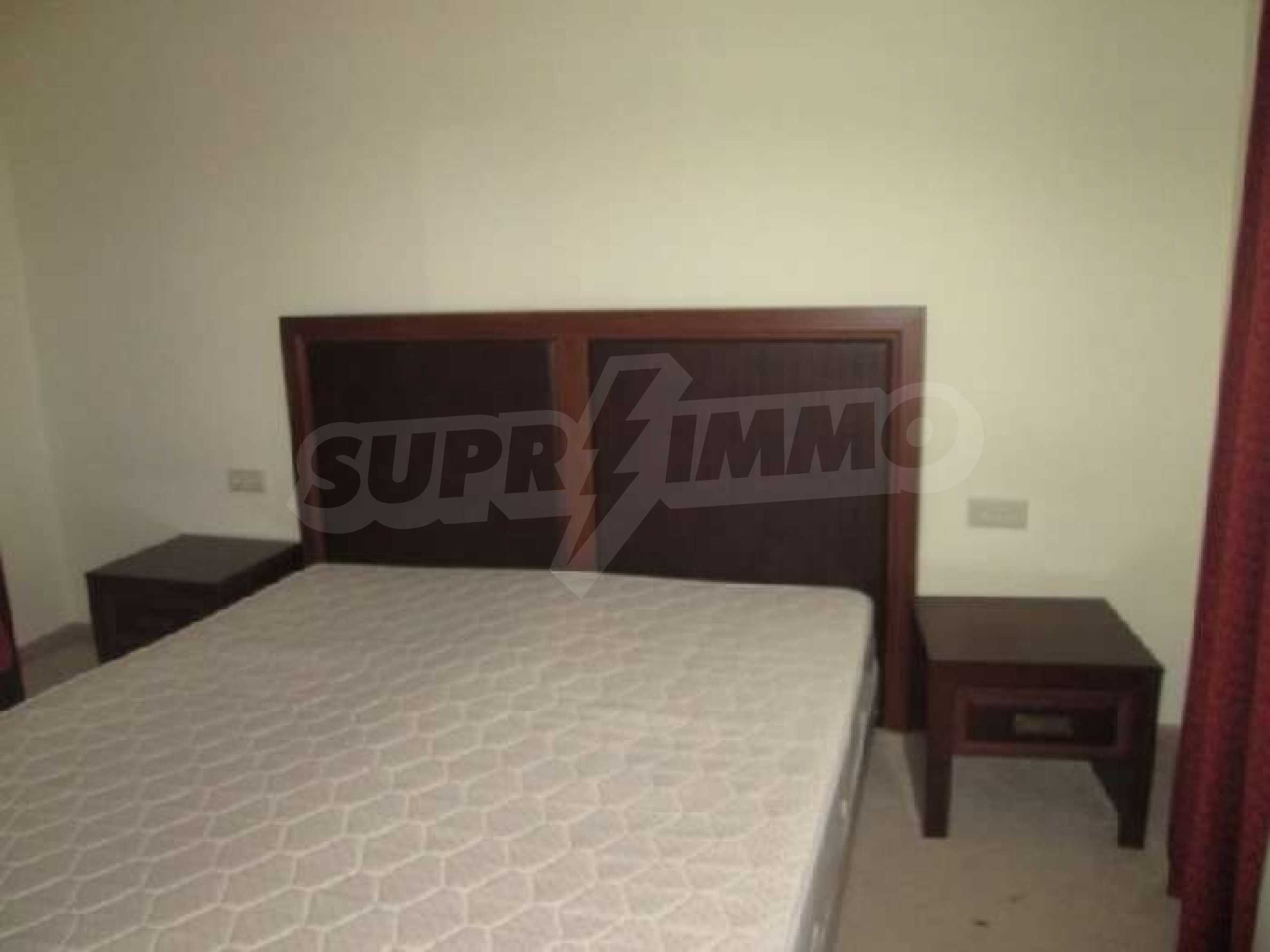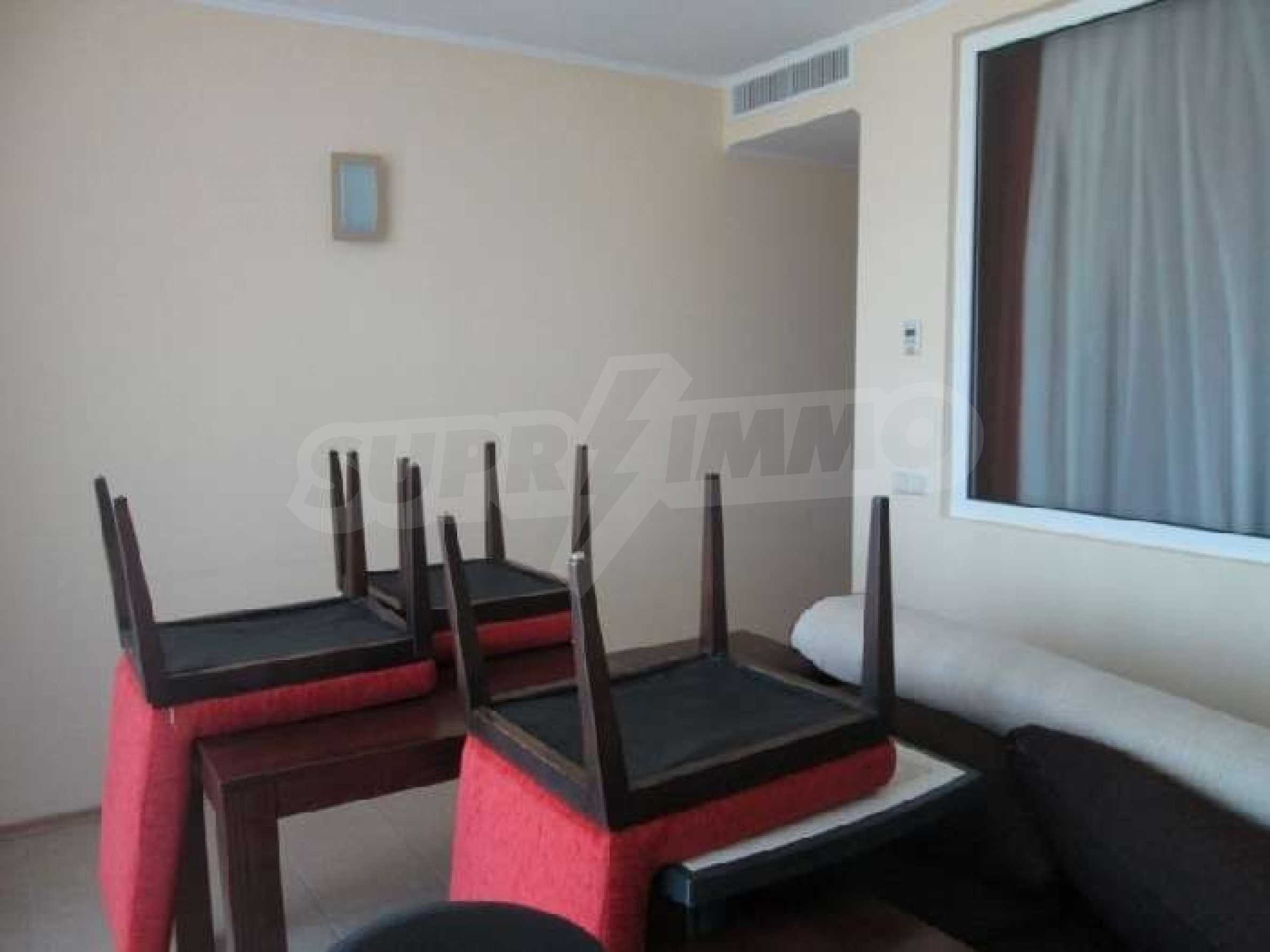 Sunset Resort is perfectly situated towards the south-west of the town of Pomorie, on the Black Sea Coast, and is directly located on the beach. The complex is only 15 minutes drive from Bourgas International Airport and 20 minutes drive from the second biggest city on the Black Sea coast and the fourth biggest city in Bulgaria - Bourgas.  Sunset Resort is a five star complex and includes of 5 apartment buildings and 6 deluxe waterfront villas with a total area of 115,000 sq.m. The apartment buildings have each been named, Alpha, Beta, Sigma, Delta and Eta and each reception supplies the owners and guests of the resort with outstanding services, internet access and full information on all available extras. The apartment is located in building C, Sigma, which is the Flagship building in the complex. It includes of one separate bedroom and living room with fully equipped kitchenette and dining table for four persons, satellite TV, air conditioning, sofa bed, balcony/terrace with views of the countryside, direct dial phone, WC with bath, shower and hairdryer. The Sunset Resort has fantastic facilities including: •   9 cocktail & coffee bars •   piano bar •   vitamin bar •   Vienna Pastry Shop •   5 a la carte restaurants and Grill House •   fish restaurant Mediterraneo •   French restaurant La Boheme •   sushi restaurant Asia •   Italian restaurant Venezia. Sunset Resort's Spa & Wellness oasis is located in Sigma. The spa centre offers a great variety of massages, treatments and therapies, and it is equipped with state-of-the-art amenities:  â€¢   herbal sauna •   steam bath •   Finnish sauna •   infrared sauna •   thallaso sauna •   vitalis sauna with hammam table •   solarium •   Kneipp-Basin •   relaxation areas with heated loungers •   experience massage showers and ice fountain •   bathtub with tangentor •   beauty parlour •   Doctor’s office. The Sunset Resort is very near to the major beach resort in Bulgaria - Sunny Beach and the ancient town of Nessebar. This is an outstanding destination for a vacation home on the Black Sea Coast!! Â