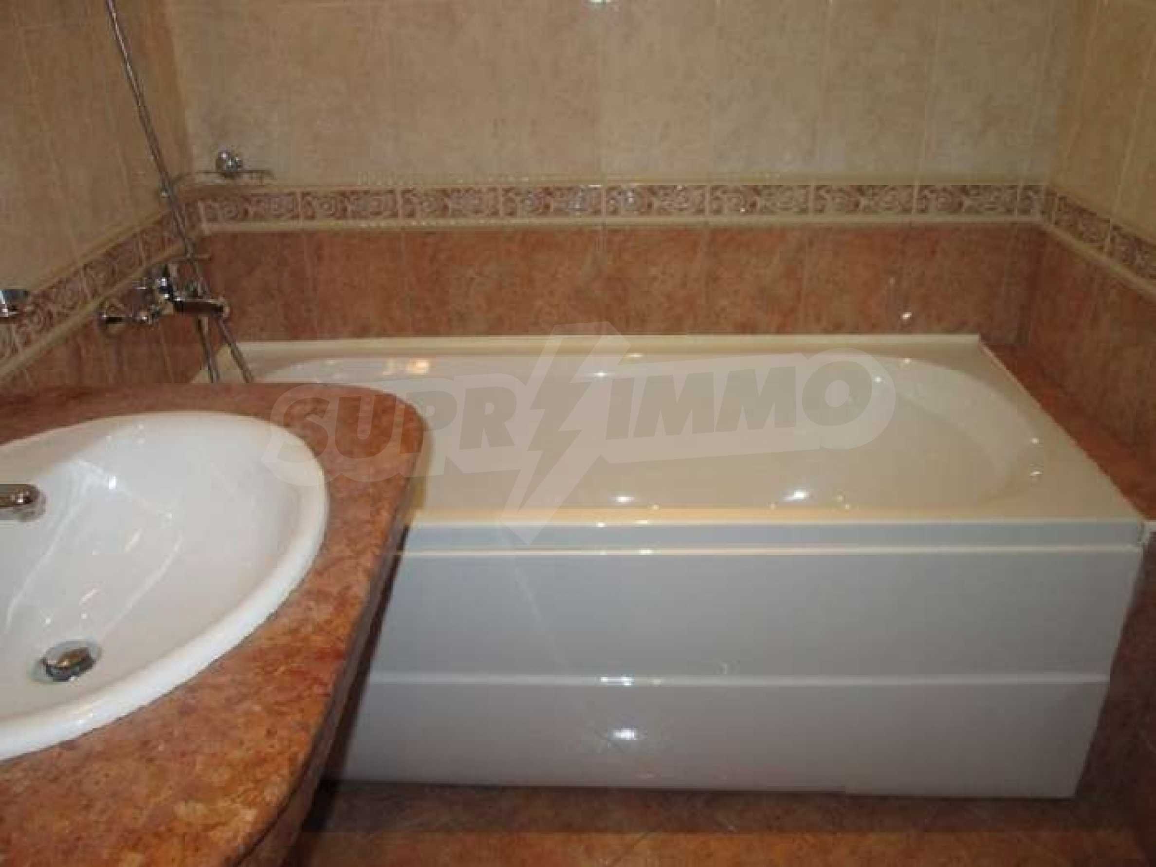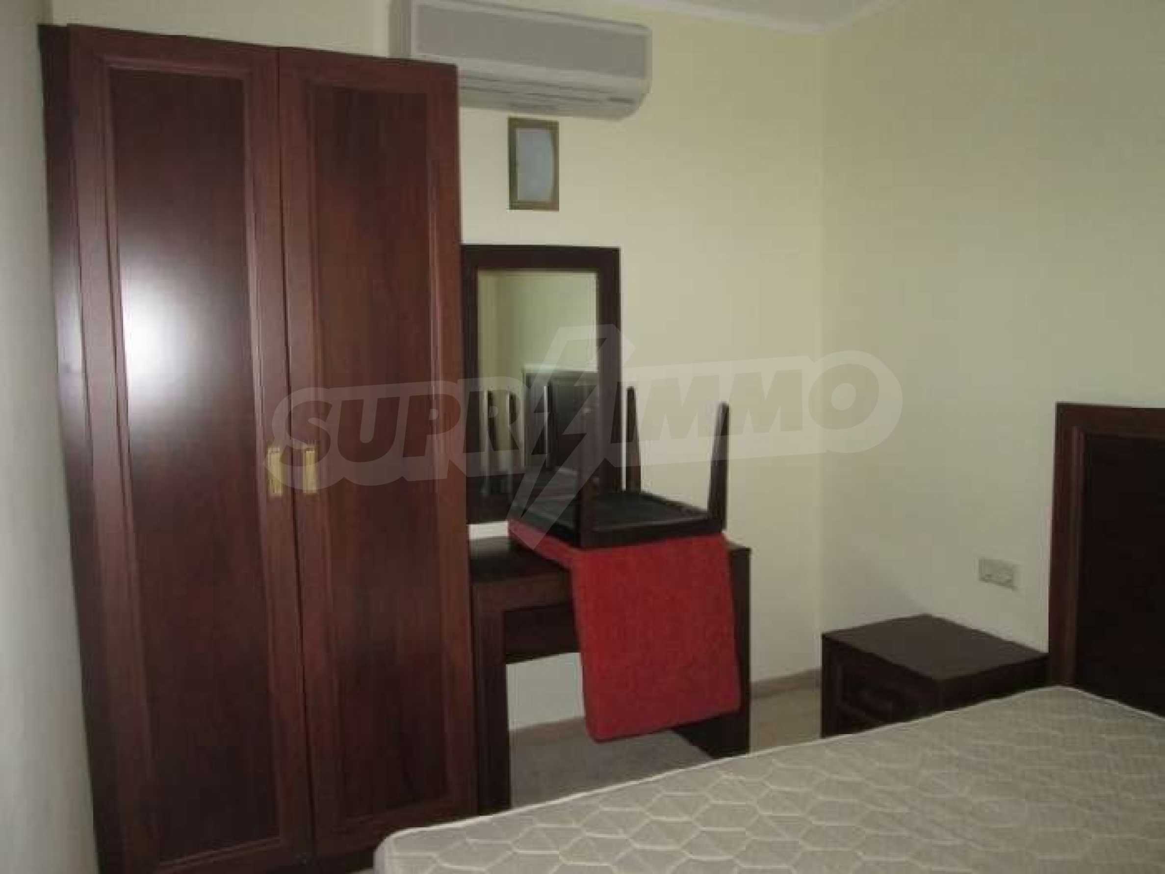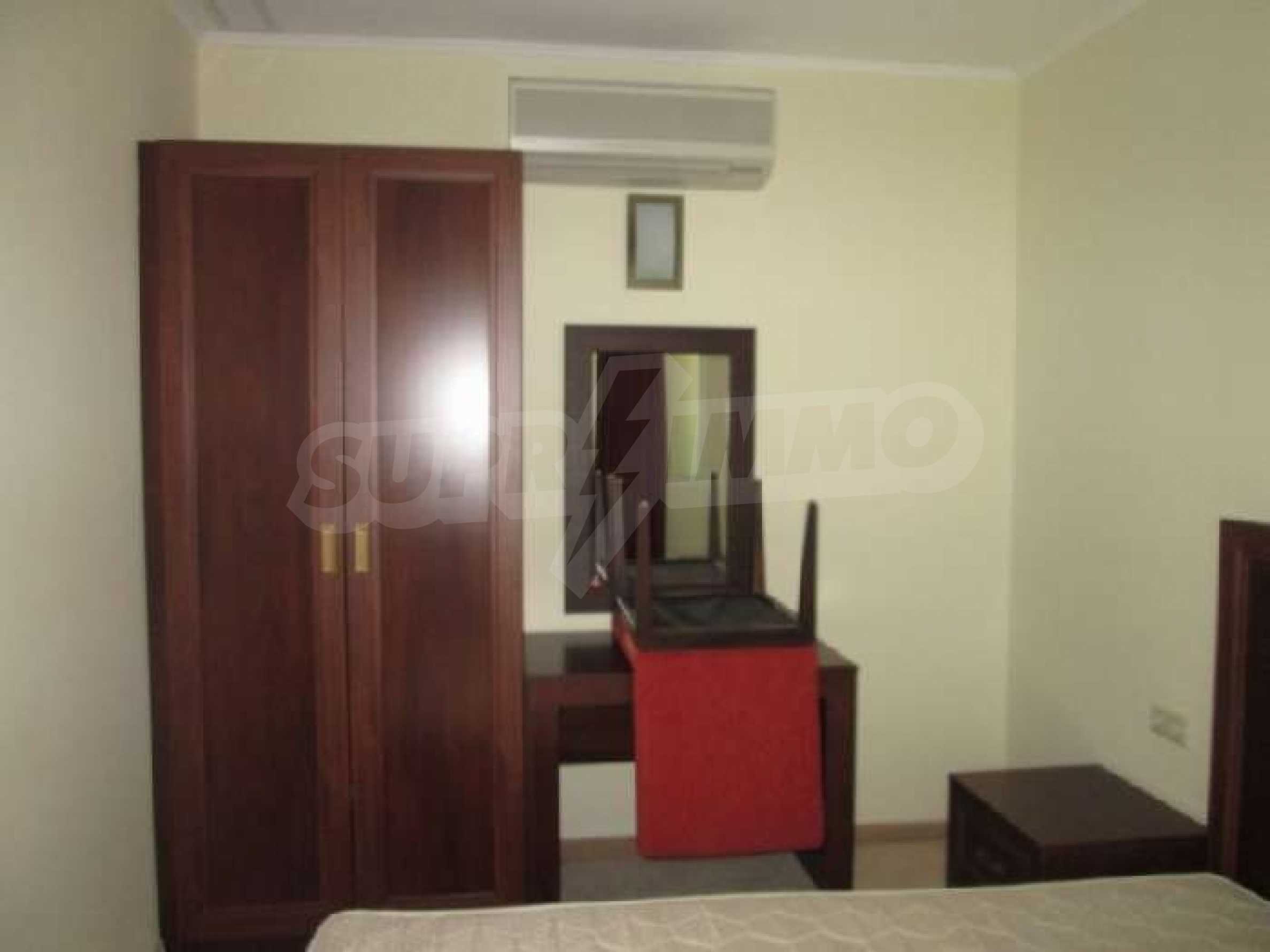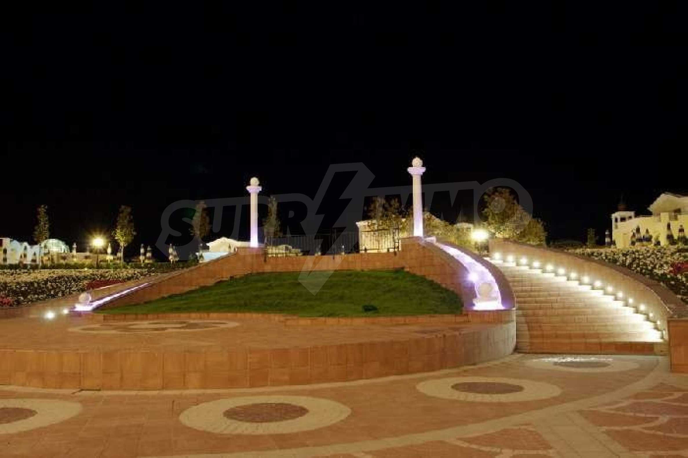 Sunset Resort is perfectly situated towards the south-west of the town of Pomorie, on the Black Sea Coast, and is directly located on the beach. The complex is only 15 minutes drive from Bourgas International Airport and 20 minutes drive from the second biggest city on the Black Sea coast and the fourth biggest city in Bulgaria - Bourgas.  Sunset Resort is a five star complex and includes of 5 apartment buildings and 6 deluxe waterfront villas with a total area of 115,000 sq.m. The apartment buildings have each been named, Alpha, Beta, Sigma, Delta and Eta and each reception supplies the owners and guests of the resort with outstanding services, internet access and full information on all available extras. The apartment is located in building C, Sigma, which is the Flagship building in the complex. It includes of one separate bedroom and living room with fully equipped kitchenette and dining table for four persons, satellite TV, air conditioning, sofa bed, balcony/terrace with views of the countryside, direct dial phone, WC with bath, shower and hairdryer. The Sunset Resort has fantastic facilities including: •   9 cocktail & coffee bars •   piano bar •   vitamin bar •   Vienna Pastry Shop •   5 a la carte restaurants and Grill House •   fish restaurant Mediterraneo •   French restaurant La Boheme •   sushi restaurant Asia •   Italian restaurant Venezia. Sunset Resort's Spa & Wellness oasis is located in Sigma. The spa centre offers a great variety of massages, treatments and therapies, and it is equipped with state-of-the-art amenities:  â€¢   herbal sauna •   steam bath •   Finnish sauna •   infrared sauna •   thallaso sauna •   vitalis sauna with hammam table •   solarium •   Kneipp-Basin •   relaxation areas with heated loungers •   experience massage showers and ice fountain •   bathtub with tangentor •   beauty parlour •   Doctor’s office. The Sunset Resort is very near to the major beach resort in Bulgaria - Sunny Beach and the ancient town of Nessebar. This is an outstanding destination for a vacation home on the Black Sea Coast!! Â
