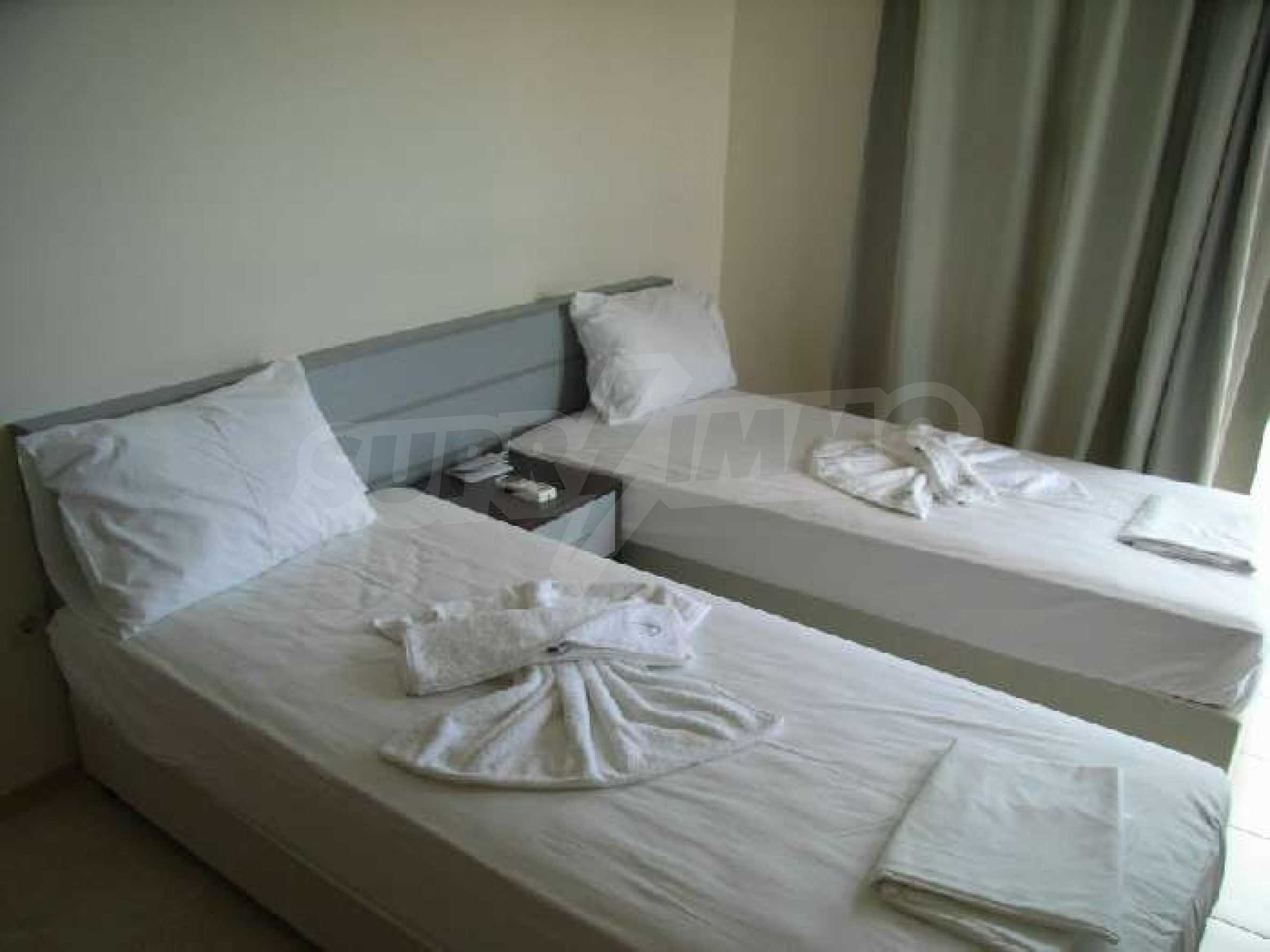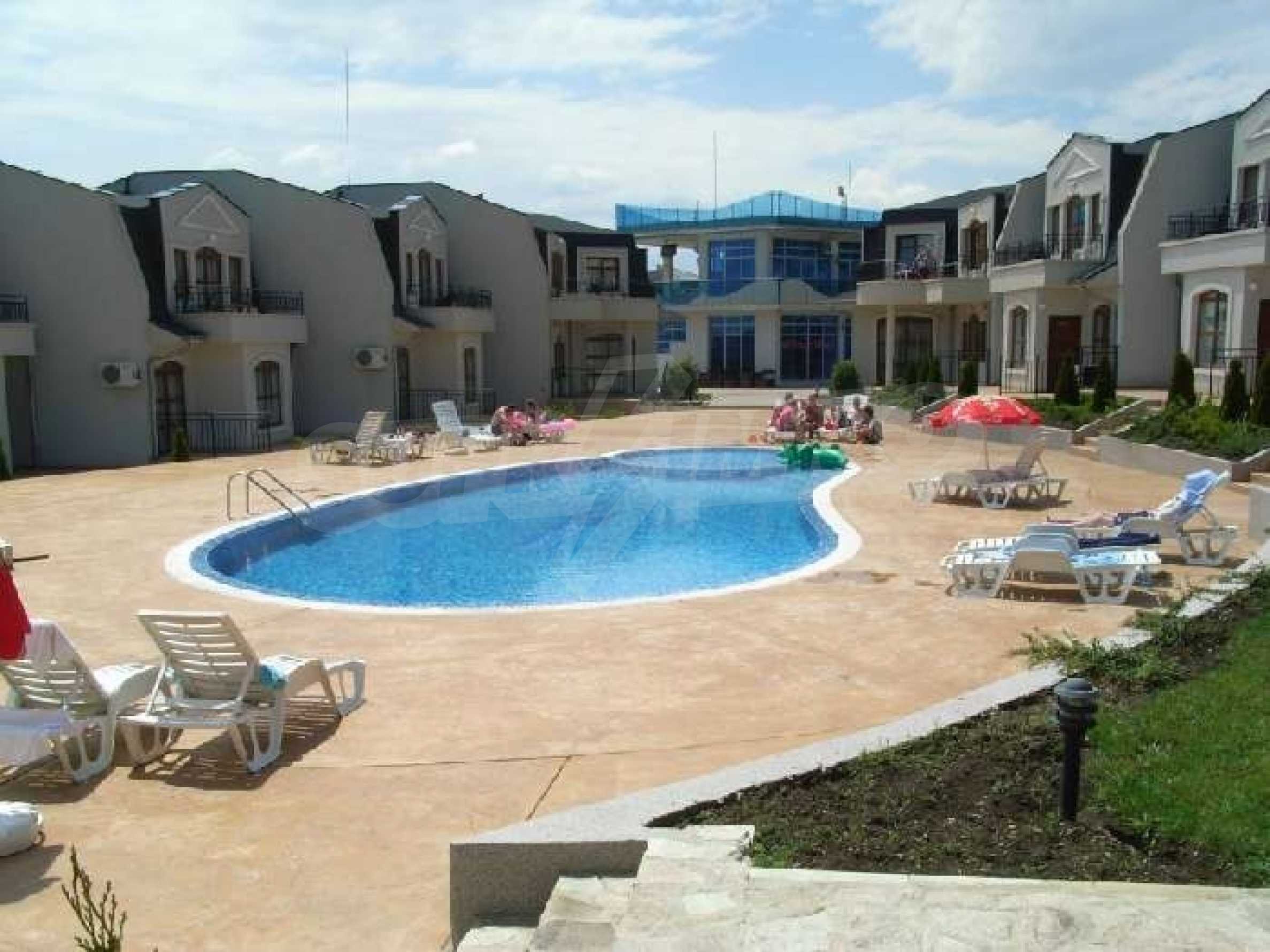 Nessebar View is a luxury complex located just outside Kosharitsa village, overlooking the beautiful resort of Sunny Beach and the historical town of Old Nessebar. The complex is close to the beach and there are regular shuttle buses into Sunny Beach and Nessebar Town.  This apartment on offer is on the ground floor and is furnished to a very high standard. It comprises of an open plan lounge with bed settee and dining area and a kitchen fully fitted with everything you could need for self catering. There are 2 bedrooms, 2 bathrooms and a balcony with beautiful sea views. This is one of the better apartments because of its size and location. It is in pristine condition as it has only been used once from new. The facilities at the complex include: Reception Sky bar Restaurant - open from breakfast until late - providing very good food. Shop Internet room Landscape gardens 24 hour Security with CCTV. Kosharitsa is a small village, beautifully nestled at the foot of the Emine Balkan, part of the Old Mountain Balkan Range. It has stunning views of the mountains and at the same time is close to the sea and the lovely beaches making it a perfect place for a relaxing holiday home. The restaurants and bars are a lot cheaper than the larger towns. Sunny Beach is situated in the southern part of the Bulgarian Black Sea Riviera with 8 km of golden beach stretching from St Vlas to the ancient town of Nessebar. There is a wide range of shops, bars and excellent restaurants, all at very low prices. The centre of Sunny Beach is less than 10 minutes by shuttle bus/taxi from the complex, the bus runs from 8.15am - 8.15pm, every hour.  Sunny Beach Aqua Park and Go Kart Circuit are all close at hand. Activities available locally include wind surfing, water skiing, para-sailing, hang-gliding and motor launch cruises. Old Nessebar town (a UNESCO World Heritage site) with its cobbled streets and ancient ruins is perfect for a relaxing day out. The summer temperatures average around 30C with over 1,700 hours of sunshine from May to October. This is a fantastic investment opportunity to own a holiday home on the Black Sea Coast for personal use or holiday rentals!!