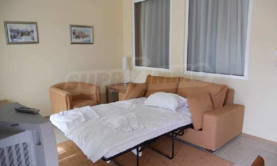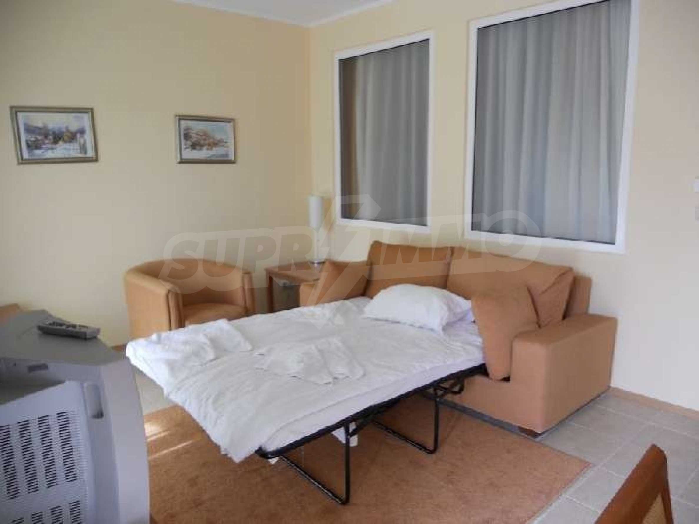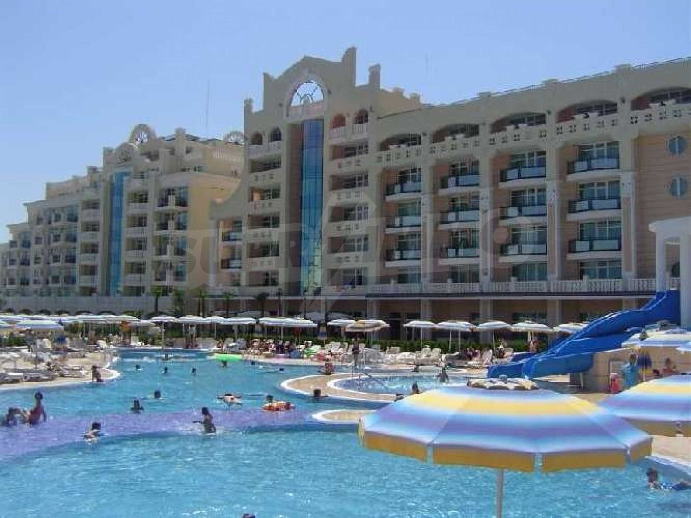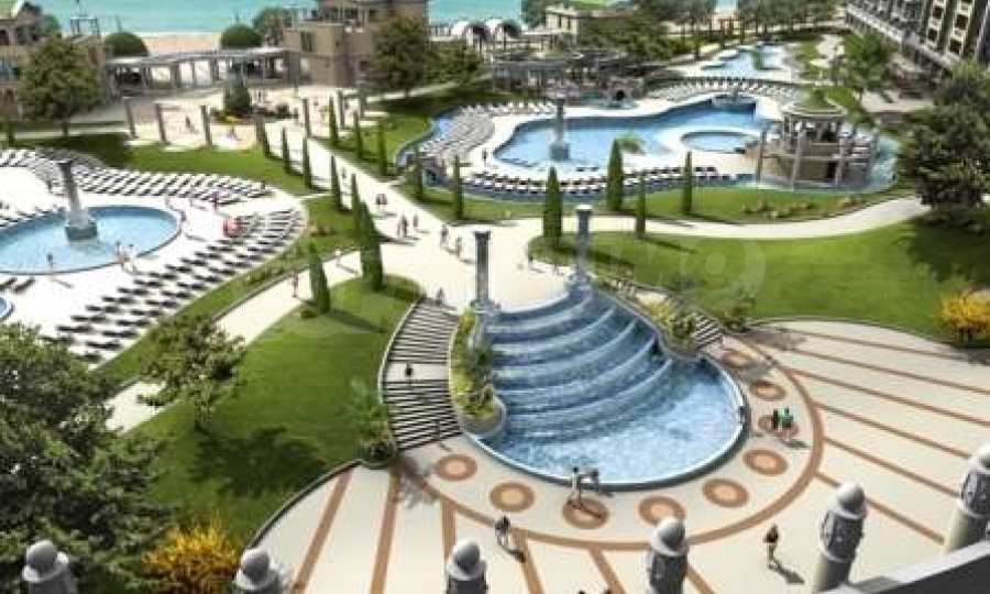 Sunset Resort is perfectly located towards the south-west of the town of Pomorie, on the Black Sea Coast, and is directly situated on the beach.  The complex is only 15 minutes drive from Bourgas International Airport and 20 minutes drive from the second biggest city on the Black Sea coast and the fourth largest city in Bulgaria - Bourgas. This is a five star complex and comprises of 5 apartment buildings and 6 deluxe waterfront villas with a total area of 115,000 sq.m. The apartment buildings have each been named, Alpha, Beta, Sigma, Delta and Eta and each reception supplies the owners and visitors of the resort with excellent services, internet access and detailed information on all available extras. This apartment is air conditioned throughout and is in the Alpha building, on the ground floor making it very accessible for families with children, the elderly or the less able. It comprises of an open plan lounge with dining area and a kitchen fully fitted with everything you could need for self catering. The bathroom has top quality sanitary ware, including a bath and a shower, and it is fully tiled.  There is one bedroom with a bed big enough to sleep 3 people and a camp bed can be hired if required. The balcony mainly consists of patio furniture and has views over the gardens and partial aquatic views. The Sunset Resort has fantastic amenities including:9 cocktail & coffee barspiano barvitamin barVienna Pastry Shop5 a la carte restaurants and Grill Housefish restaurant MediterraneoFrench restaurant La Bohemesushi restaurant AsiaItalian restaurant VeneziaSunset Resort's Spa & Wellness oasis is located in Sigma. The spa centre offers a great variety of massages, treatments and therapies, and it is equipped with state-of-the-art facilities: herbal saunasteam bathFinnish saunaInfrared saunaThallaso saunaVitalis sauna with hammam tableSolariumKneipp-Basinrelaxation areas with heated loungersexperience massage showers and ice fountainbathtub with tangentorbeauty parlourDoctor’s officeThe Sunset Resort is very close to the largest beach resort in Bulgaria - Sunny Beach and the ancient town of Nessebar.  This is a great investment opportunity to own a holiday home on the Black Sea Coast!!