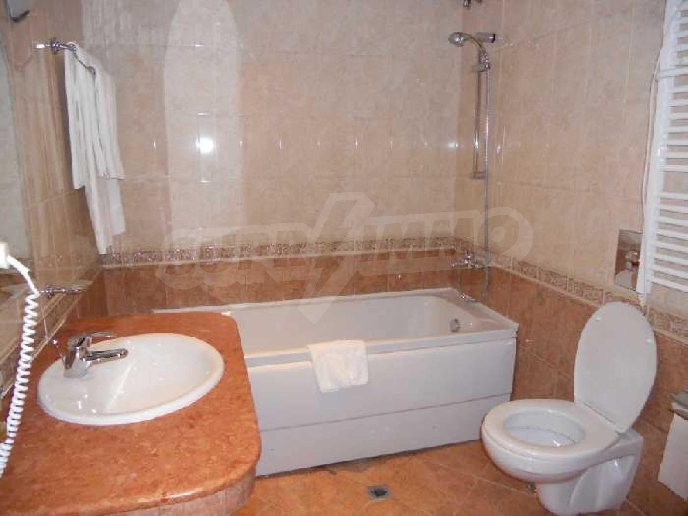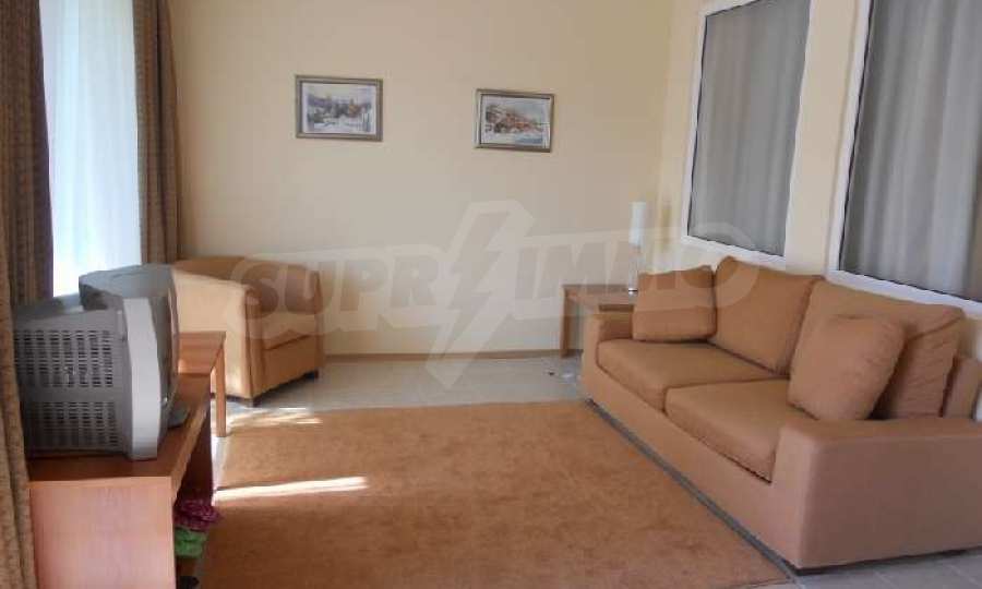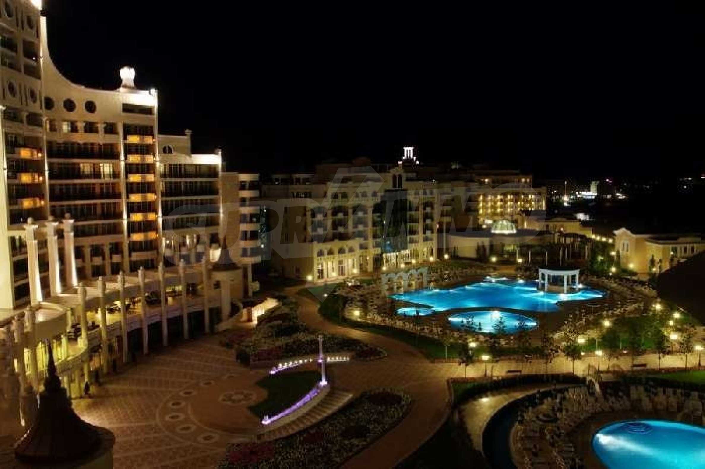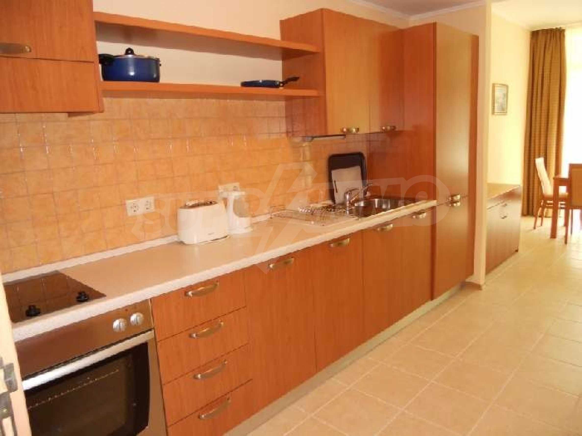 Sunset Resort is perfectly located towards the south-west of the town of Pomorie, on the Black Sea Coast, and is directly situated on the beach.  The complex is only 15 minutes drive from Bourgas International Airport and 20 minutes drive from the second biggest city on the Black Sea coast and the fourth largest city in Bulgaria - Bourgas. This is a five star complex and comprises of 5 apartment buildings and 6 deluxe waterfront villas with a total area of 115,000 sq.m. The apartment buildings have each been named, Alpha, Beta, Sigma, Delta and Eta and each reception supplies the owners and visitors of the resort with excellent services, internet access and detailed information on all available extras. This apartment is air conditioned throughout and is in the Alpha building, on the ground floor making it very accessible for families with children, the elderly or the less able. It comprises of an open plan lounge with dining area and a kitchen fully fitted with everything you could need for self catering. The bathroom has top quality sanitary ware, including a bath and a shower, and it is fully tiled.  There is one bedroom with a bed big enough to sleep 3 people and a camp bed can be hired if required. The balcony mainly consists of patio furniture and has views over the gardens and partial aquatic views. The Sunset Resort has fantastic amenities including:9 cocktail & coffee barspiano barvitamin barVienna Pastry Shop5 a la carte restaurants and Grill Housefish restaurant MediterraneoFrench restaurant La Bohemesushi restaurant AsiaItalian restaurant VeneziaSunset Resort's Spa & Wellness oasis is located in Sigma. The spa centre offers a great variety of massages, treatments and therapies, and it is equipped with state-of-the-art facilities: herbal saunasteam bathFinnish saunaInfrared saunaThallaso saunaVitalis sauna with hammam tableSolariumKneipp-Basinrelaxation areas with heated loungersexperience massage showers and ice fountainbathtub with tangentorbeauty parlourDoctor’s officeThe Sunset Resort is very close to the largest beach resort in Bulgaria - Sunny Beach and the ancient town of Nessebar.  This is a great investment opportunity to own a holiday home on the Black Sea Coast!!