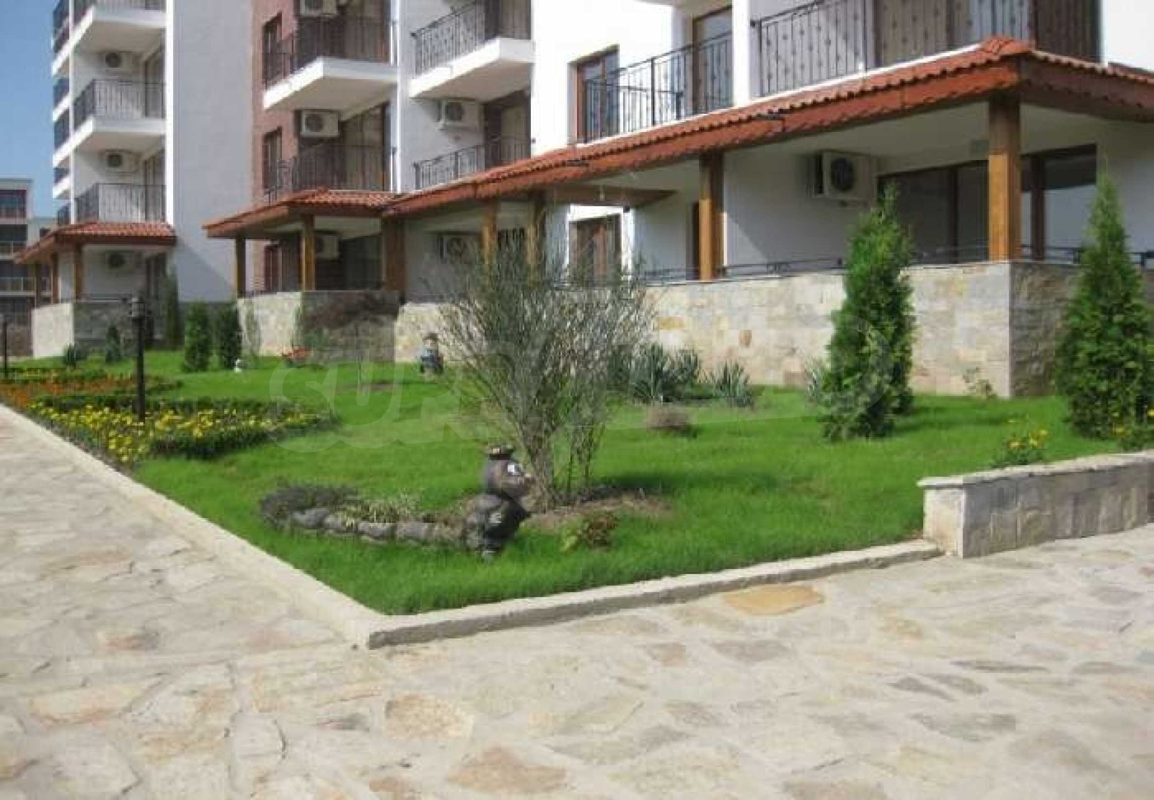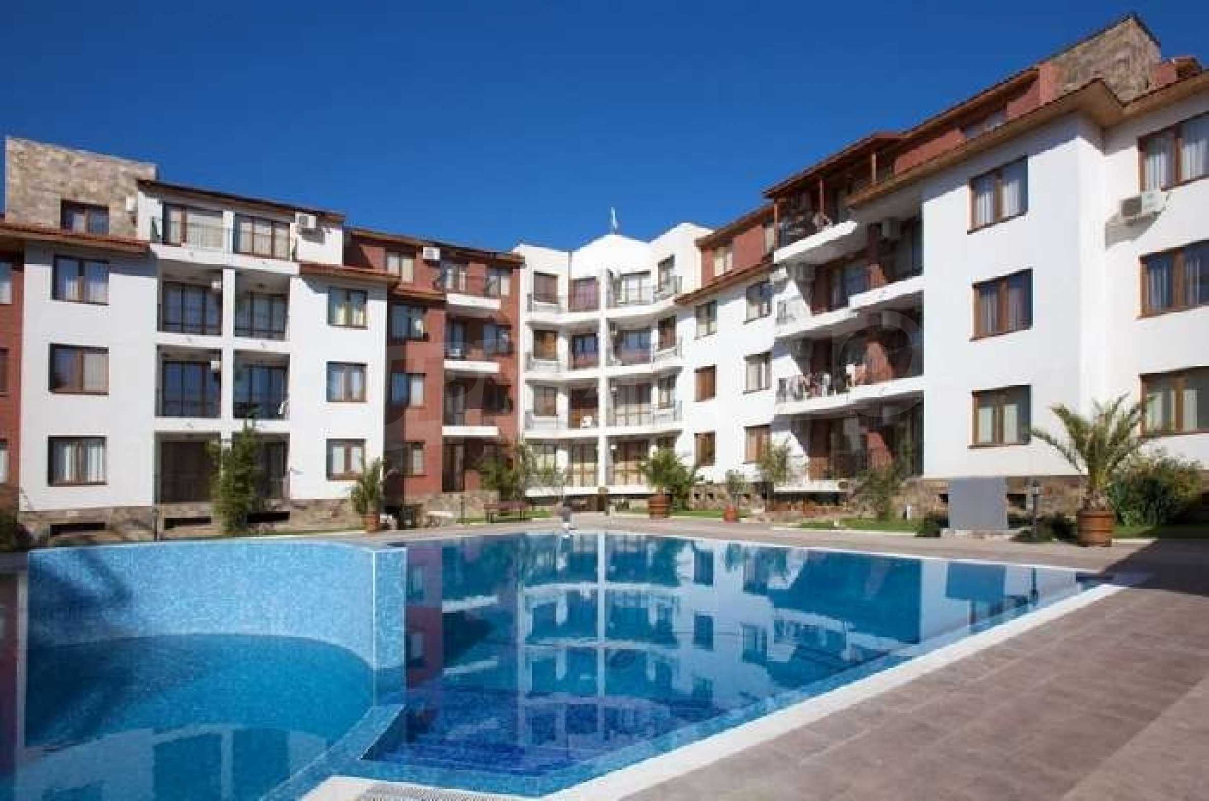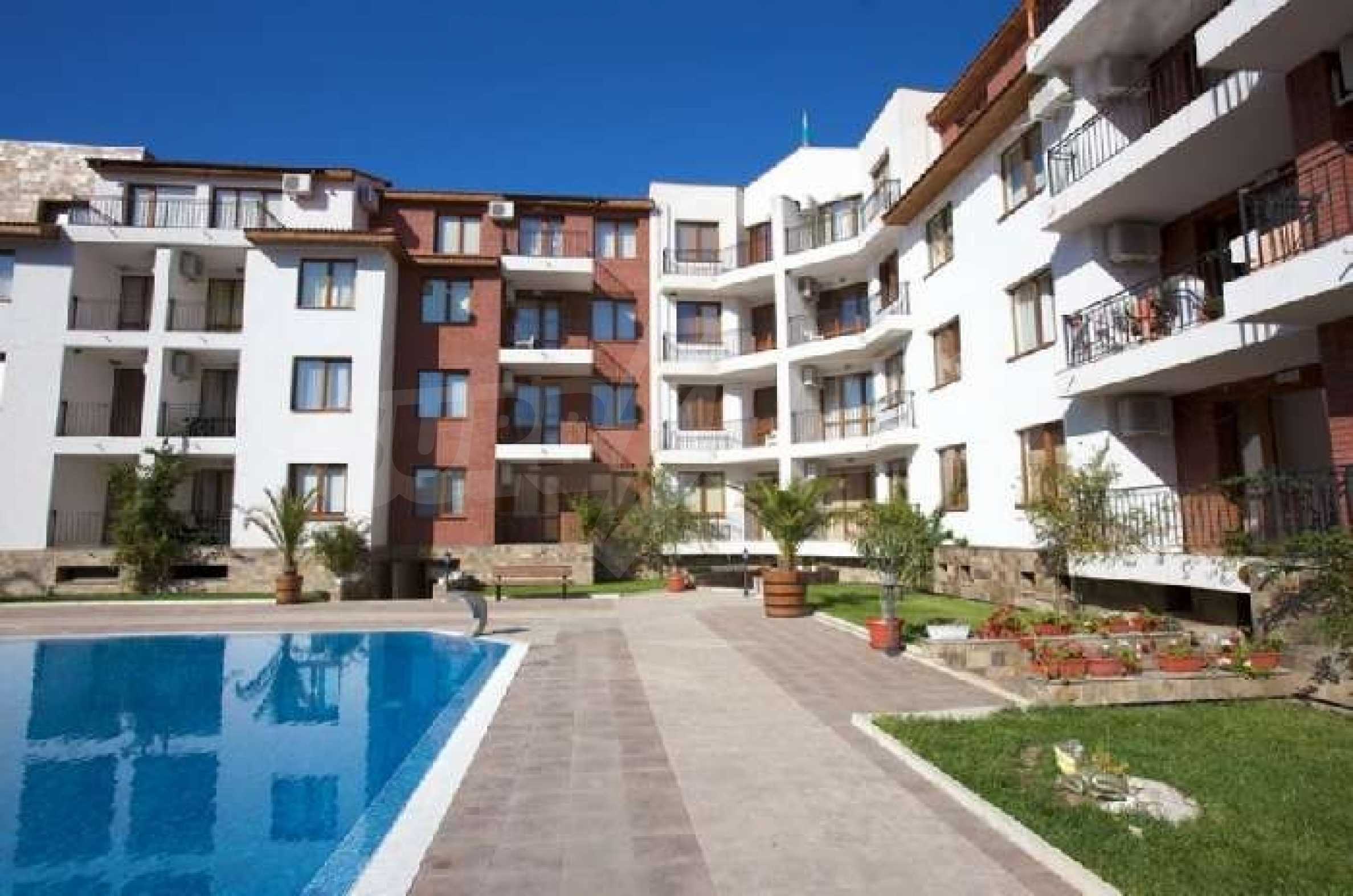 The Apollon Complex is sited in the village of Ravda on the Black Sea Coast of Bulgaria. The nearest large town to the Apollon Complex is the town of Bourgas (30km to the south) which is served by its own international airport with many flights through the holiday season to the UK. Further to the north is Varna (90km) with its airport and regular flights including a twice weekly schedule with British Airways. 2 Bedroom Luxury Apartment is 200 metres from the beach300 metres from the excellent brand new Aqua ParkAccommodation for up to 6 peopleSize 81.40 square metres and garageThis property includes a garage with electric doors. New 2 bedroom 2 bathroom luxury fully air-conditioned apartment less than 200 metres from a tremendous sandy beach in the Bulgarian seaside resort of Ravda. Accommodation of 81.40 sq/metres, which can comfortably accommodate up to 6 people comprises 2 bedrooms one being a double with en-suite and the other a twin room. There is also a sofa bed in the lounge. The apartment also comes with a garage with remote control door opening. In addition there is a lift, private swimming pool, an outside bar, landscaped gardens and 24 hour security. The Apollon Complex consists of 7 buildings overall with a wide range of facilities for the owners and their guests including:ReceptionSpa centreAdult swimming pool and children’s poolChildren’s play areaOutdoor barLarge restaurantSecure parking and garage with remote controlled electric up and over doorTennis courtAll weather pitchThe complex is conveniently located 300 metres from Bulgaria’s newest and largest Aqua Park called Aqua Paradise. It has an extensive range of the latest water rides providing plenty of fun for children and grown-ups alike! The Aqua park Complex also has tennis courts. The small village of Ravda is known for its beaches and water sport facilities. In addition there's plenty to do here in the evening and nights with bars, restaurants and discos or you can hire a taxi at a reasonable price to go to the nearby resorts of Nessebar and Sunny Beach. The ancient and notable town of Nessebar could be considered the "jewel in the crown" in terms of beauty and things to do in the area. Everything is available here but most of all is the historical interest with ancient buildings and monuments reflecting a history stretching back over 9000 years. As well as the history, Nessebar offers quiet restaurants serving excellent seafood and fashionable cafes and shops. For those with an appetite for something a little livelier, Sunny Beach is just 3 km to the North of Nessebar offering lots of amusements and water sports during the day and at night it comes alive with excellent bars, restaurants, floor shows, and disco nightlife.