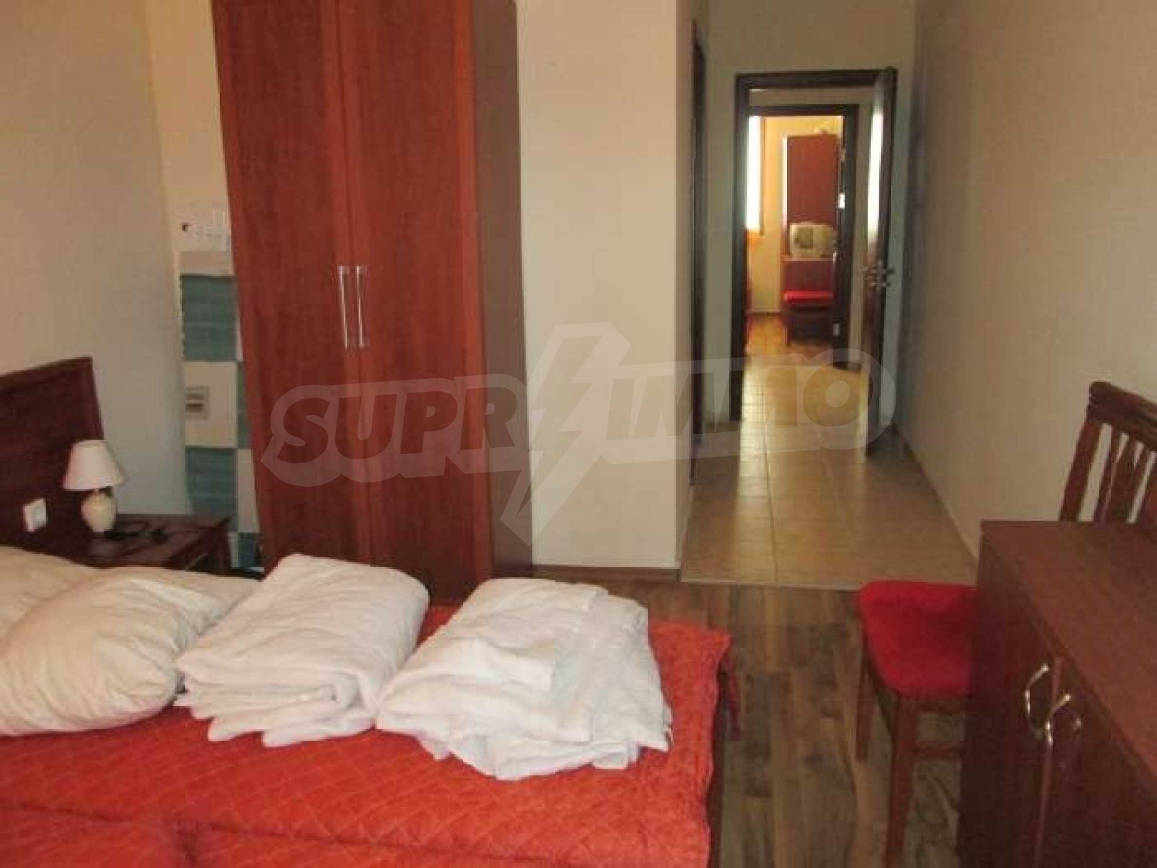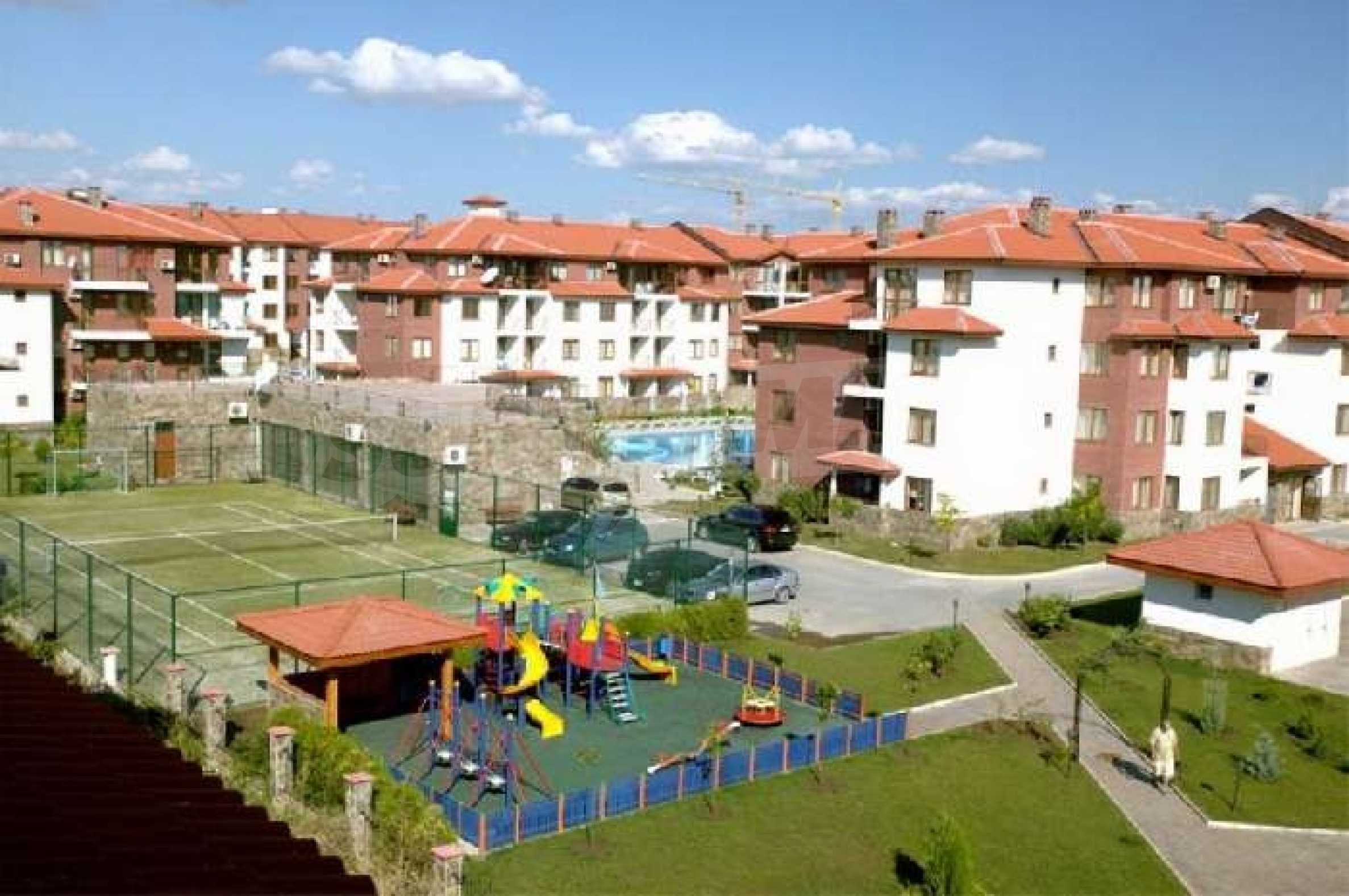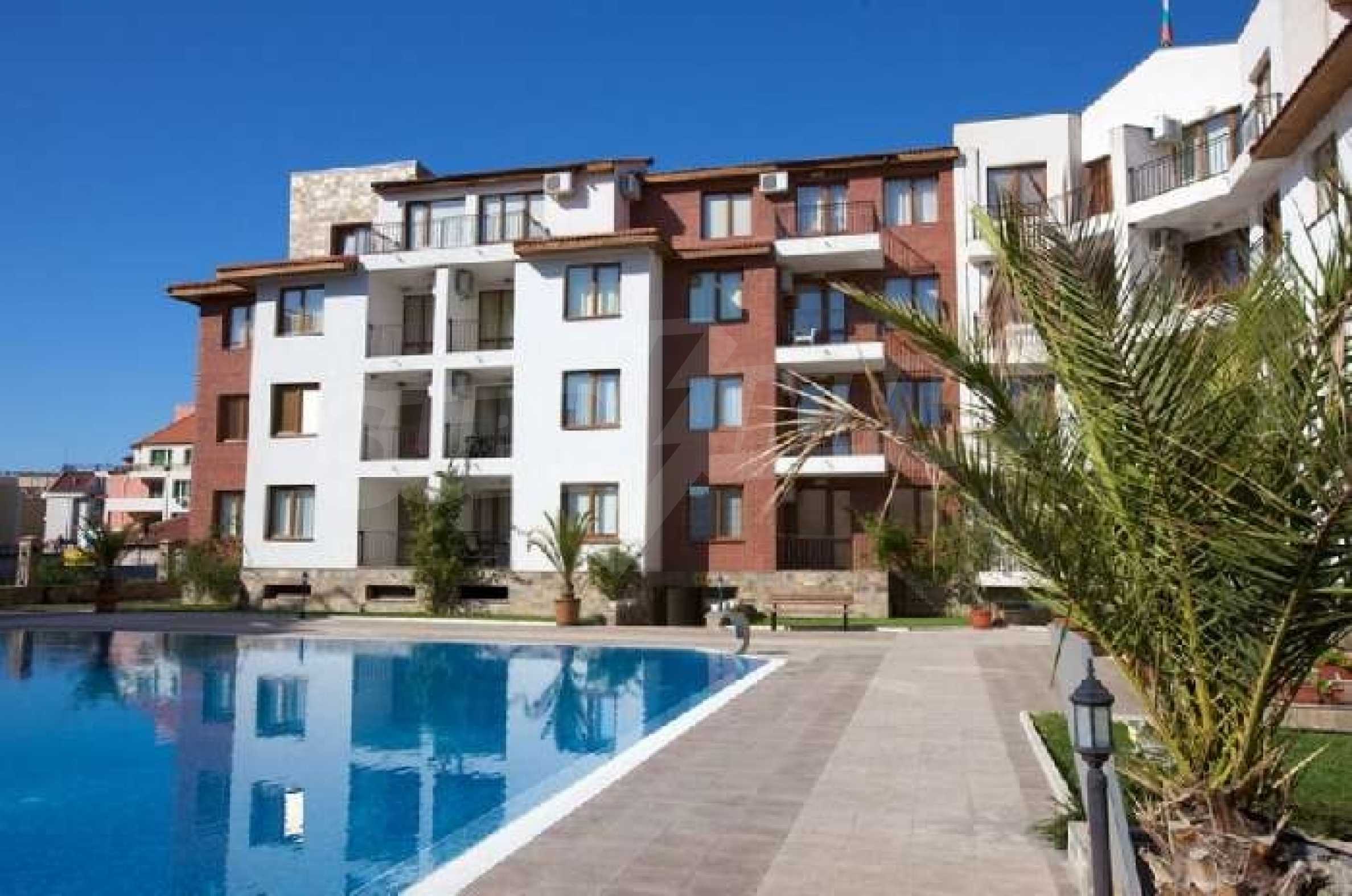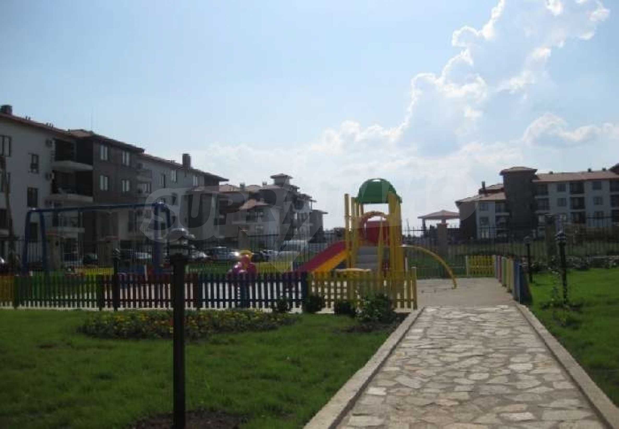 The Apollon Complex is sited in the village of Ravda on the Black Sea Coast of Bulgaria. The nearest large town to the Apollon Complex is the town of Bourgas (30km to the south) which is served by its own international airport with many flights through the holiday season to the UK. Further to the north is Varna (90km) with its airport and regular flights including a twice weekly schedule with British Airways. 2 Bedroom Luxury Apartment is 200 metres from the beach300 metres from the excellent brand new Aqua ParkAccommodation for up to 6 peopleSize 81.40 square metres and garageThis property includes a garage with electric doors. New 2 bedroom 2 bathroom luxury fully air-conditioned apartment less than 200 metres from a tremendous sandy beach in the Bulgarian seaside resort of Ravda. Accommodation of 81.40 sq/metres, which can comfortably accommodate up to 6 people comprises 2 bedrooms one being a double with en-suite and the other a twin room. There is also a sofa bed in the lounge. The apartment also comes with a garage with remote control door opening. In addition there is a lift, private swimming pool, an outside bar, landscaped gardens and 24 hour security. The Apollon Complex consists of 7 buildings overall with a wide range of facilities for the owners and their guests including:ReceptionSpa centreAdult swimming pool and children’s poolChildren’s play areaOutdoor barLarge restaurantSecure parking and garage with remote controlled electric up and over doorTennis courtAll weather pitchThe complex is conveniently located 300 metres from Bulgaria’s newest and largest Aqua Park called Aqua Paradise. It has an extensive range of the latest water rides providing plenty of fun for children and grown-ups alike! The Aqua park Complex also has tennis courts. The small village of Ravda is known for its beaches and water sport facilities. In addition there's plenty to do here in the evening and nights with bars, restaurants and discos or you can hire a taxi at a reasonable price to go to the nearby resorts of Nessebar and Sunny Beach. The ancient and notable town of Nessebar could be considered the "jewel in the crown" in terms of beauty and things to do in the area. Everything is available here but most of all is the historical interest with ancient buildings and monuments reflecting a history stretching back over 9000 years. As well as the history, Nessebar offers quiet restaurants serving excellent seafood and fashionable cafes and shops. For those with an appetite for something a little livelier, Sunny Beach is just 3 km to the North of Nessebar offering lots of amusements and water sports during the day and at night it comes alive with excellent bars, restaurants, floor shows, and disco nightlife.