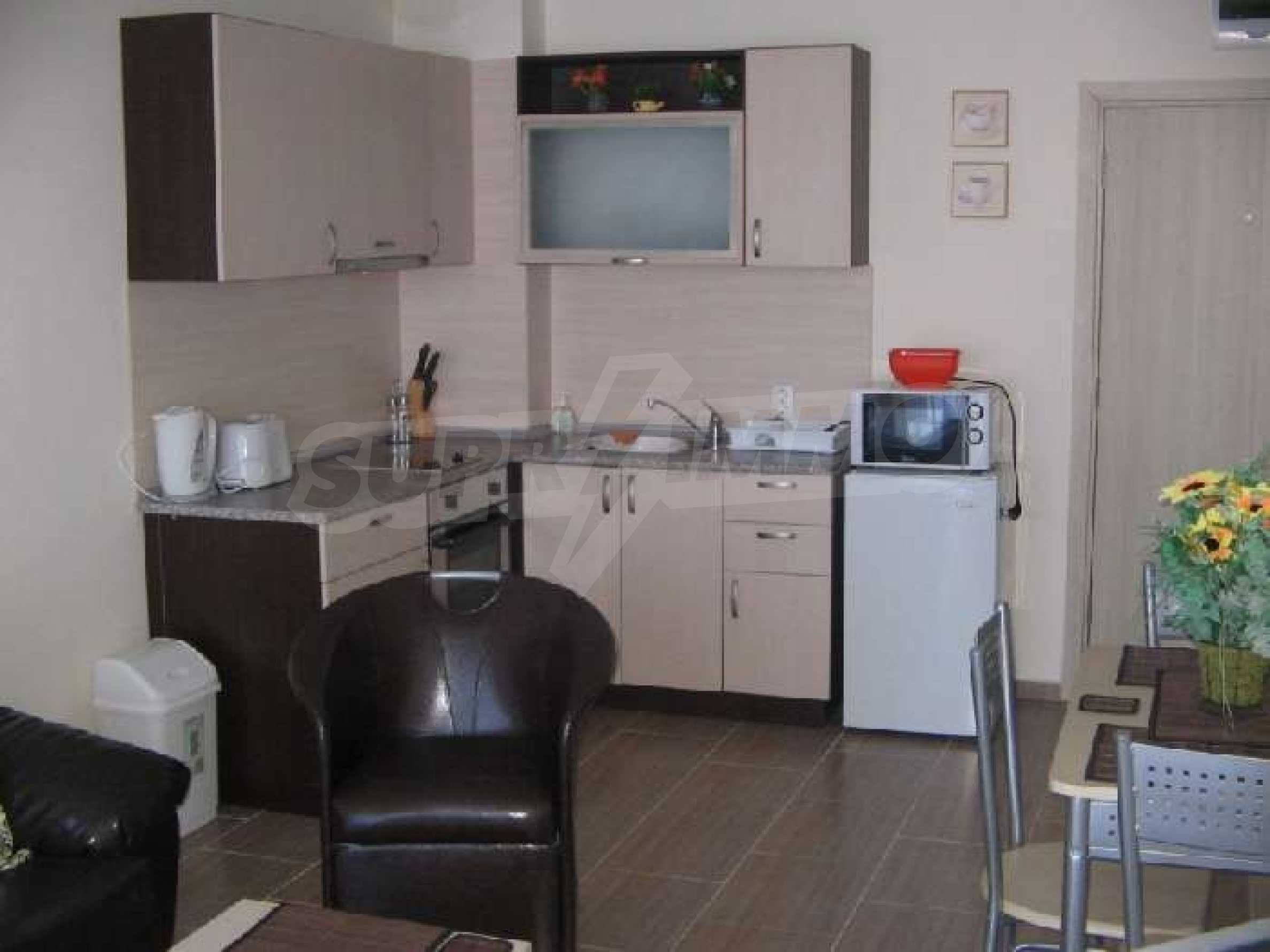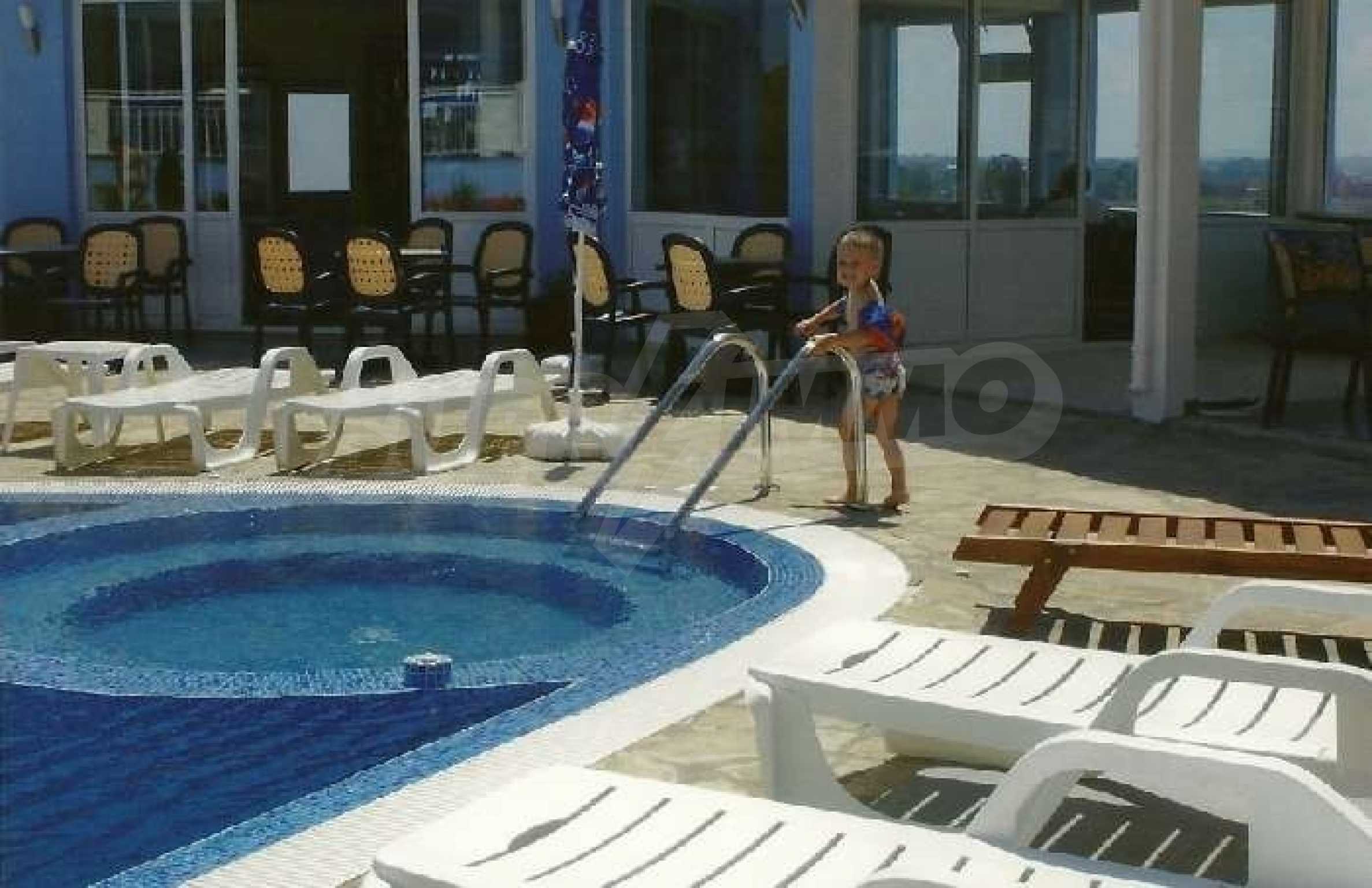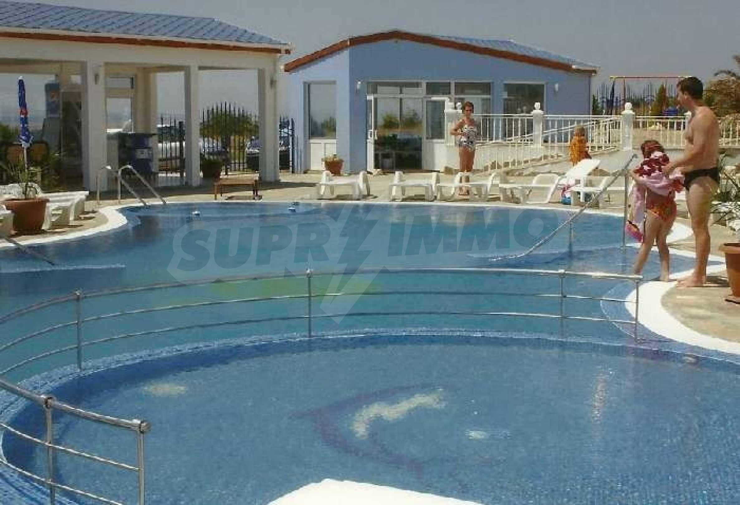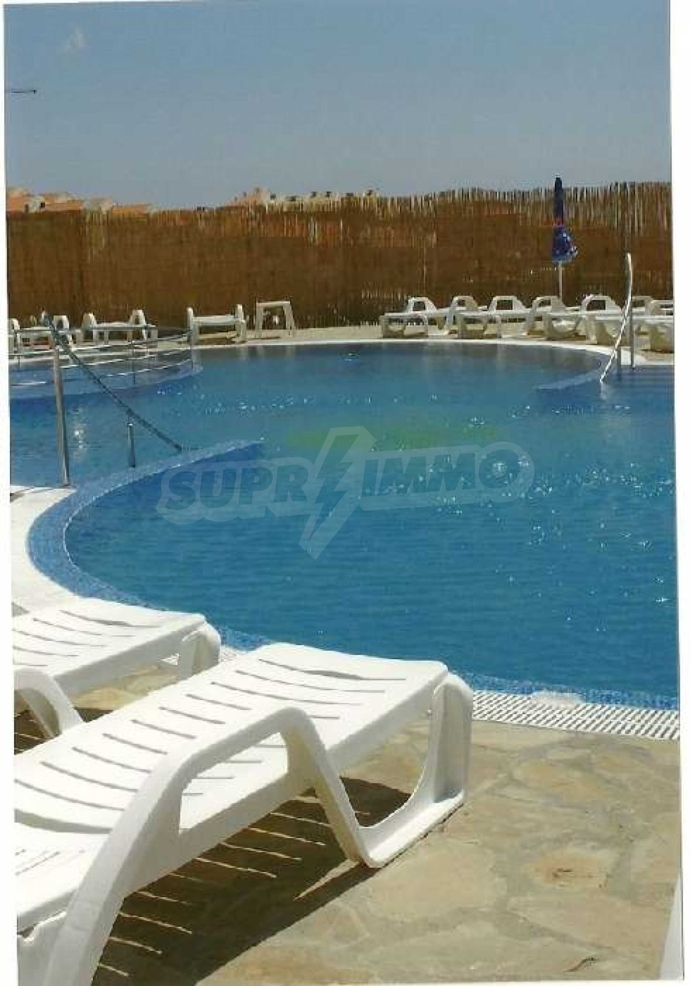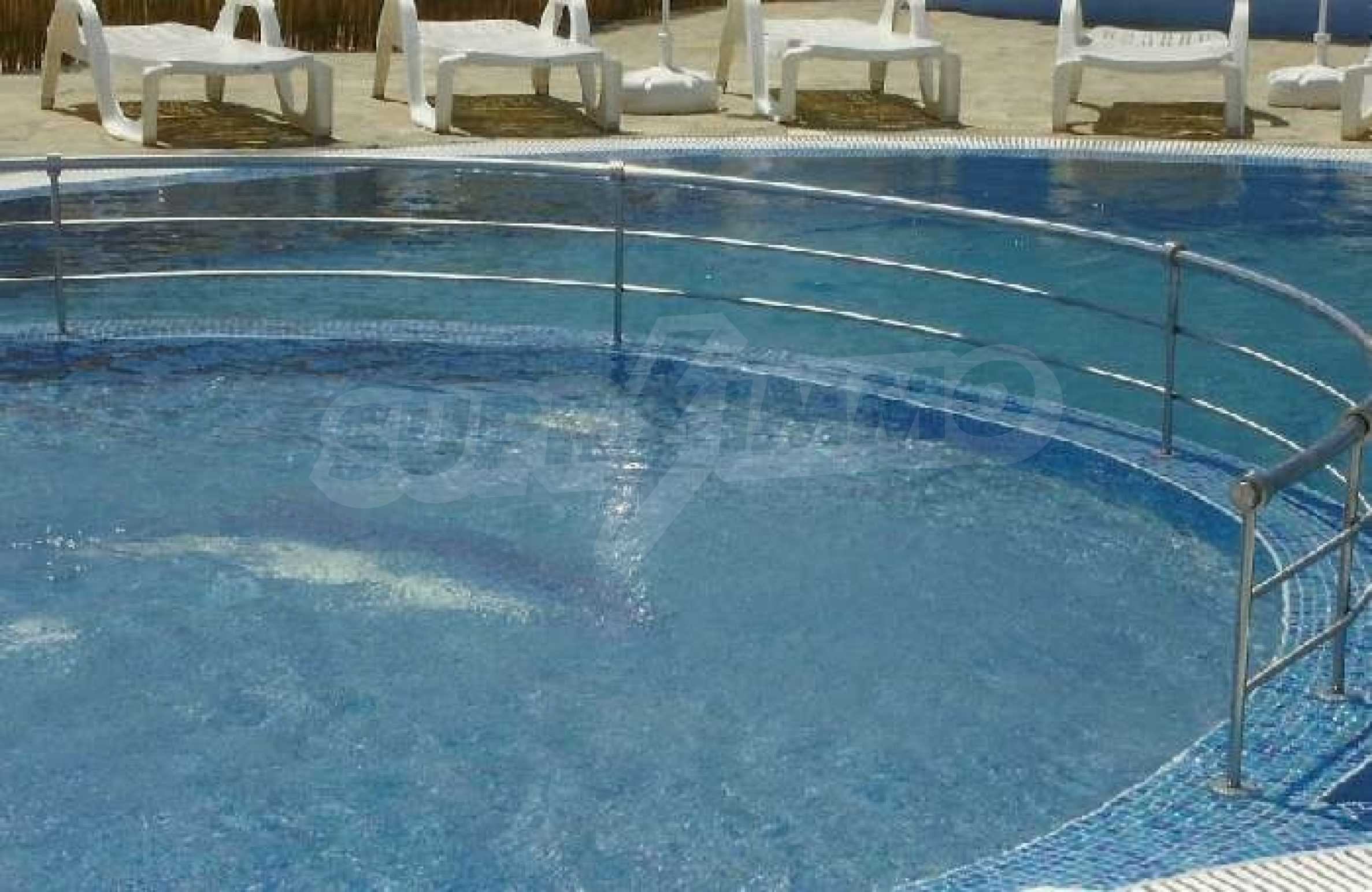 Rio Apartments Holiday Complex, Sunny Beach, Bulgaria. The location is perfect, it is close to the beach, the golf course, the marina, a variety of shops and Bourgas Airport. Rio apartments has everything you require from a holiday complex, the onsite facilities are there for everyone to enjoy. The friendly staff will help to take care of all your holiday needs, from collecting you from the airport to serving you drinks by the pool.  The complex is finished to a very high standard and this second floor apartment is tastefully furnished. It consists of a lounge with sofa bed, a fitted kitchen with dining table & chairs, one bedroom, a bathroom and a balcony where you can sit and relax in the evening and enjoy the sea view. The apartments are wheelchair accessible and there is an elevator to all floors. Rio apartments and its staff regard the safety and security of the site and its visitors as paramount. The complex is equipped with CCTV monitoring and has a fire alarm, you will find the grounds and all common parts secure and well lit at all times for your wellbeing.   Sunny Beach is the largest resort on the Bulgarian Black Sea Coast. It has everything you would expect and more from a major holiday destination. From lazy days on the 8km long golden sandy beach to action packed days full of fun and sports, Sunny Beach has it all. When the sun goes down and the lights come on, Sunny Beach comes alive with a wide variety of restaurants offering traditional and international cuisine; you will find something for everyone�s taste. At the numerous discos, nightclubs, exotic and cocktail bars you can enjoy an evening out at a price you will find hard to believe. Sunny Beach is also a kid�s paradise with everything you can imagine from bouncy castles to aqua parks, from riding the bucking bronco to riding a real horse. The resort offers something for all ages and tastes. You will not be disappointed. In this up and coming holiday destination, you name it, Sunny Beach has it at a fraction of the cost you would expect to pay in most if not all the European resorts. To the south of Sunny Beach lies Nessebar, an old town fishing village with its picturesque historical old churches and cobbled streets, lined with shops, bars and fish restaurants. North of Sunny Beach lies St Vlas with it�s new Yacht Port Marina, lined with luxury bars, shops and restaurants and fantastic views of the whole bay of Sunny Beach. A perfect opportunity to own a holiday home on the Bulgarian Black Sea Coast, whether for personal use or holiday rentals!!