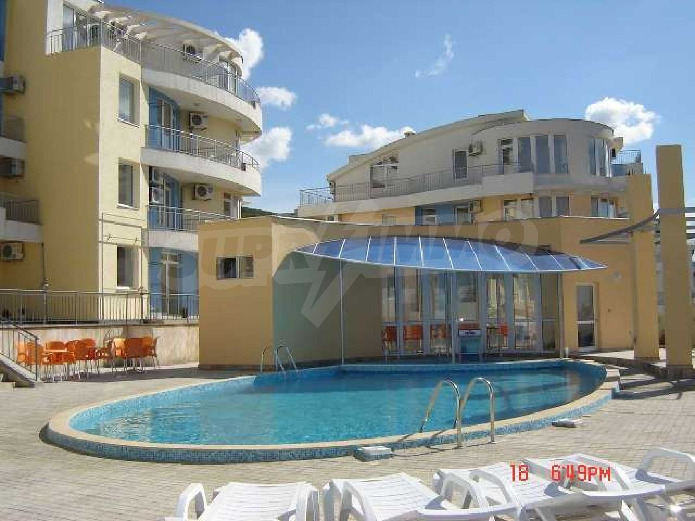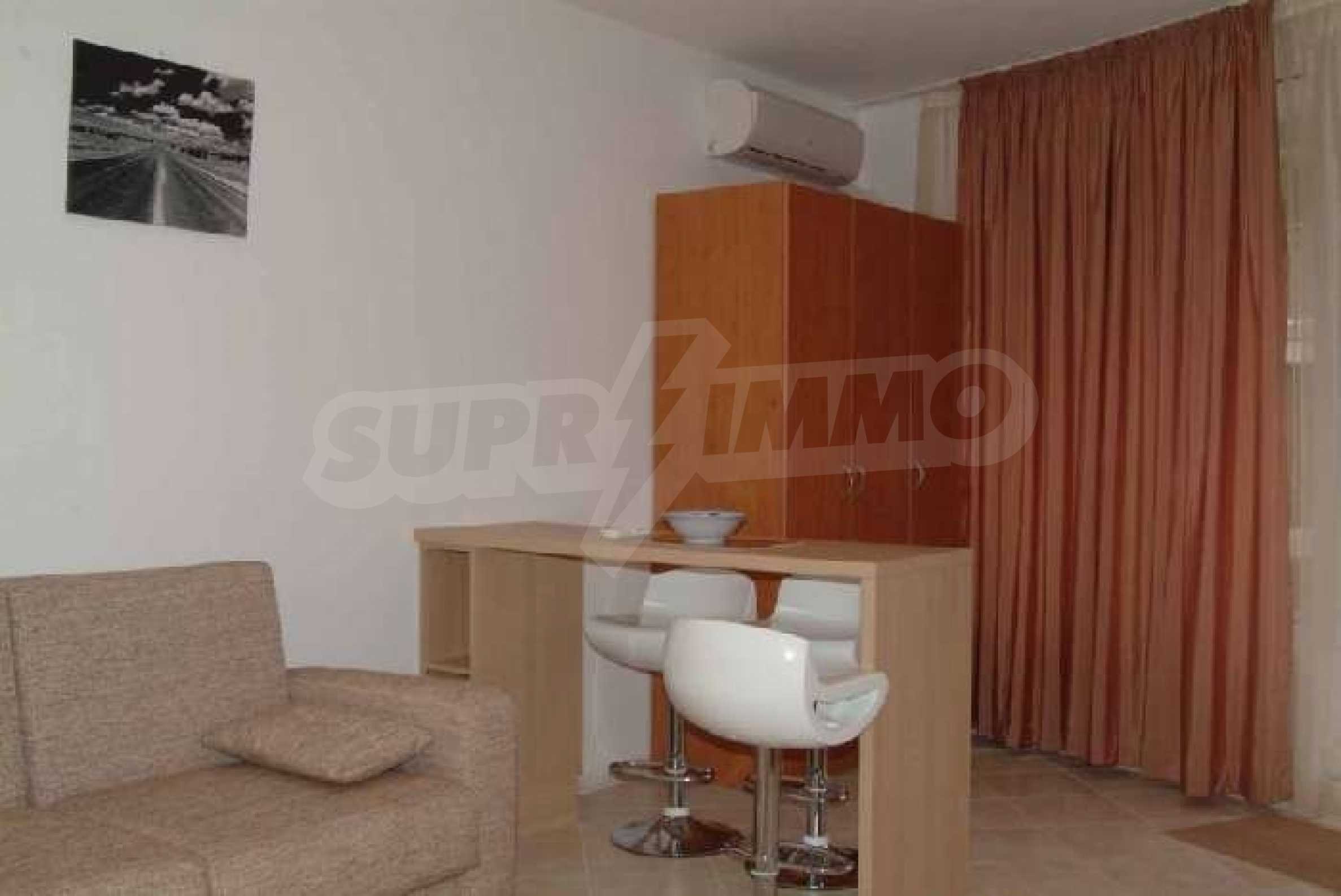 Sunset 2 Apartments is set in the peaceful and natural surroundings of the Balkan Mountains. It is situated in Kosharitsa at the foot of the mountain and only 7km from Sunny Beach. The village of Kosharitsa is a farming village and 3 minutes away along the road there are a few shops and local restaurants.This studio apartment is fully furnished and consists of a living area with a sofa bed, a kitchenette with all necessary electrical appliances, a bathroom and a balcony. The complex boasts first-class facilities including 24 hr reception, video security control, 4 swimming pools, pool bar, health, beauty and leisure facilities, an open air restaurant and internet access.  Sunsets close proximity to Sunny Beach means that you can enjoy the beautiful beaches and lively nightlife but also be away from the hustle and bustle should you prefer a quieter more relaxing holiday home. A shuttle bus runs regularly into Sunny Beach and as with many Bulgarian roads the village roads are in the process of being relaid and upgraded. This area, near the mountain and sea, offers facilities for hunting and fishing or just relaxing at the resort or on the beach.  A perfect opportunity to own a holiday home in Bulgaria, whether for personal use or holiday rentals.